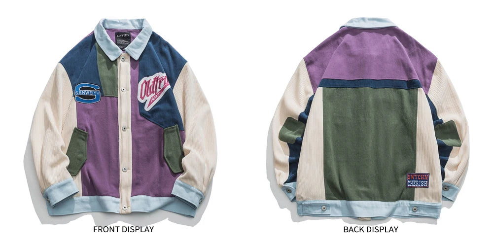 New Arrival Patchwork Colorful Casual Retro Stadium Men Baseball Bomber Jacket Unisex Women Varsity Unive...