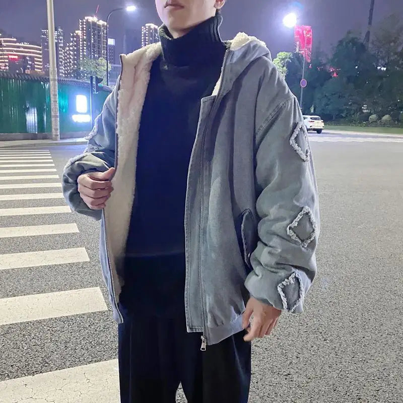 Winter cashmere jacket men thick warm long-sleeved denim cotton cloth casual cloth winter clothing