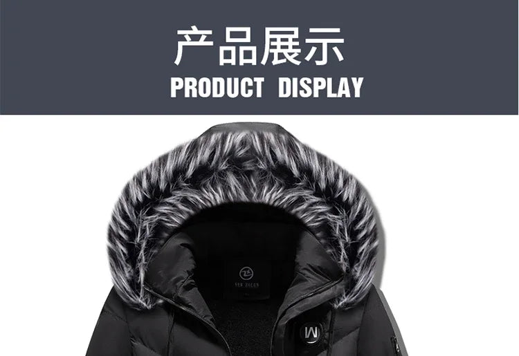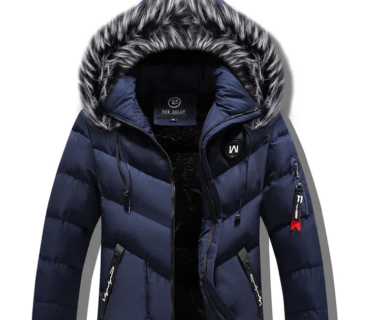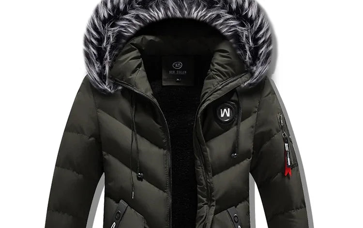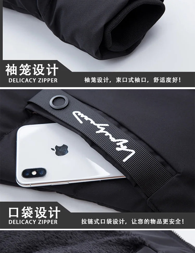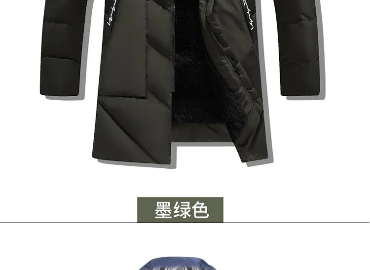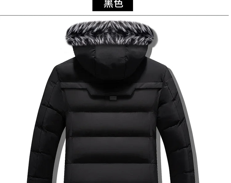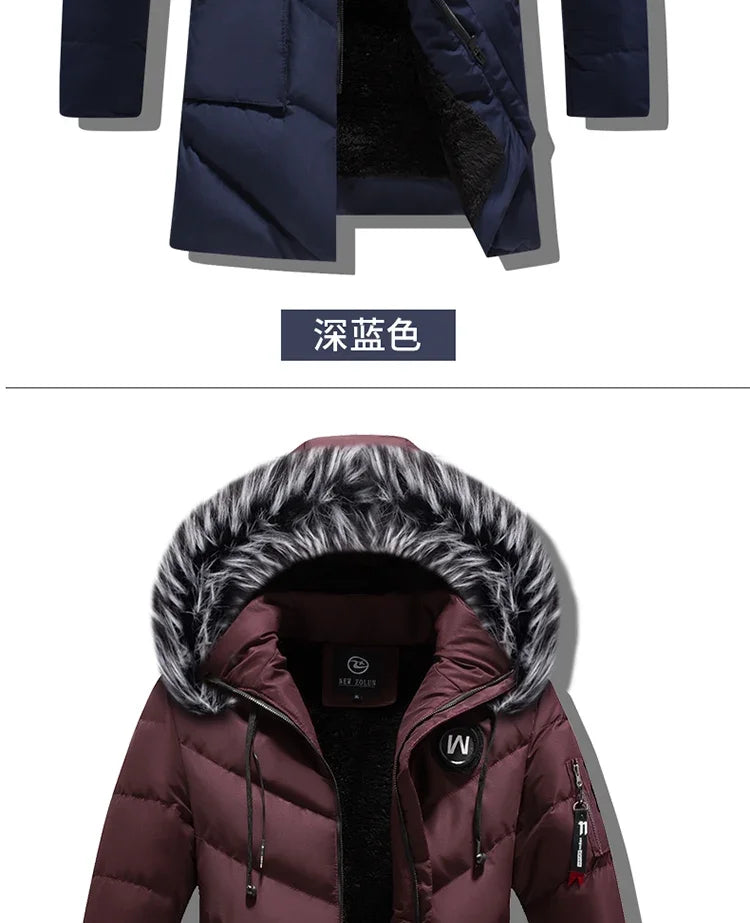 Winter Fleece Men's Long Parkas Jacket Fashion Men Fur Collar Thermal Parka Coats Casual Warm Windbreaker...