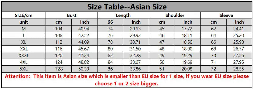 size_info: {"sizeInfoList":[{"length":{"cm":"104","inch":"40.94"},"size":"M 40-47kg","vid":-1},{"length":{"cm":"108","inch":"42.52"},"size":"L 47-55kg","vid":-2},{"length":{"cm":"112","inch":"44.09"},"size":"XL 55-62kg","vid":-3},{"length":{"cm":"116","inch":"45.67"},"size":"XXL 62-70kg","vid":-4},{"length":{"cm":"120","inch":"47.24"},"size":"XXXL 70-77kg","vid":-5},{"length":{"cm":"124","inch":"48.82"},"size":"4XL 77-85kg","vid":-6},{"length":{"cm":"128","inch":"50.39"},"size":"5XL 85-92kg","vid":-7}]}