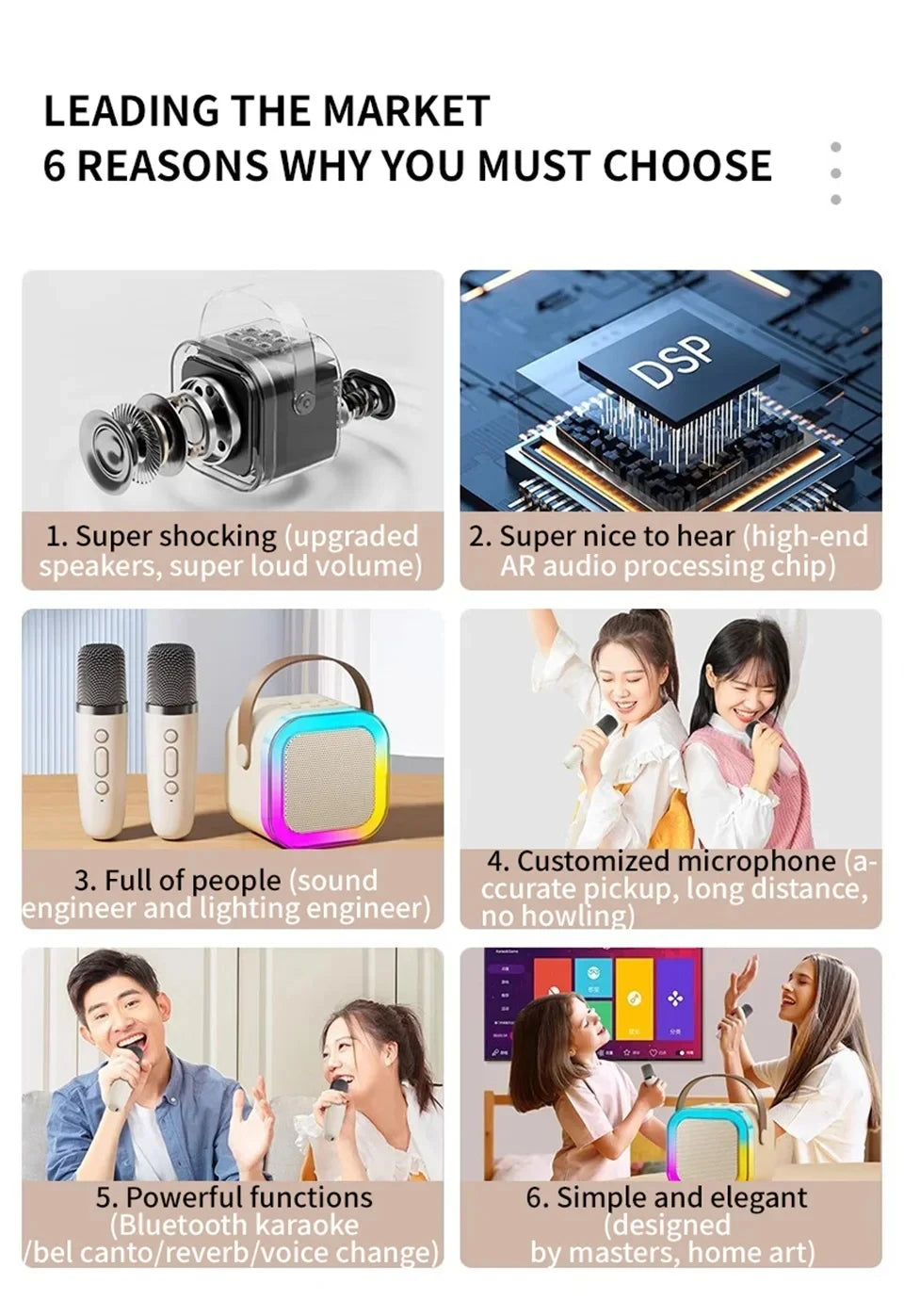 Karaoke machine Portable Bluetooth 5.3PA speaker system 2 unlimited microphones for family singing childr...