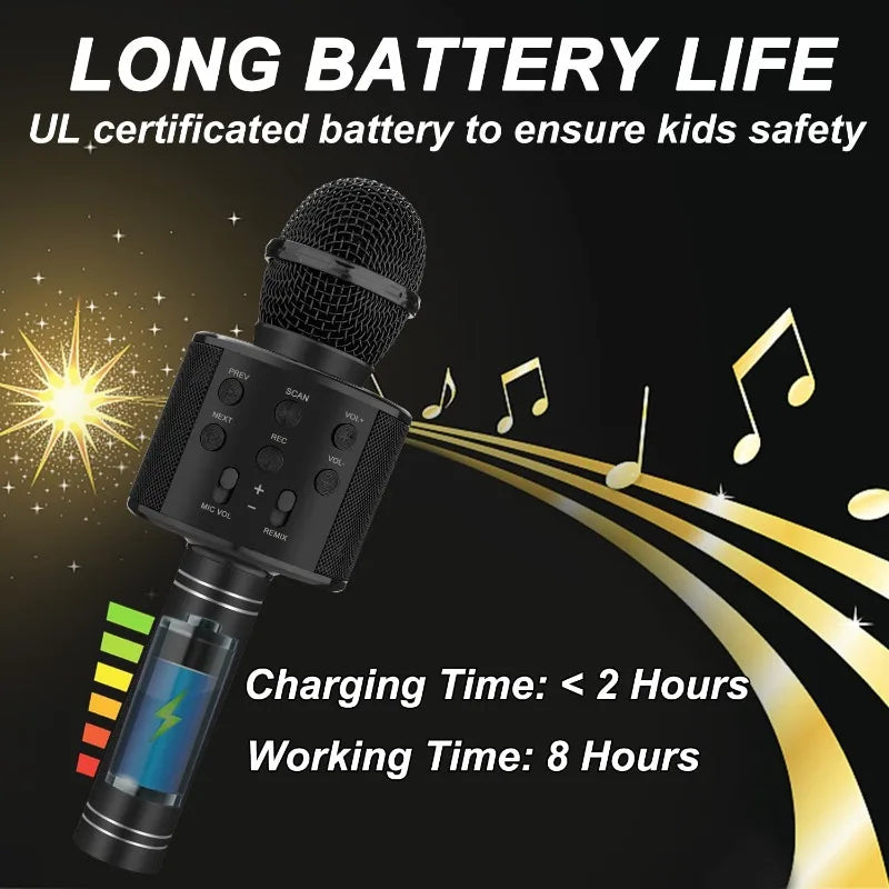 【What You Will Get】(1) Karaoke Microphone; (2)Built-in long-lasting capacity rechargeable battery(Charging Time: < 2 Hours