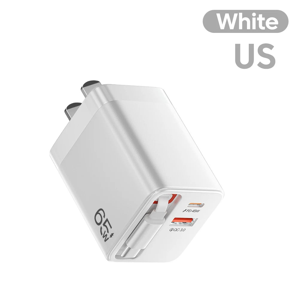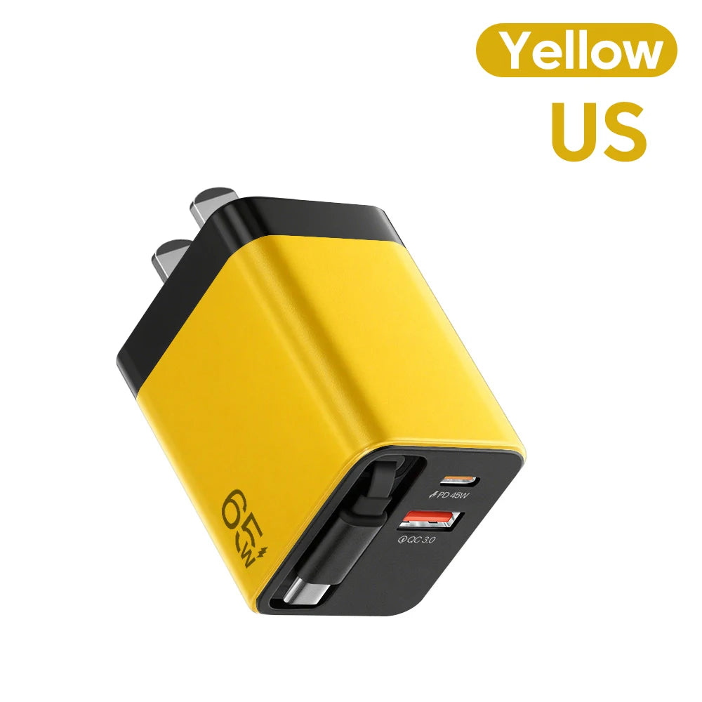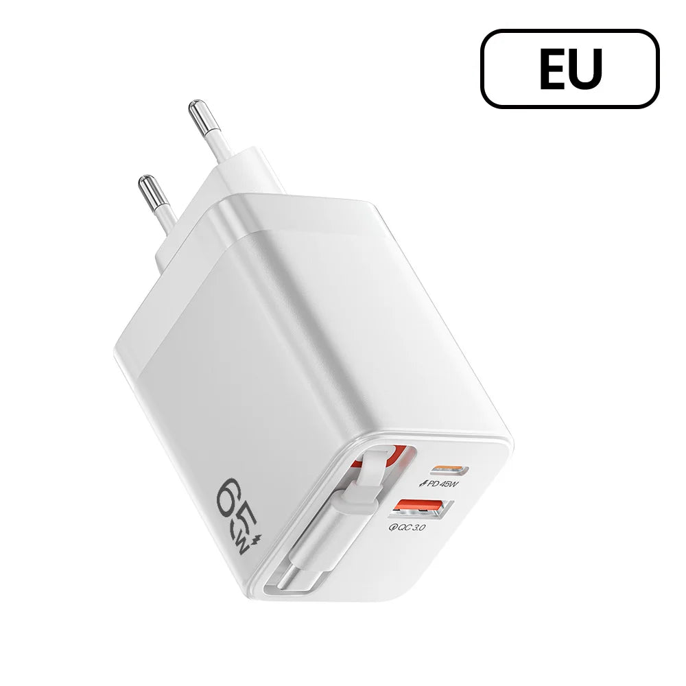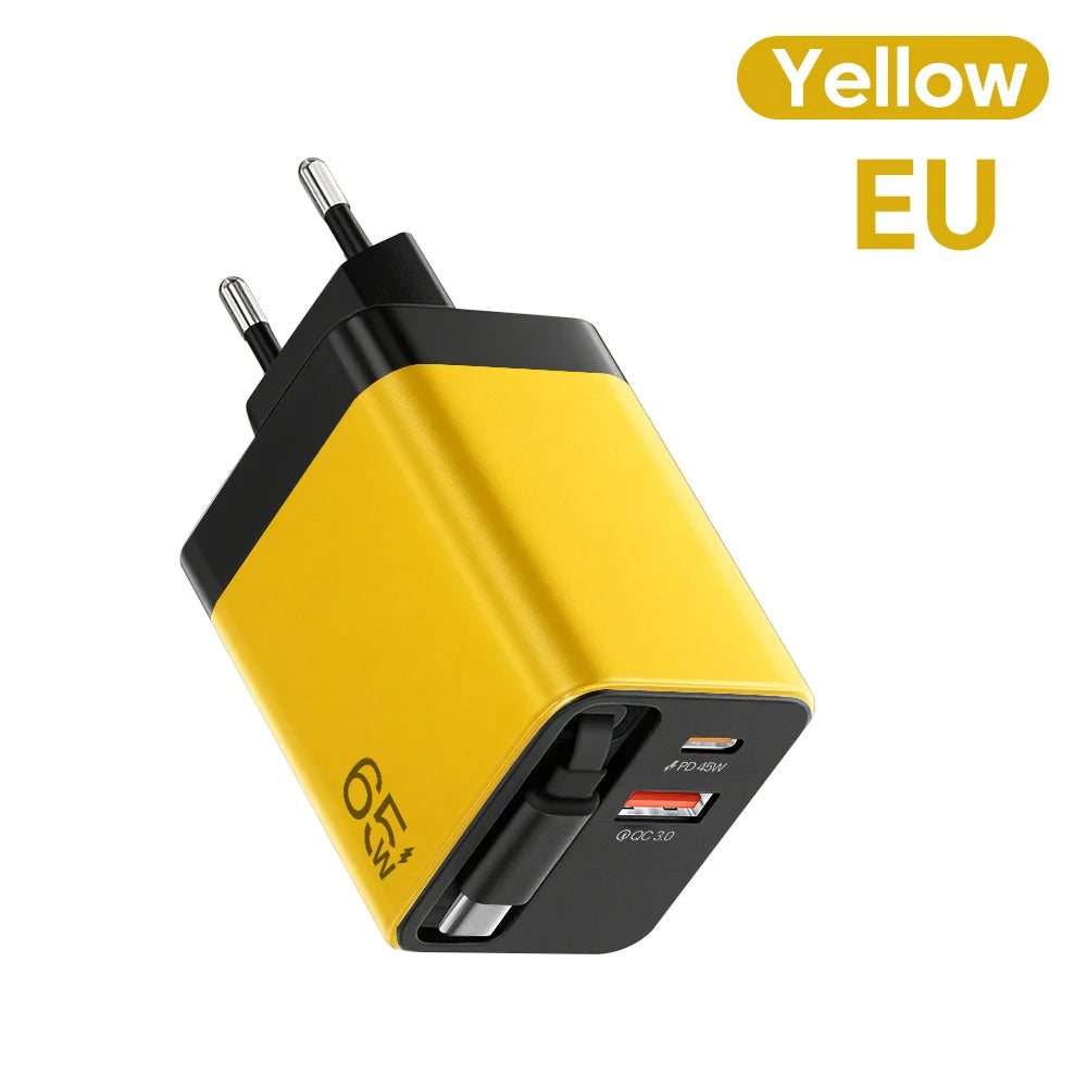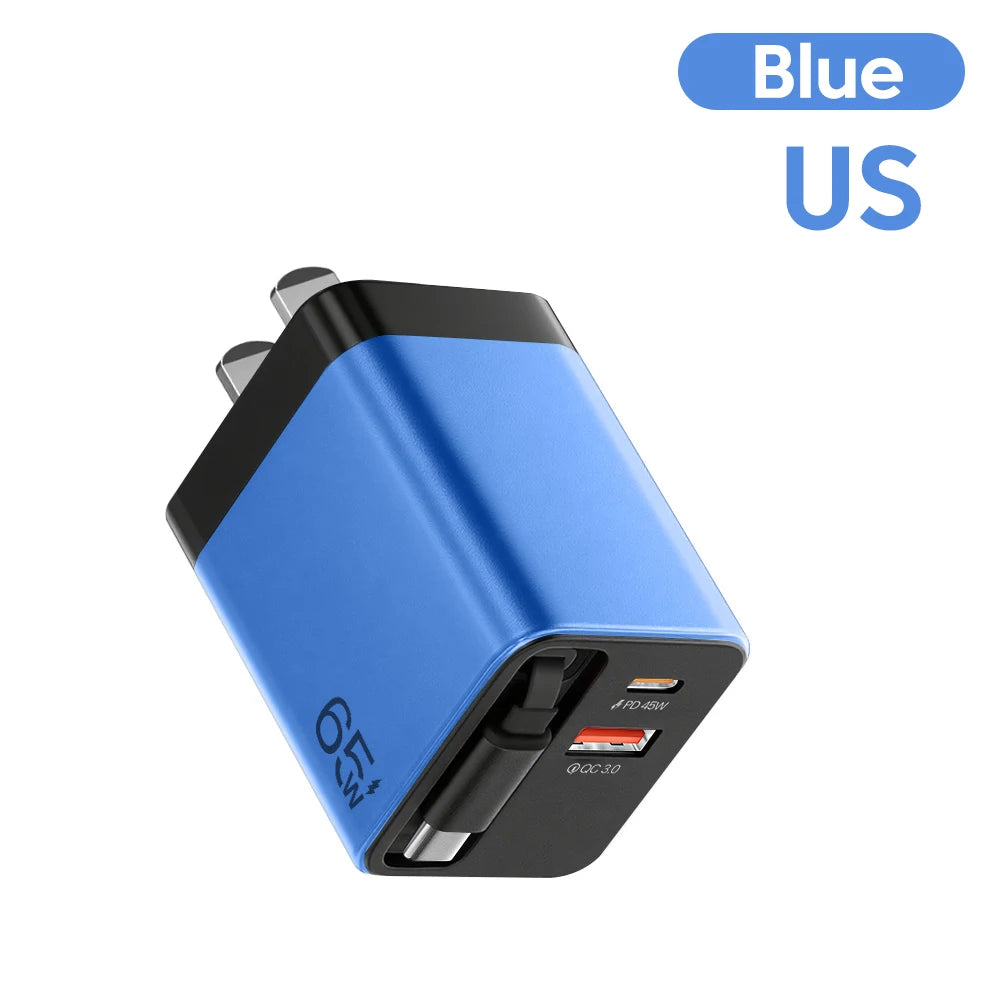 Pd65w USB Pd3.0 Phone Fast Charger with Retractable Cable EU UK Plug Power Po...