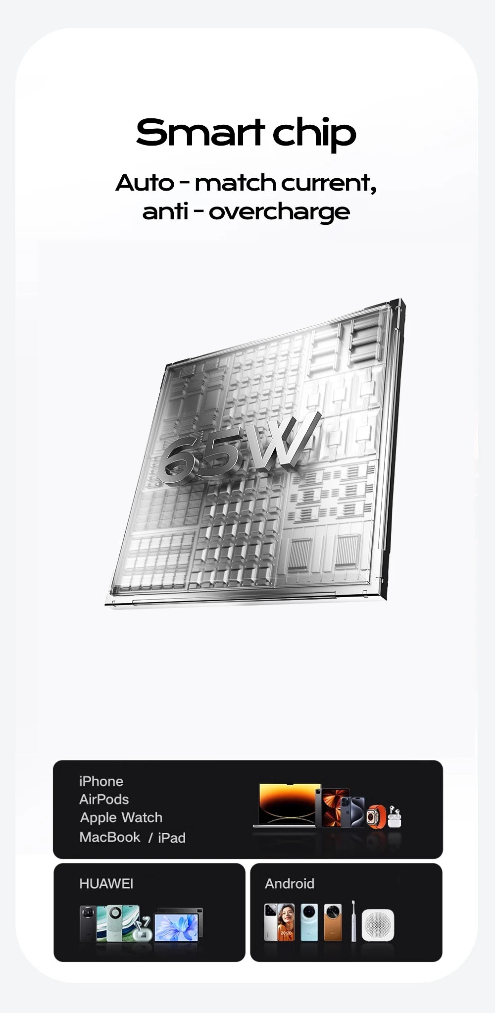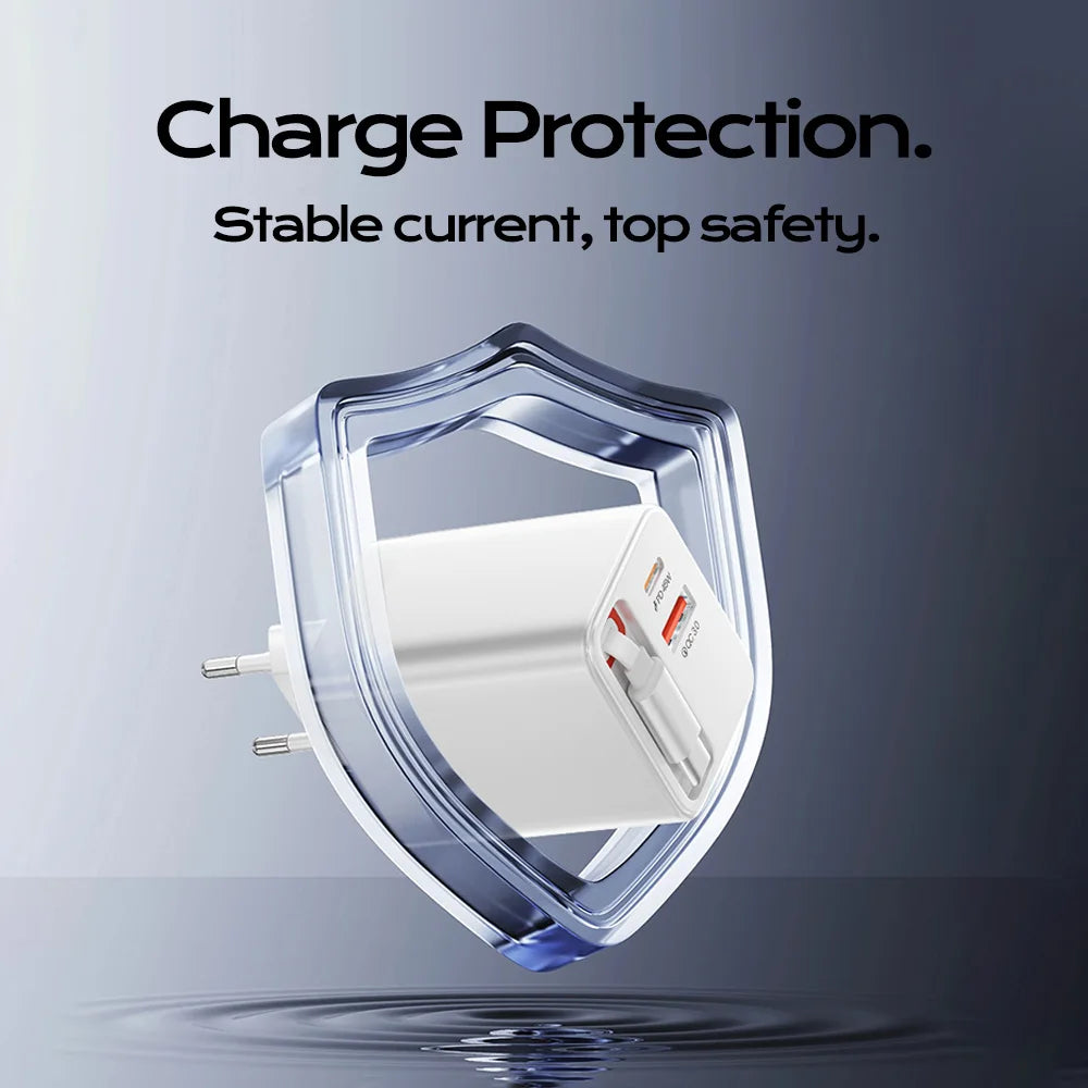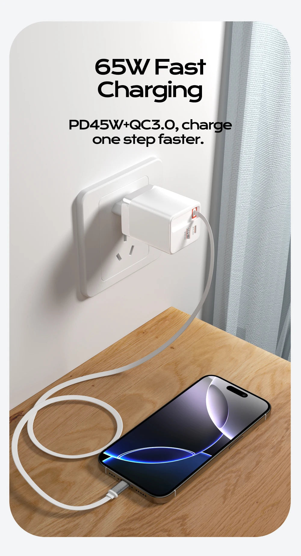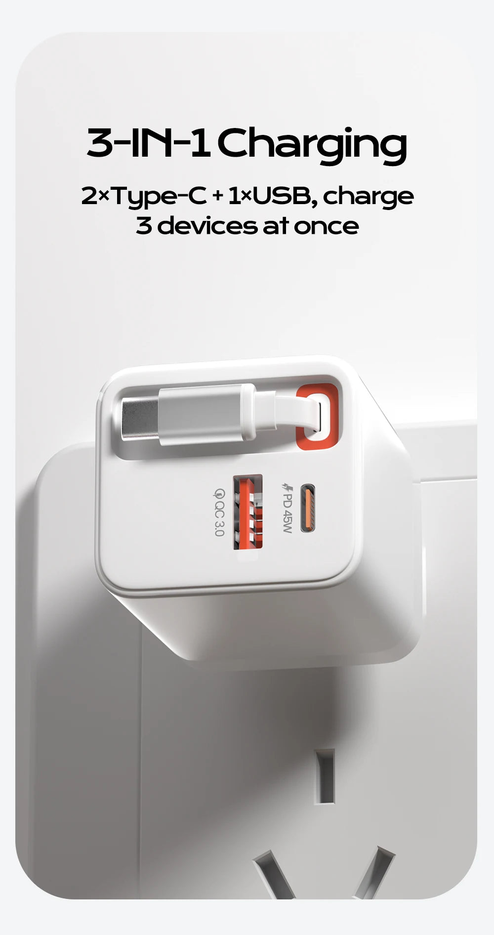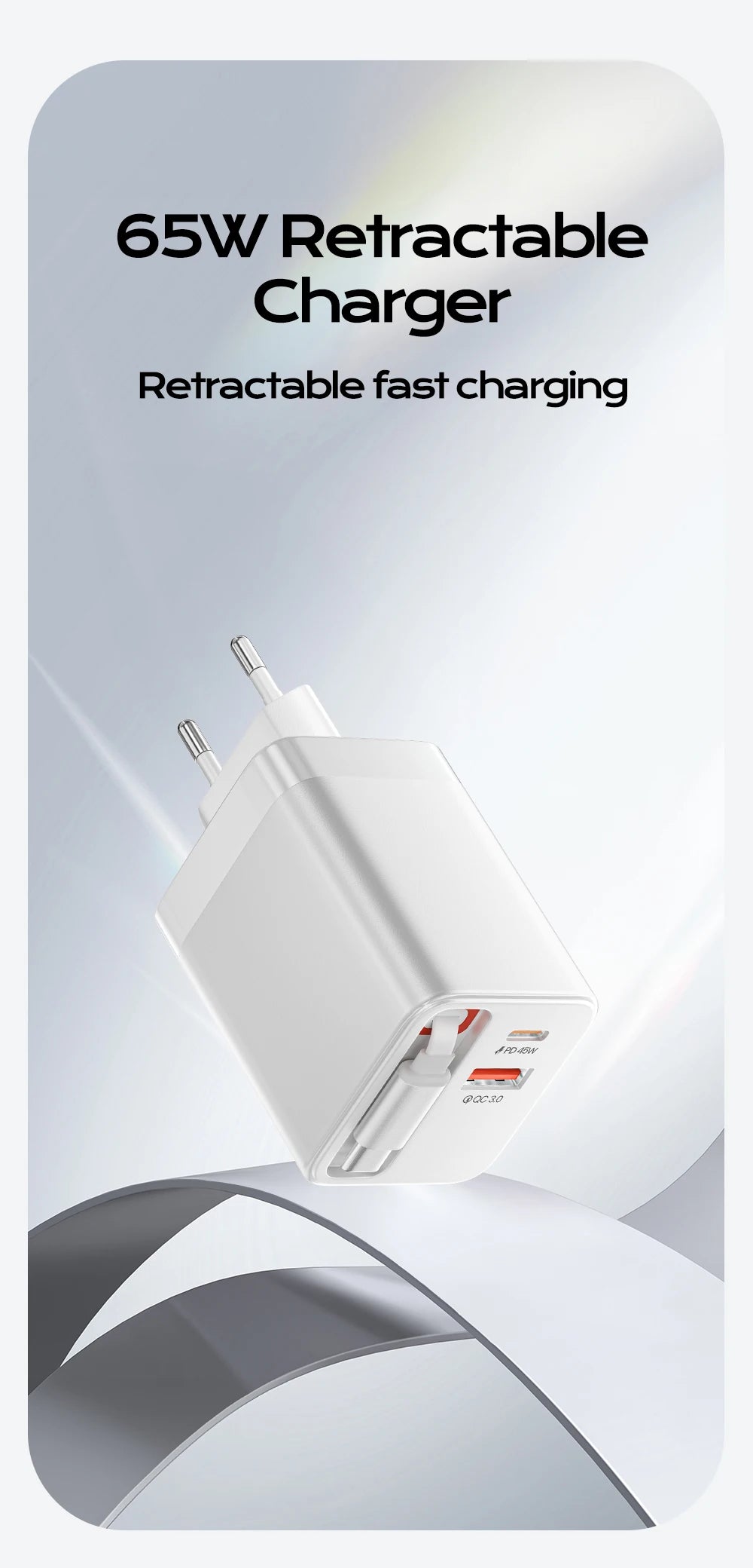 Pd65w USB Pd3.0 Phone Fast Charger with Retractable Cable EU UK Plug Power Po...