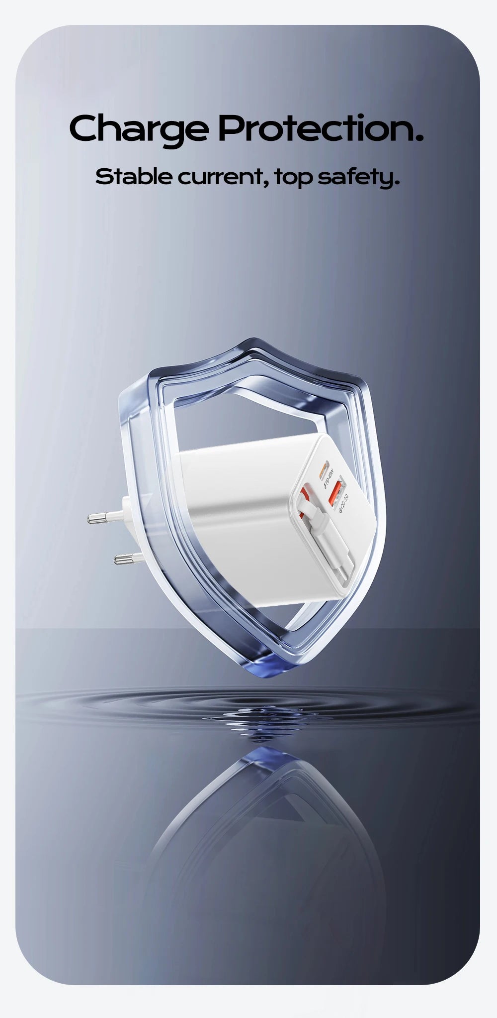 Feature 5: Expansion cable independent 25W, supports simultaneous fast charging 25W, USB-A and Type-C share 25W