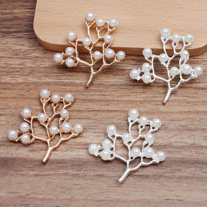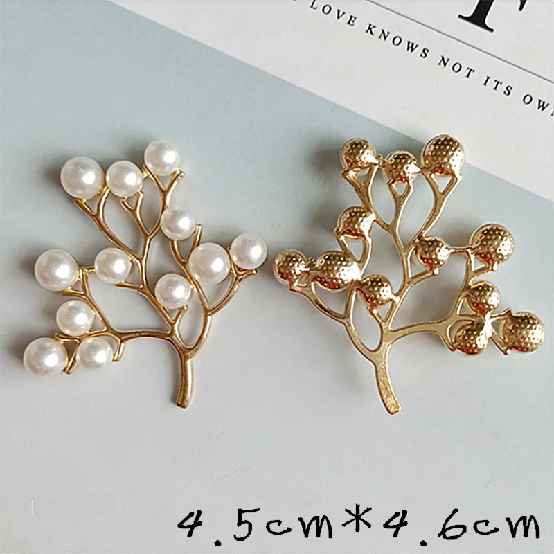 10 Pcs Alloy Pearls Leaf Buttons Creative Gold Pendant Ornaments for DIY Headwear Bridal Fan Hair Crafts ...