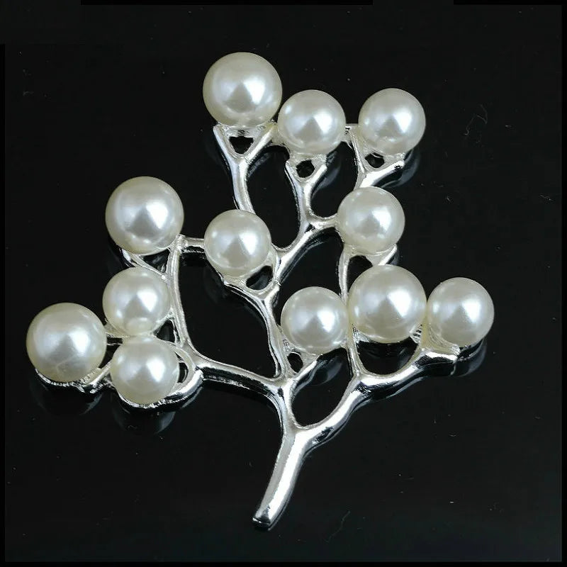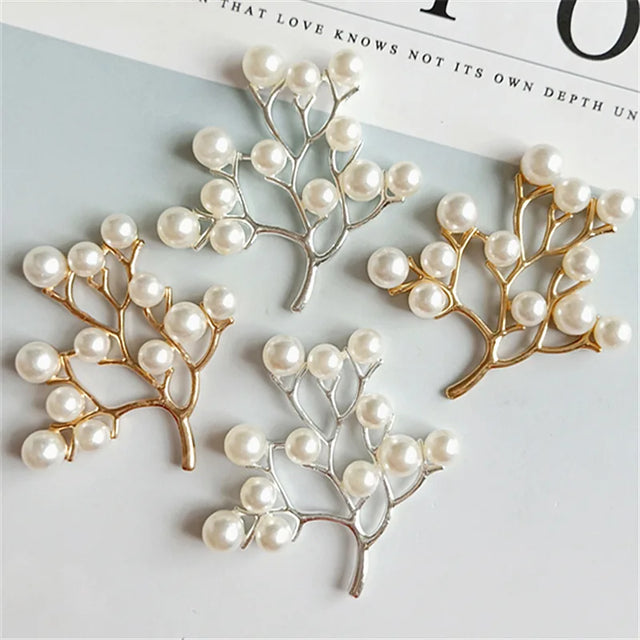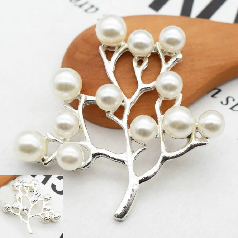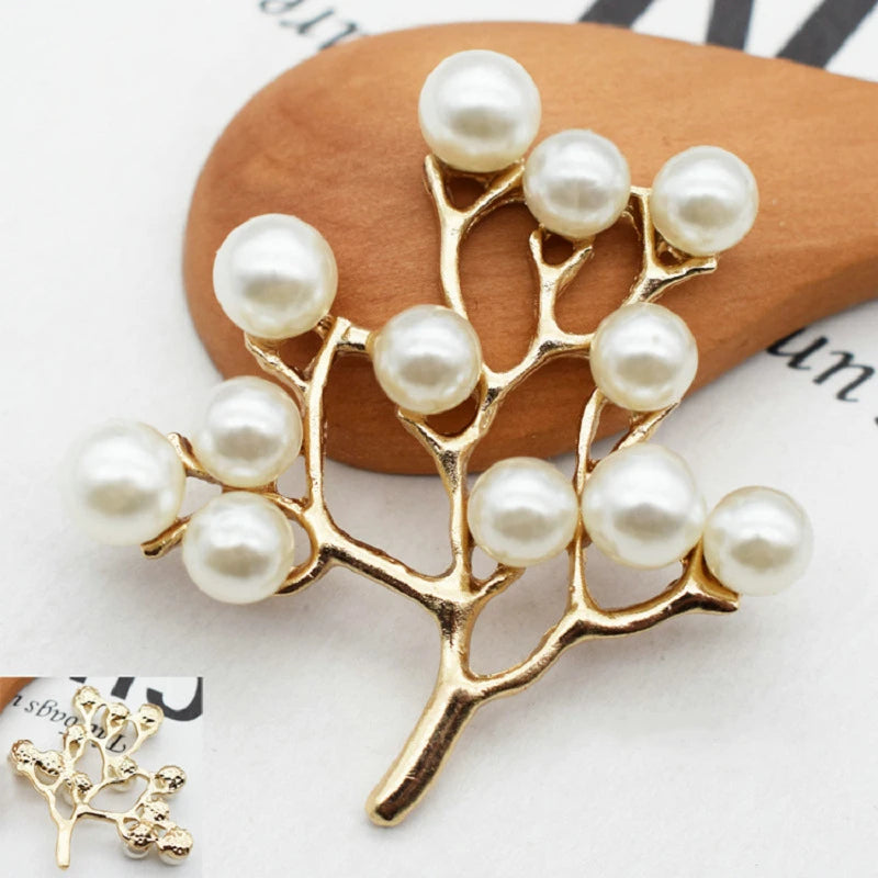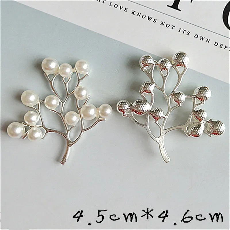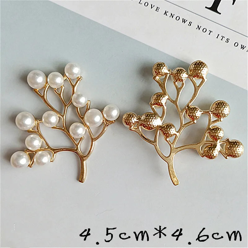 10 Pcs Alloy Pearls Leaf Buttons Creative Gold Pendant Ornaments for DIY Headwear Bridal Fan Hair Crafts Jewelry Accessories
