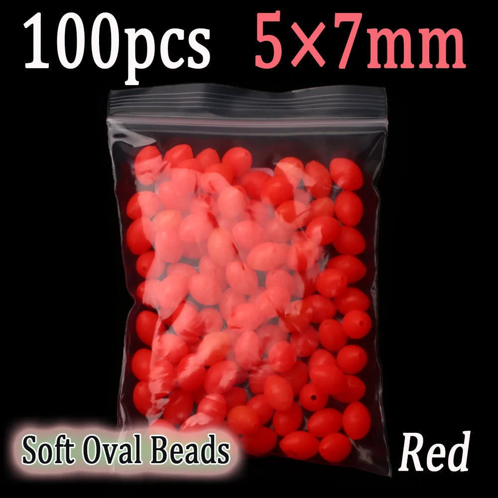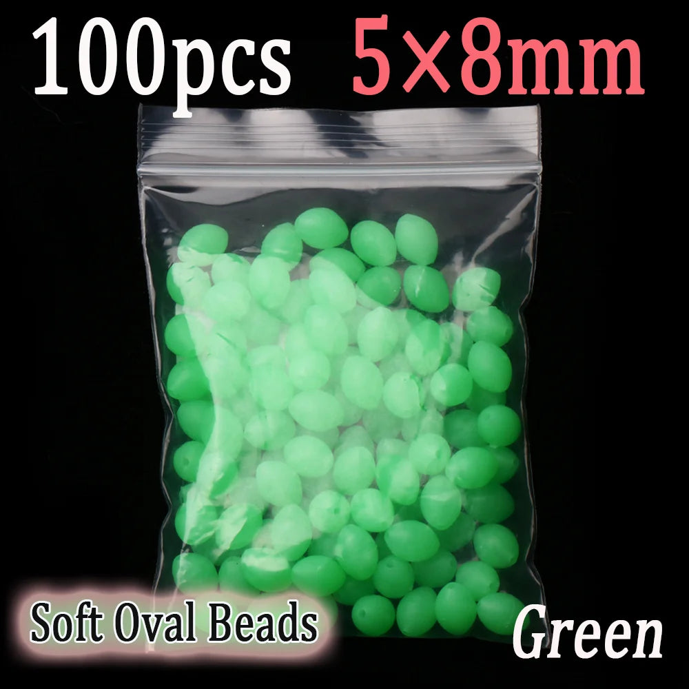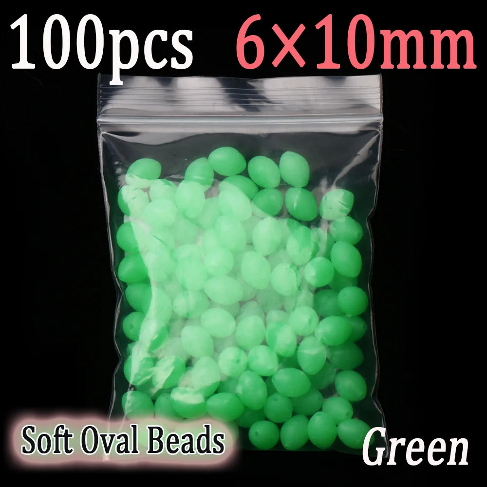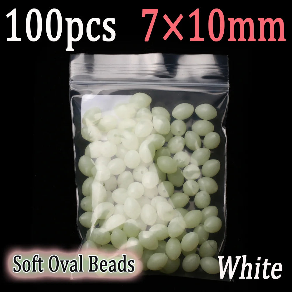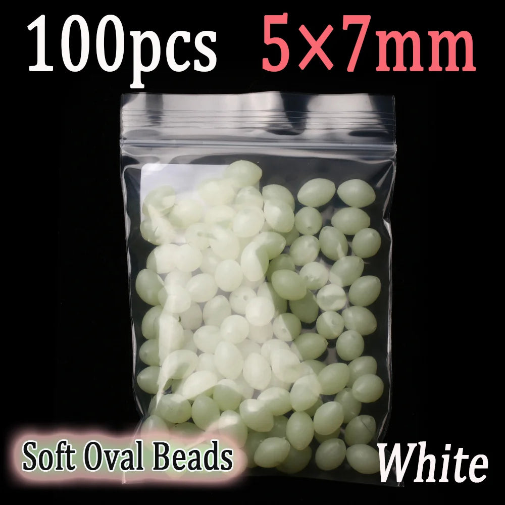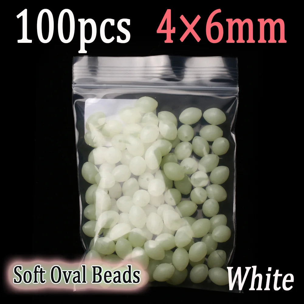 100pcs Soft Oval Fishing Beads Glow Beads Fishing Stopper For Sabiki Rigs Sea Fishing Spinner Lure Fishing Gear Terminal Tackle