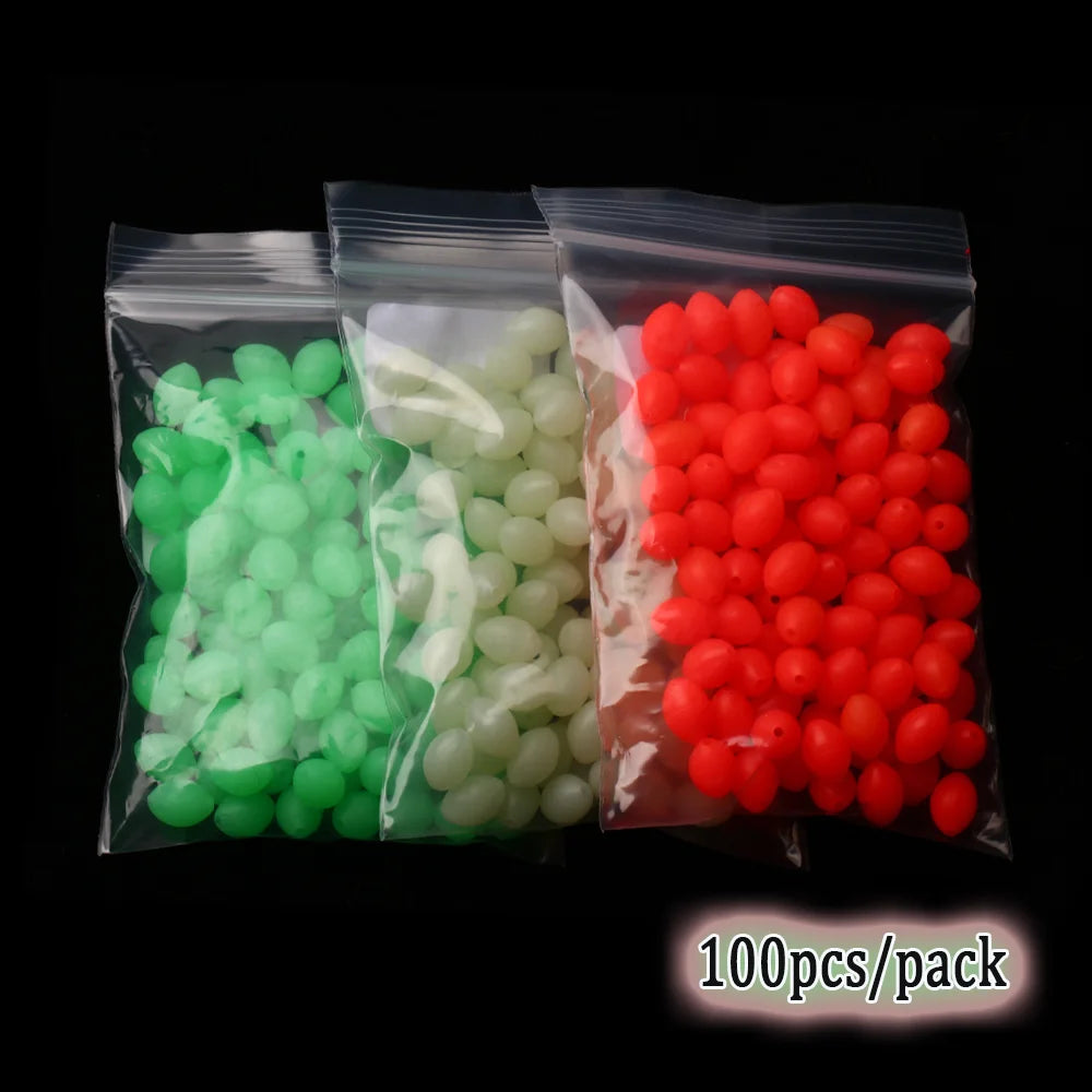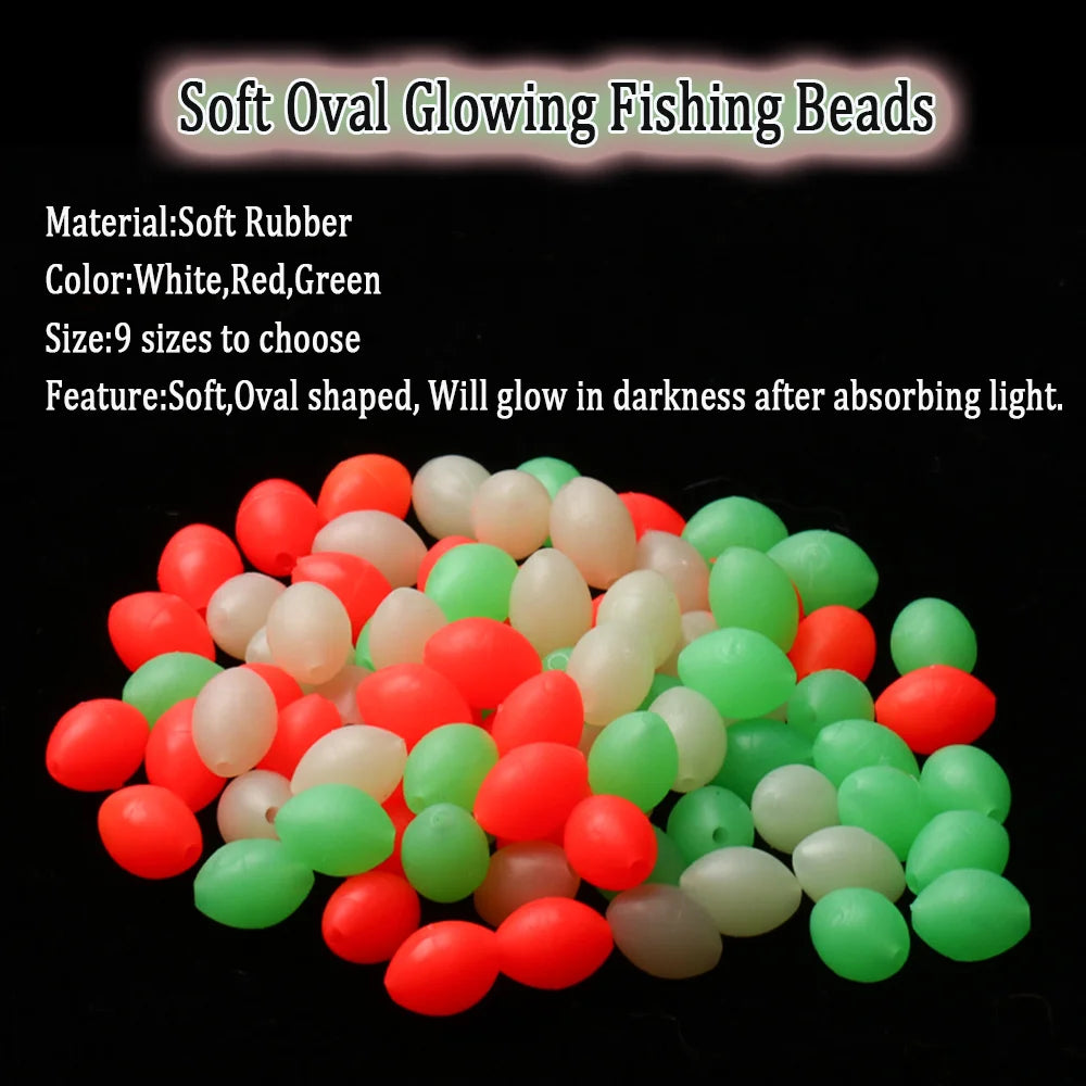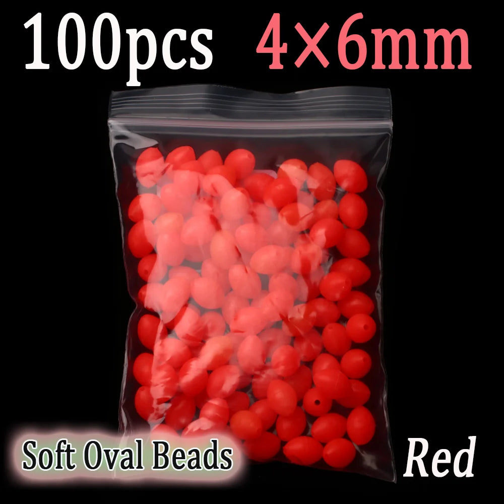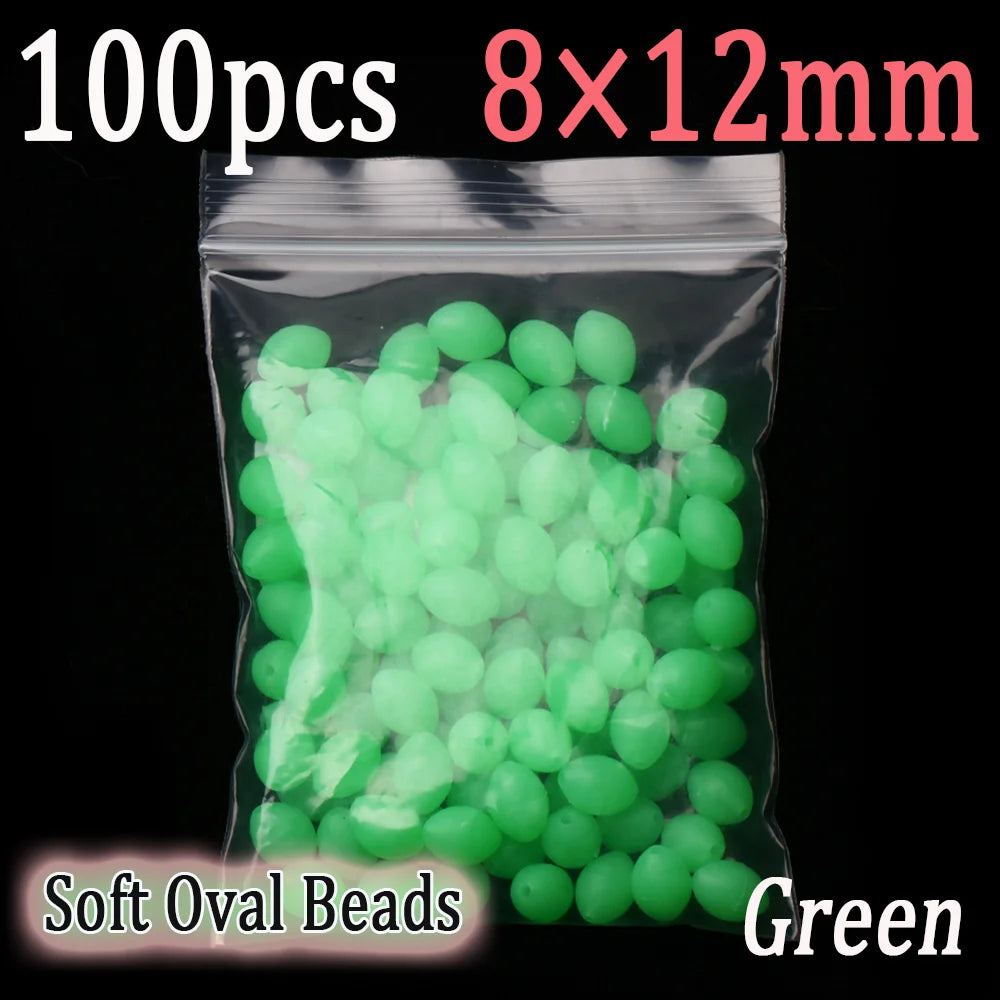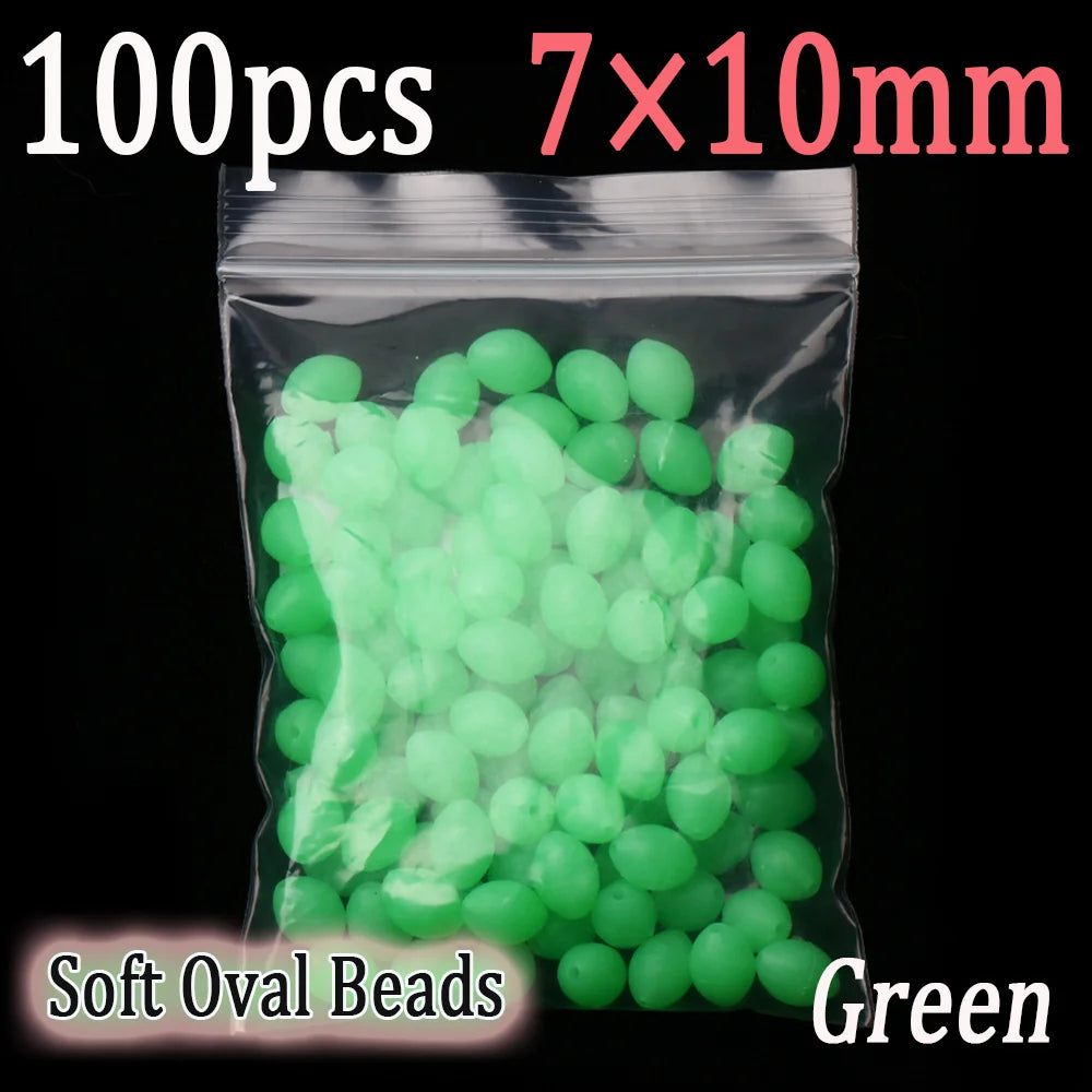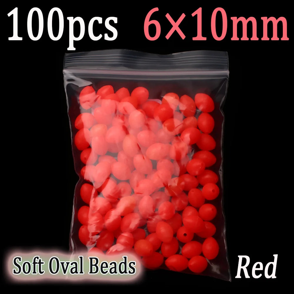 100pcs Soft Oval Fishing Beads Glow Beads Fishing Stopper For Sabiki Rigs Sea Fishing Spinner Lure Fishing Gear Terminal Tackle