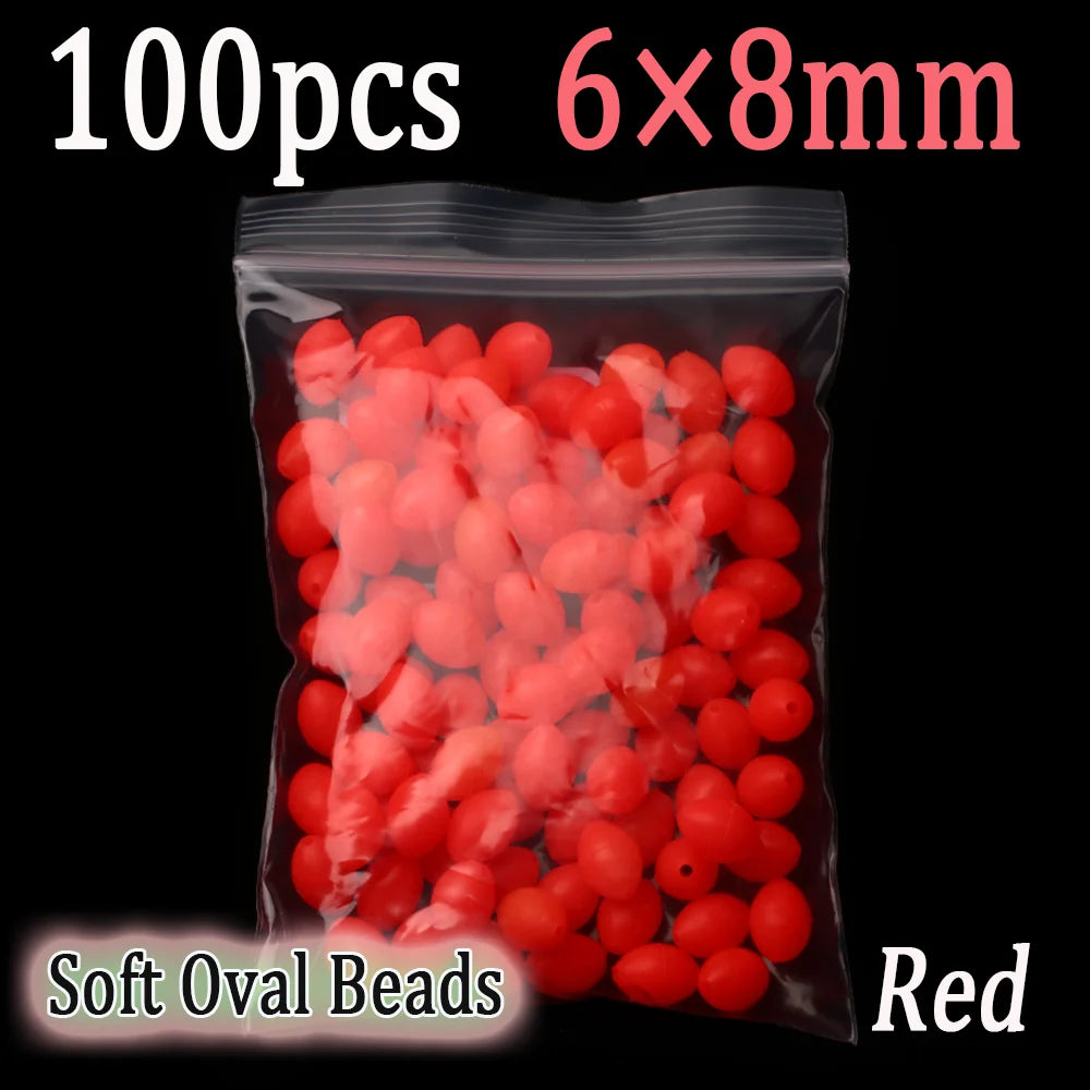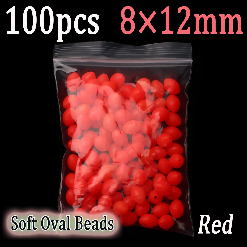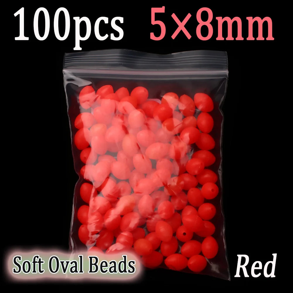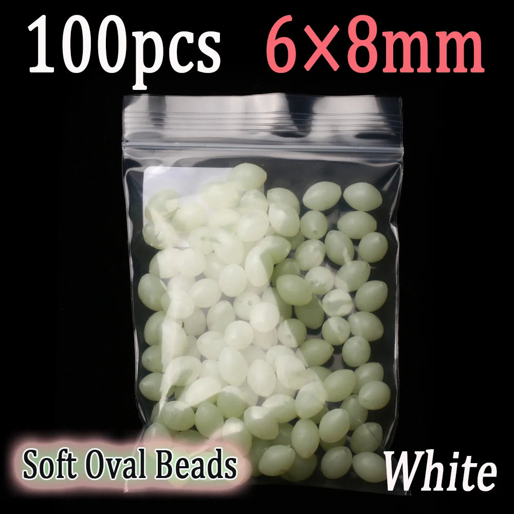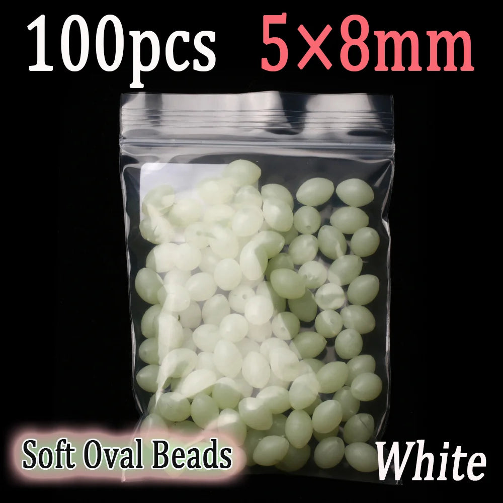 100pcs Soft Oval Fishing Beads Glow Beads Fishing Stopper For Sabiki Rigs Sea Fishing Spinner Lure Fishin...
