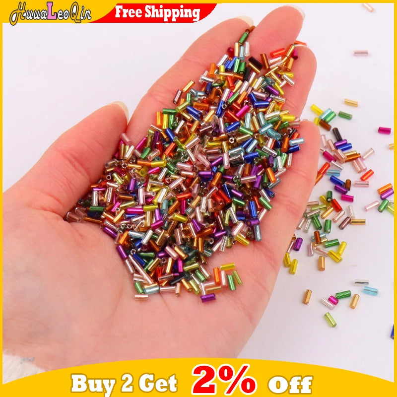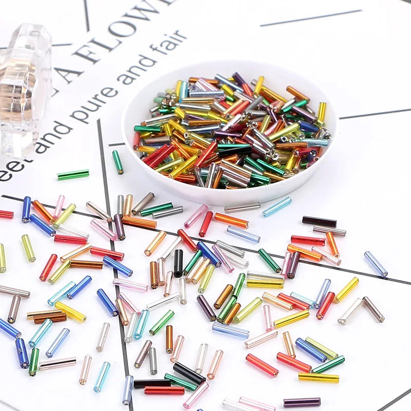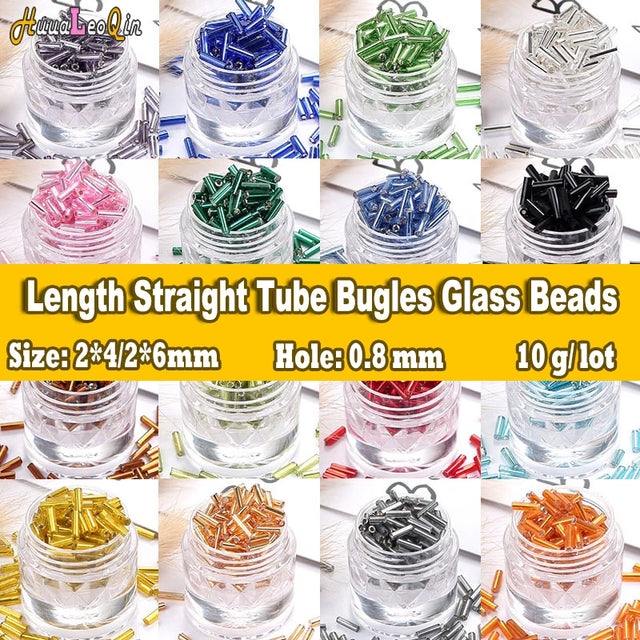 10g 4/6mm Length Straight Tube Bugles Glass Beads Silver-Lined Seed Beads for Needlework Jewelry Making H...