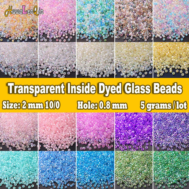 365pcs 2mm Tubular Transparent Inside Dyed Glass Beads 10/0 Loose Seed Beads for Needlework Jewelry Makin...
