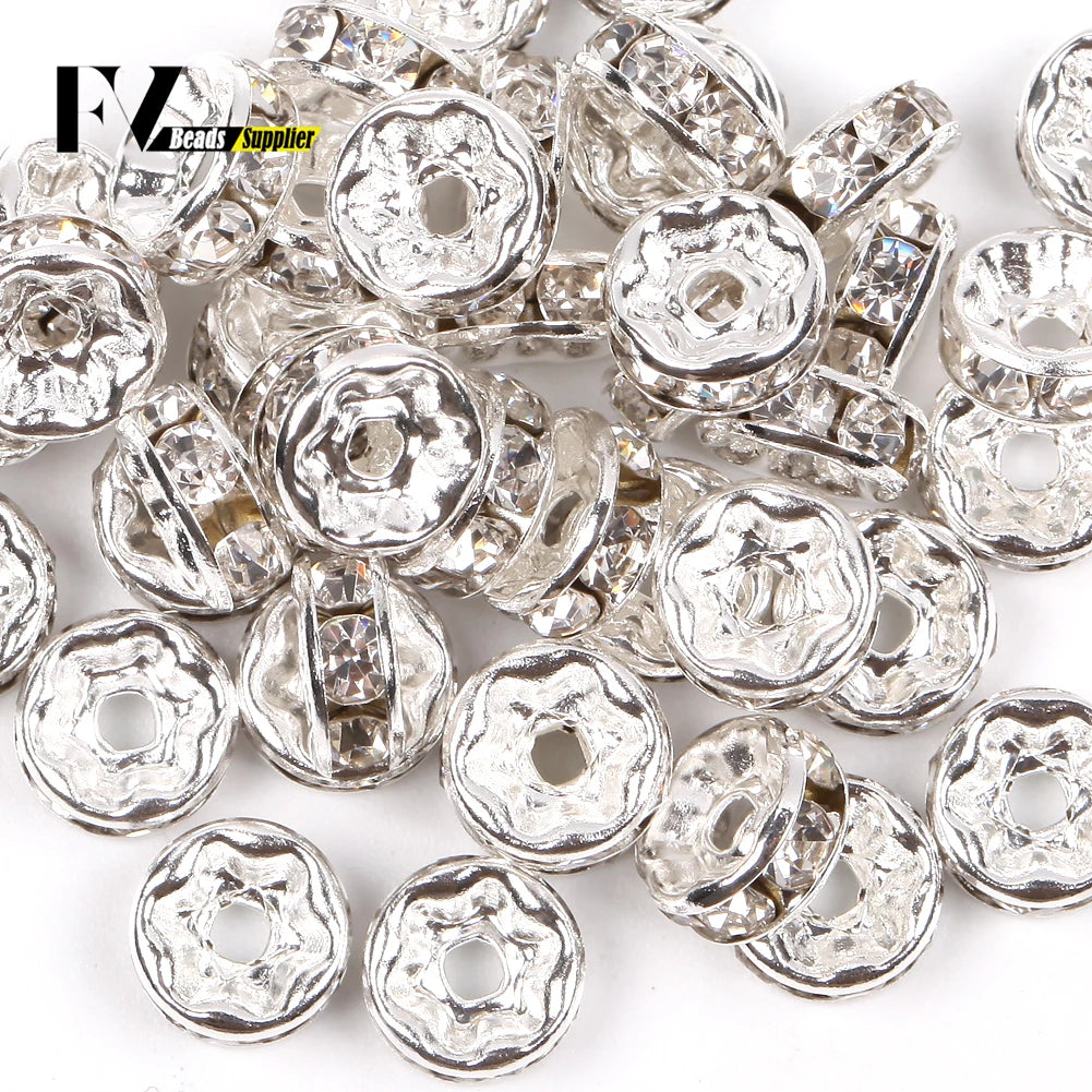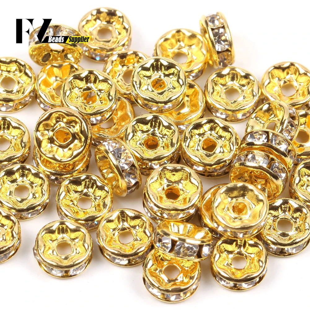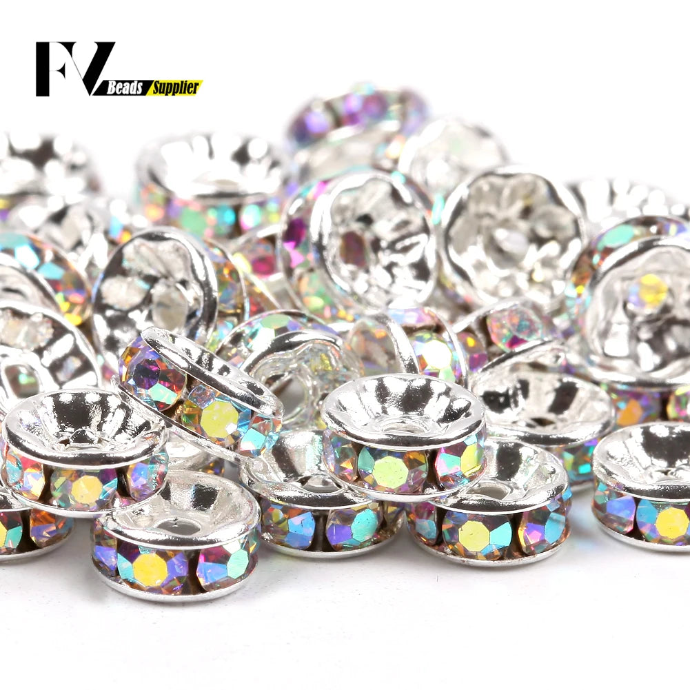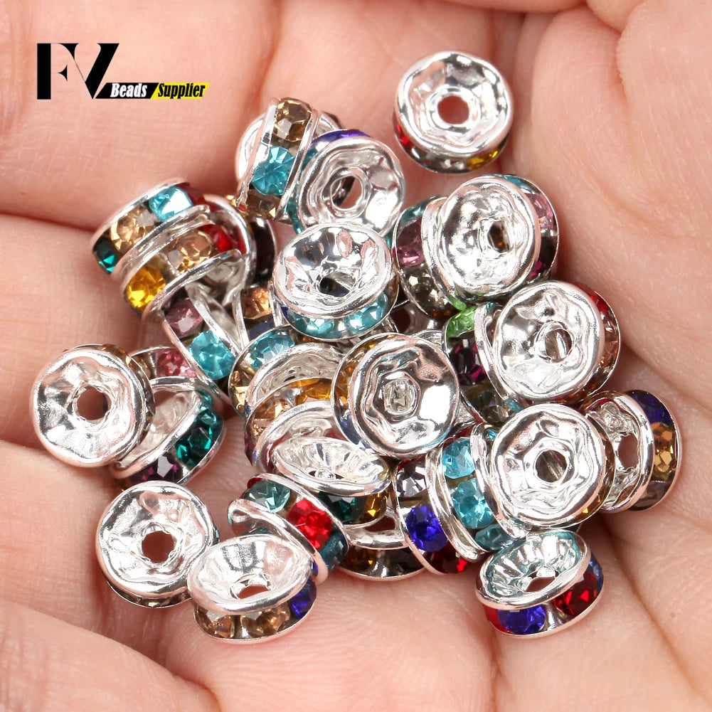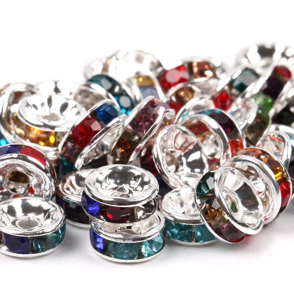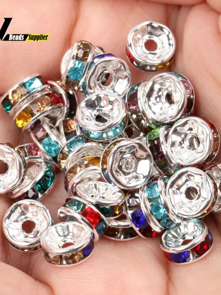 50pcs/lot 4 6 8 10mm Rhinestone Rondelle Crystal Round Loose Spacer Beads for Jewelry DIY Making Bracelet Necklace Accessories
