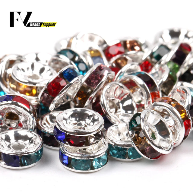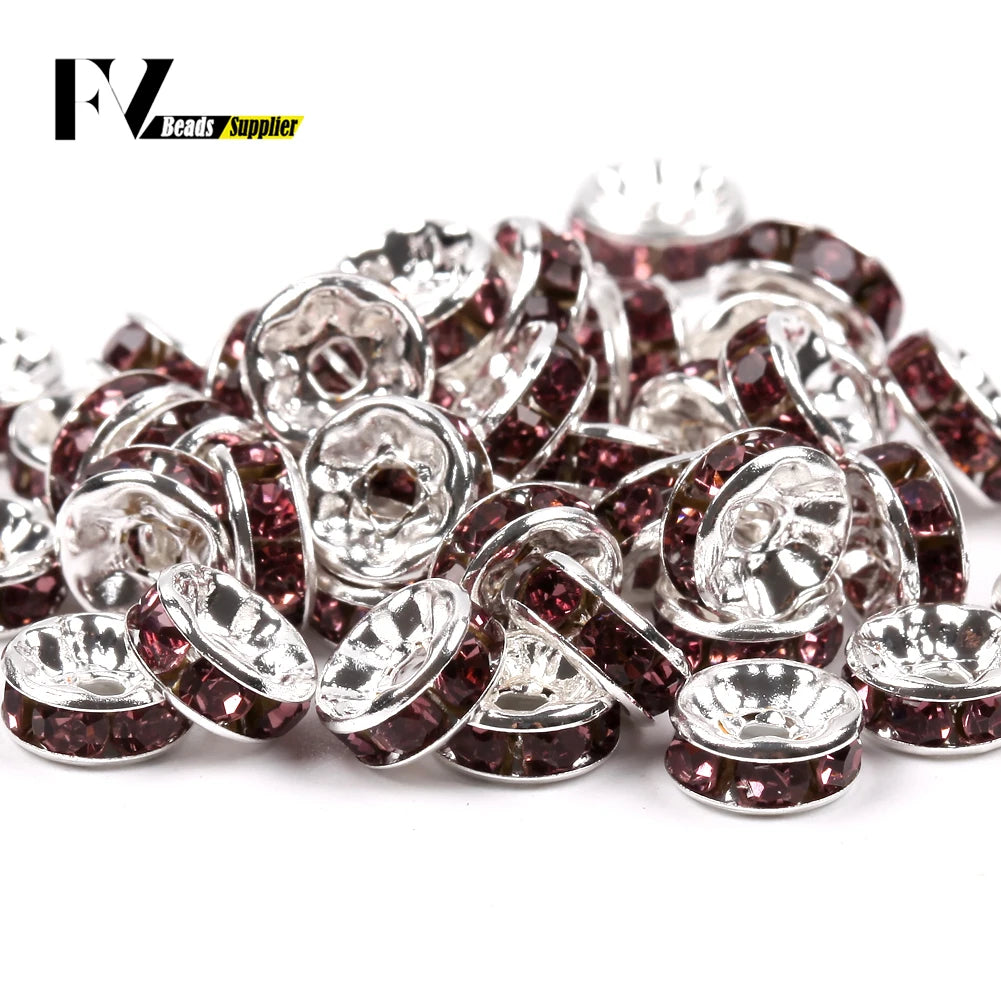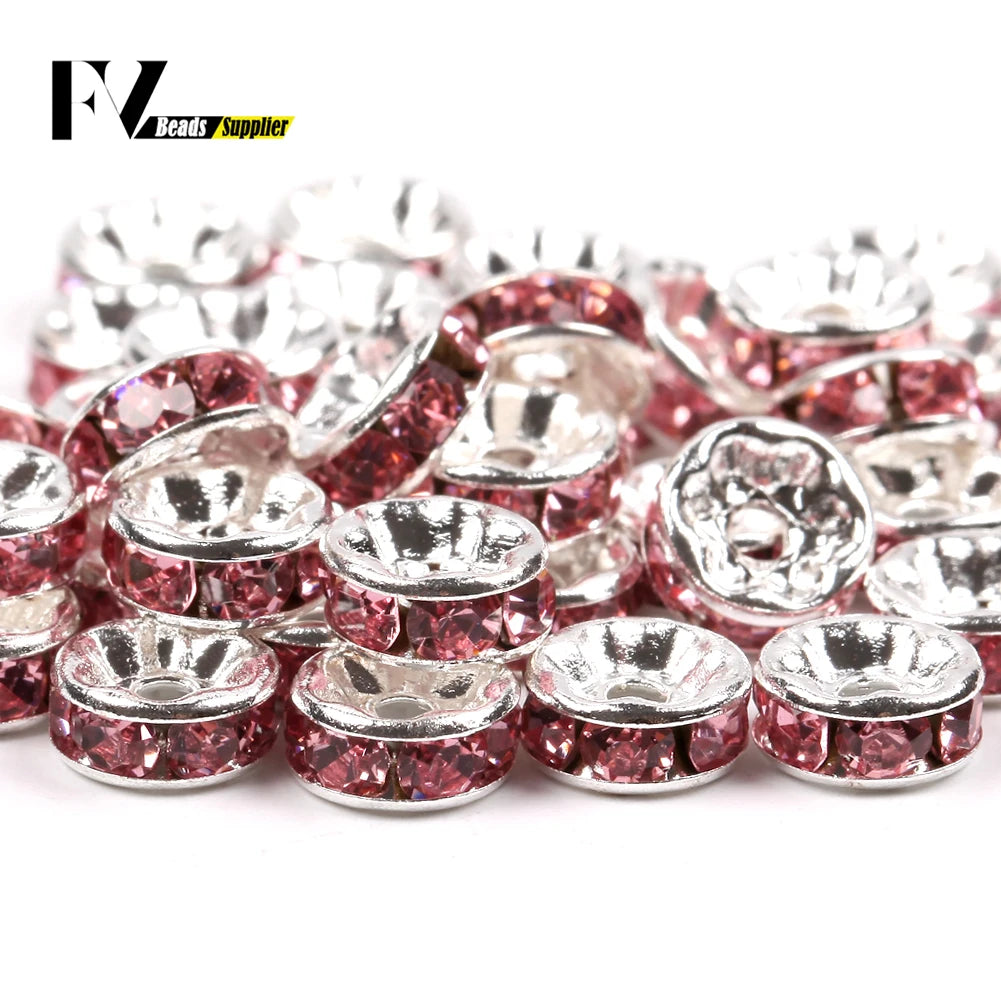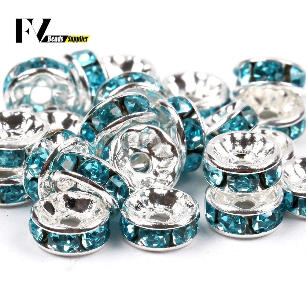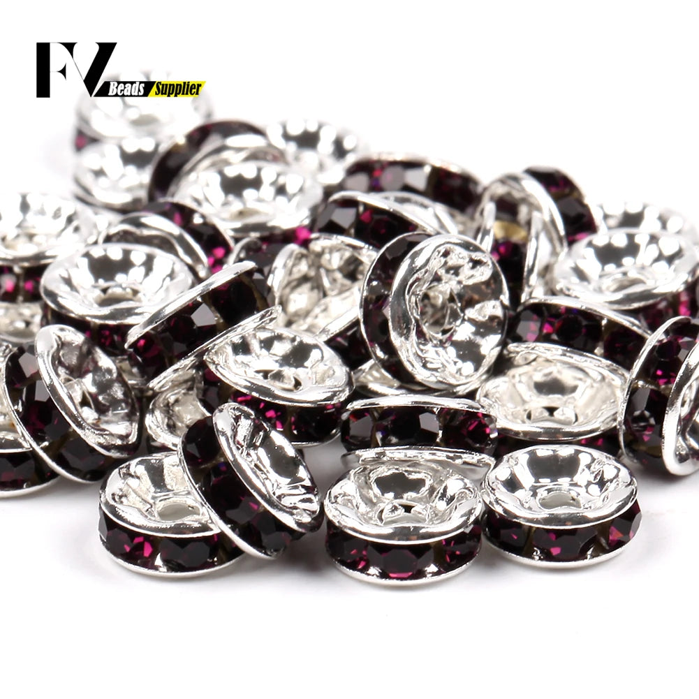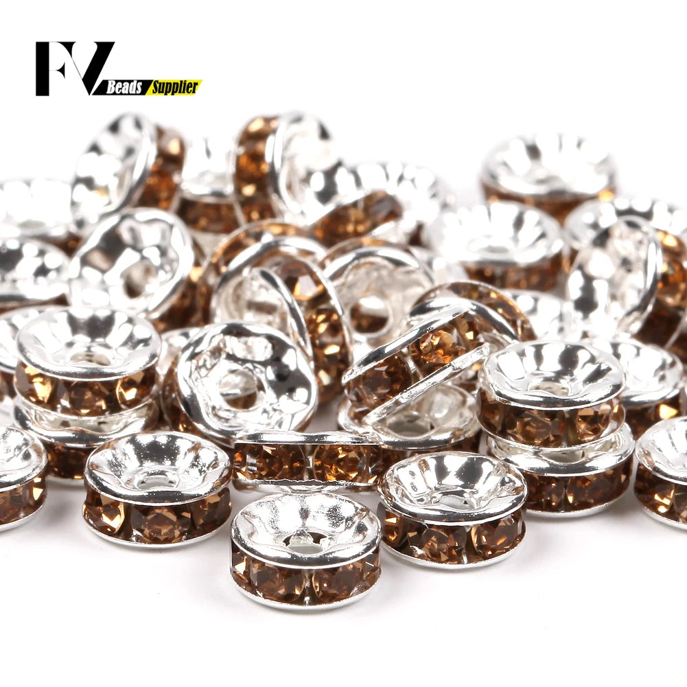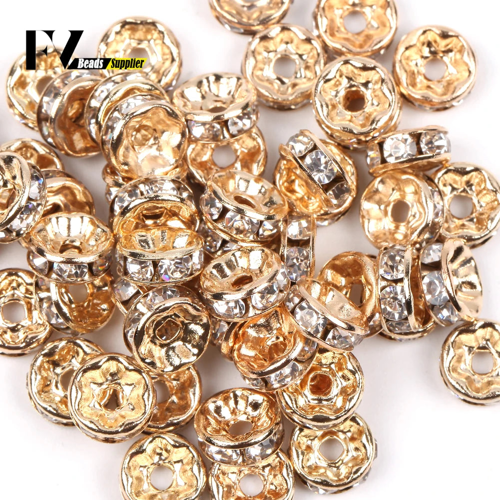 50pcs/lot 4 6 8 10mm Rhinestone Rondelle Crystal Round Loose Spacer Beads for Jewelry DIY Making Bracelet Necklace Accessories