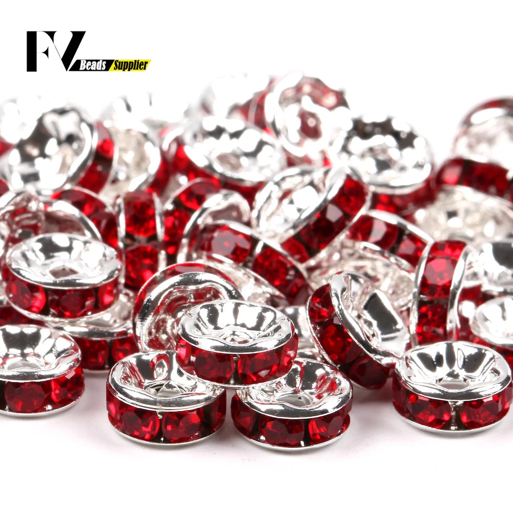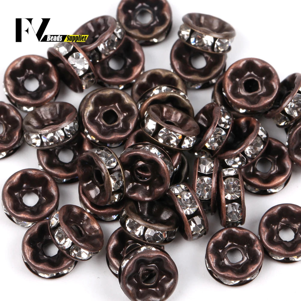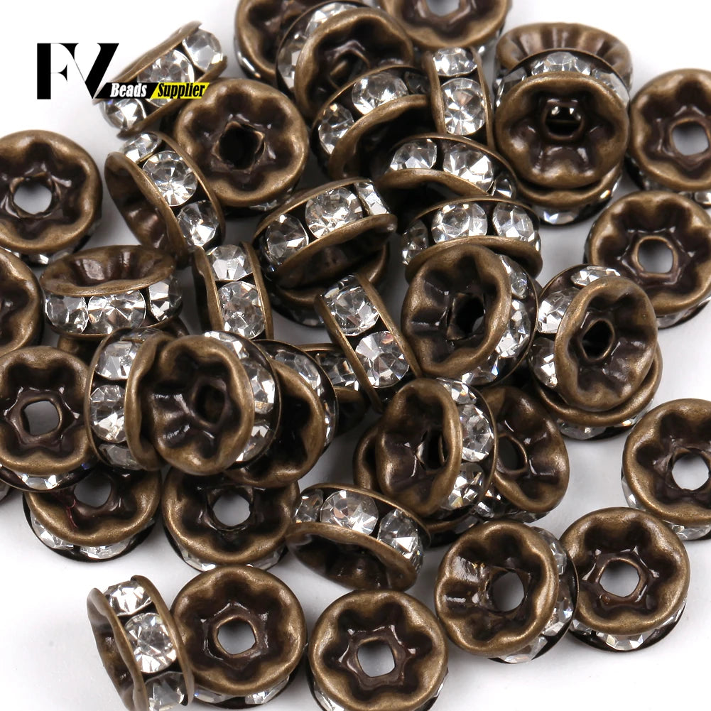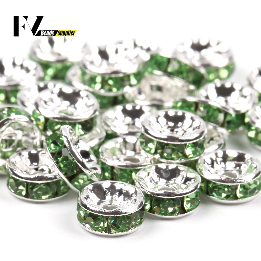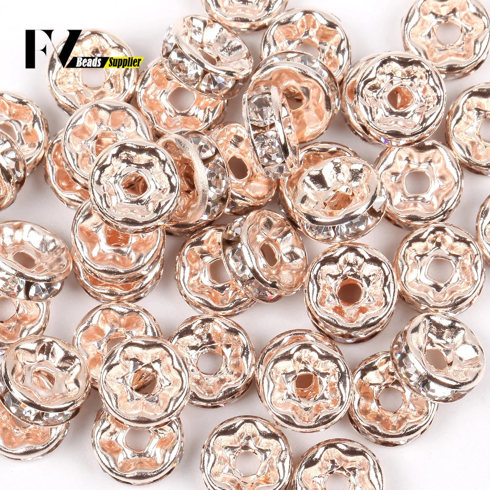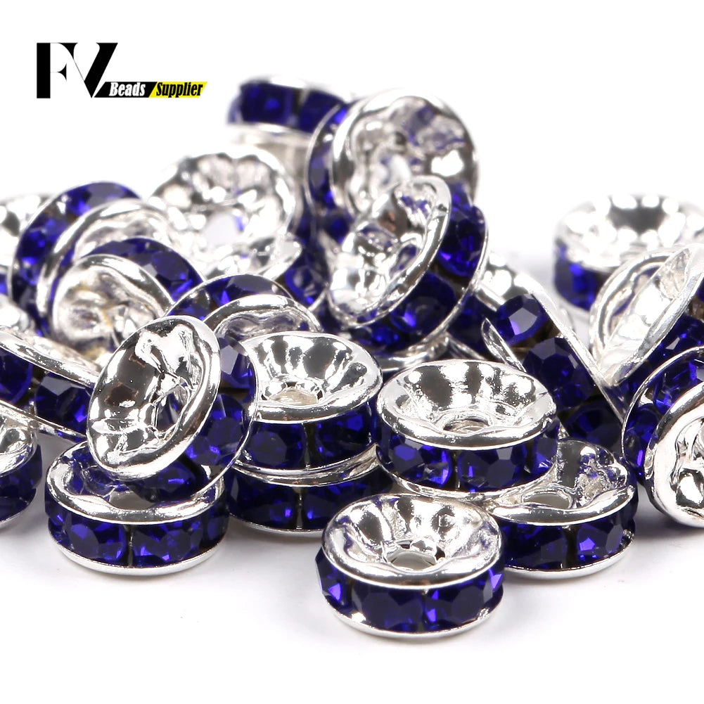 50pcs/lot 4 6 8 10mm Rhinestone Rondelle Crystal Round Loose Spacer Beads for Jewelry DIY Making Bracelet Necklace Accessories
