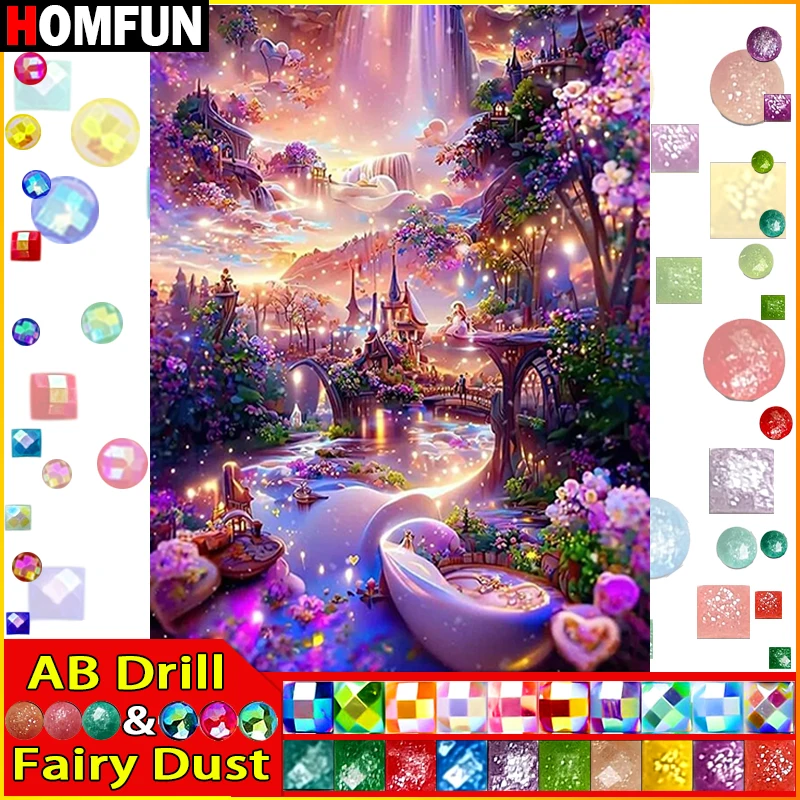 HOMFUN Fairy Dust AB Diamond Embroidery "Scenery House Flower" Pattern DIY 5D Diamond Painting Needlework...