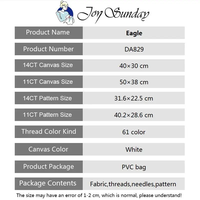 Joy Sunday Cross Stitch Factory Embroidery Animal Cotton Thread DIY Eagle Painting Kits Needlework 14CT 1...