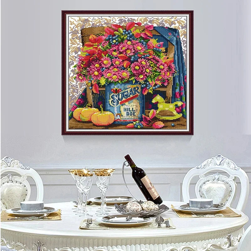 Joy Sunday Daisy Flower Basket Cross Stitch Kit DIY Floral Pattern 11CT 14CT Canvas Needlework Embroidery...