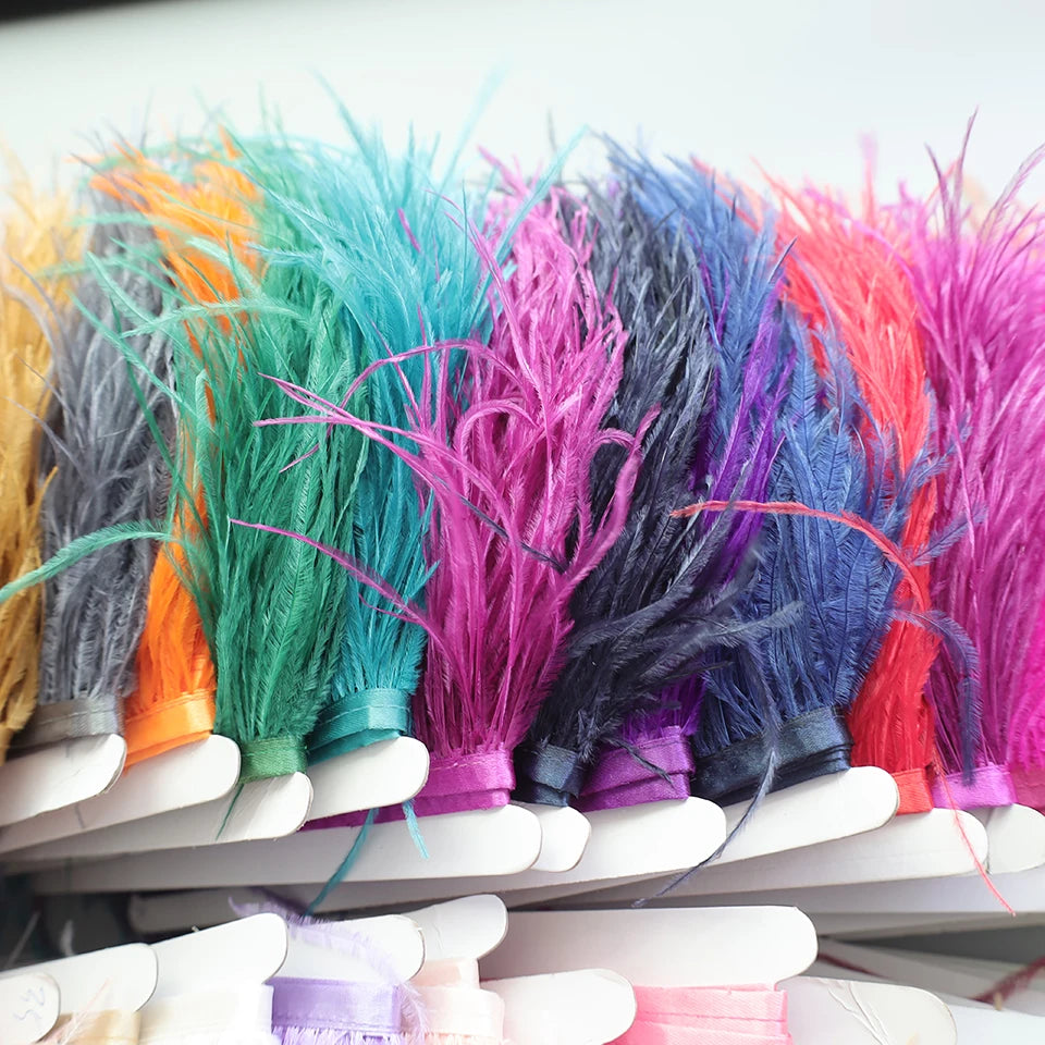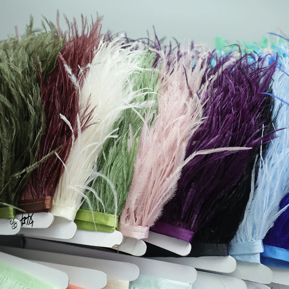 Ostrich Feathers Trim 13-18 CM Plumes on Ribbon Selvage For DIY Wedding Sewing in Dress Decoration Crafts...