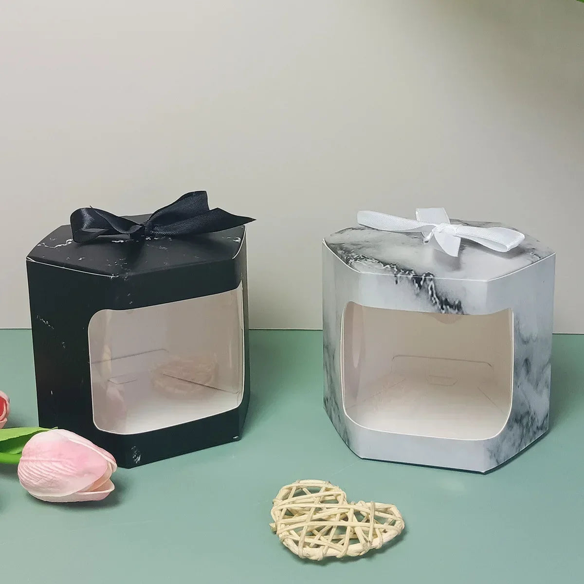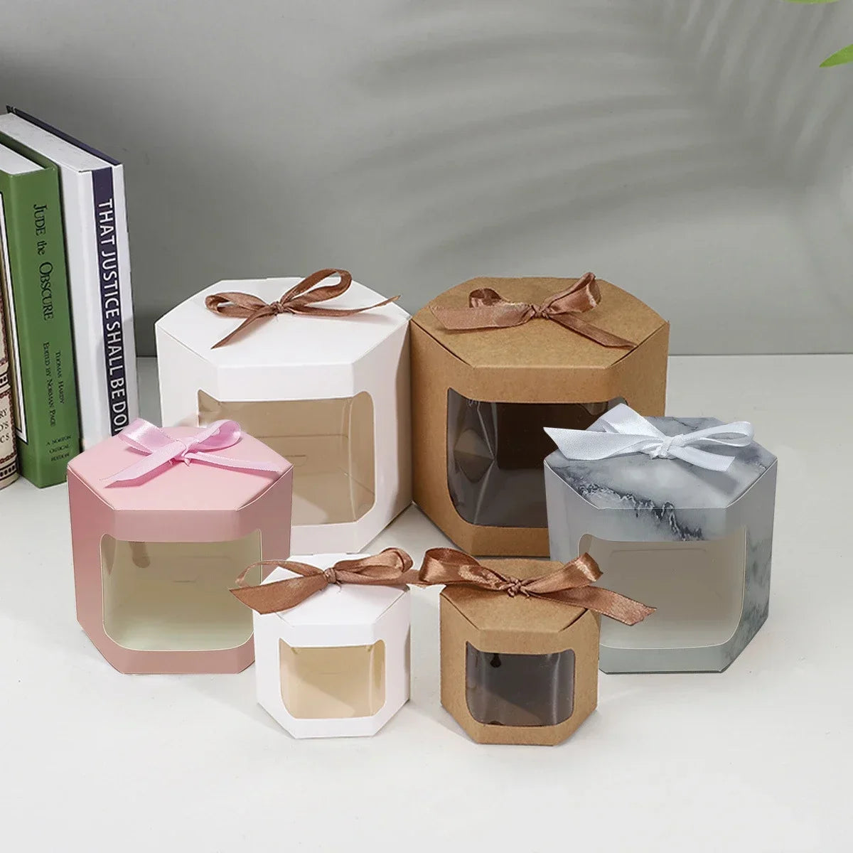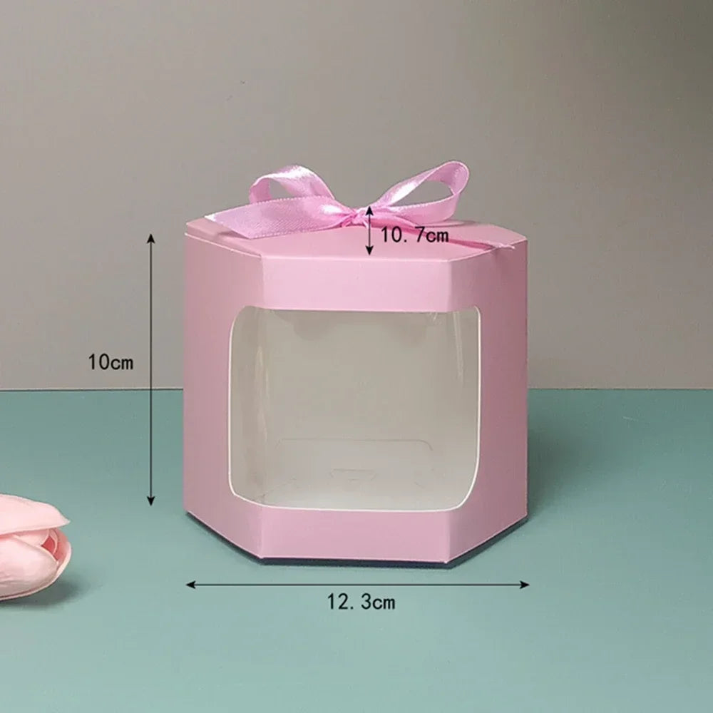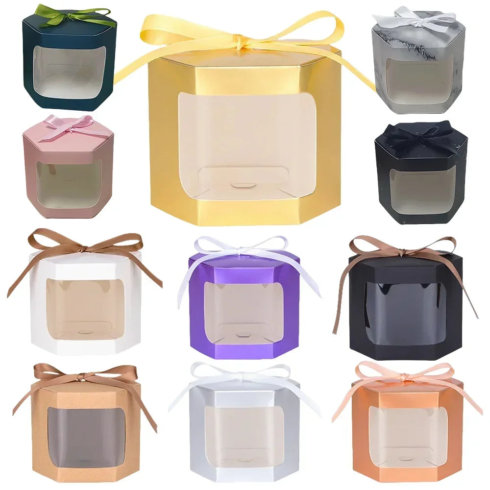 10pcs Hexagon Cake Box Packaging Paper Bags Candy Boxes Birthday Gift Box wit...