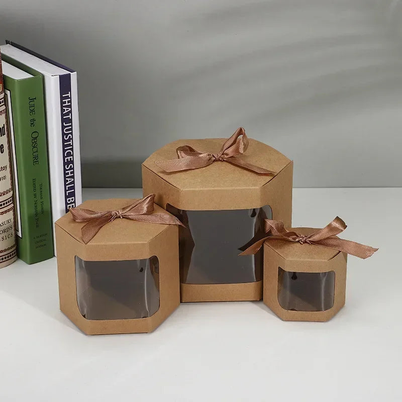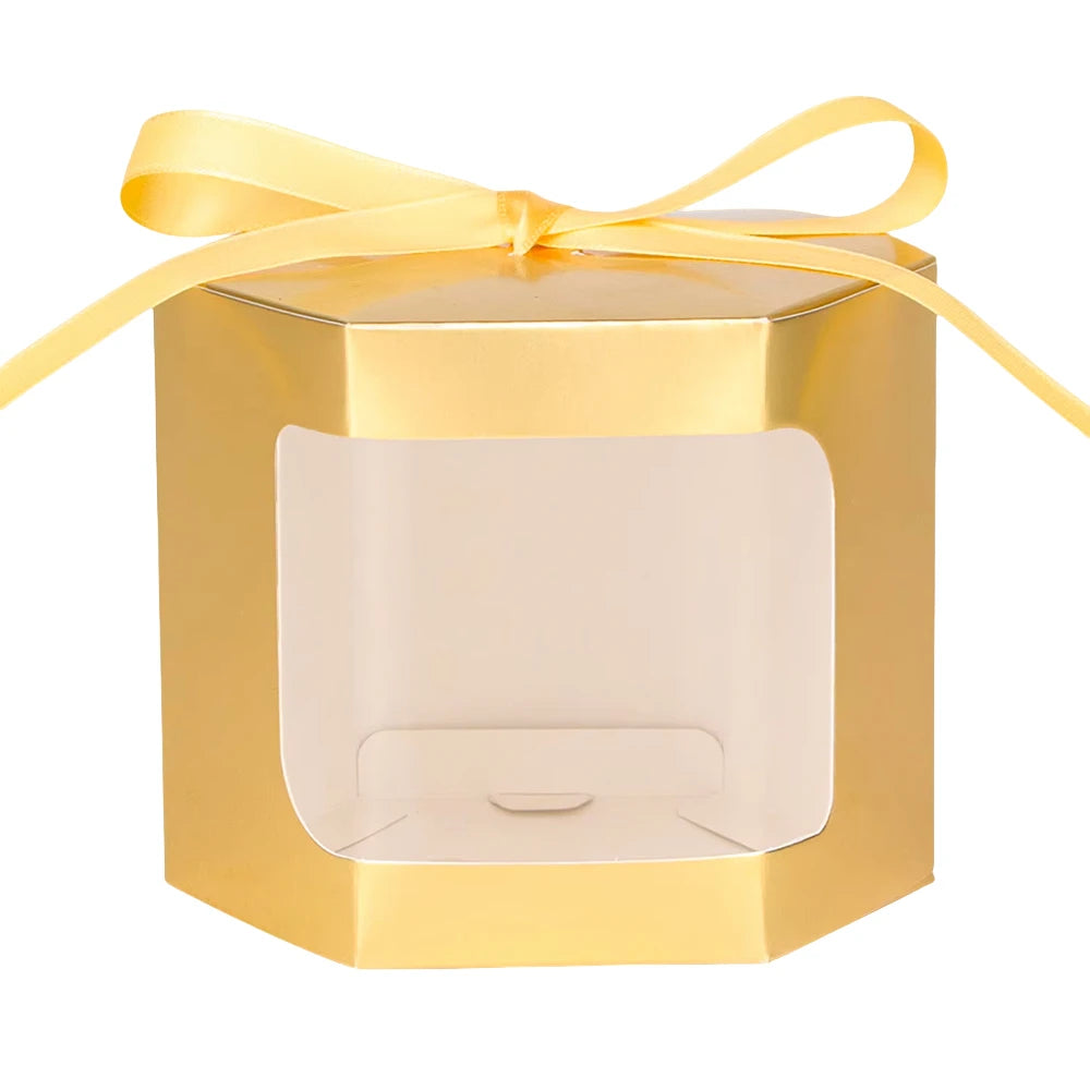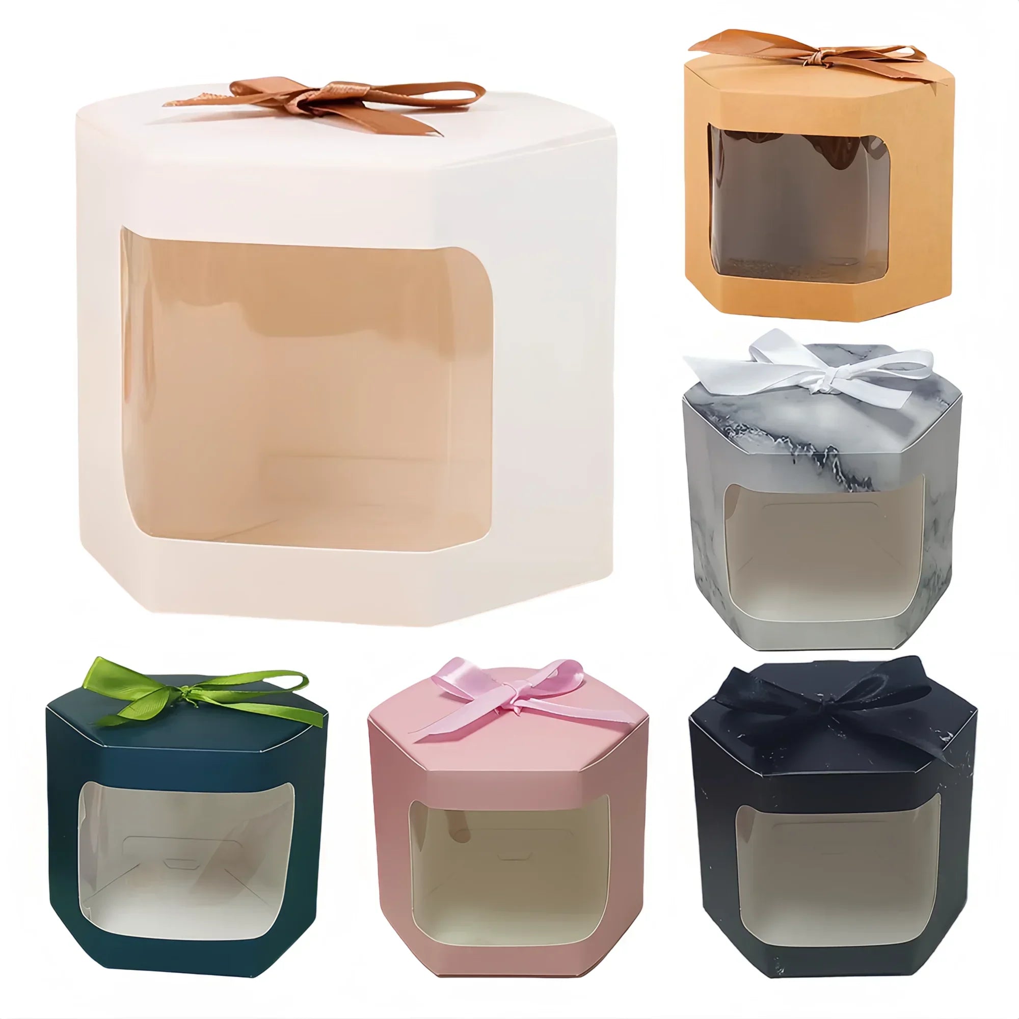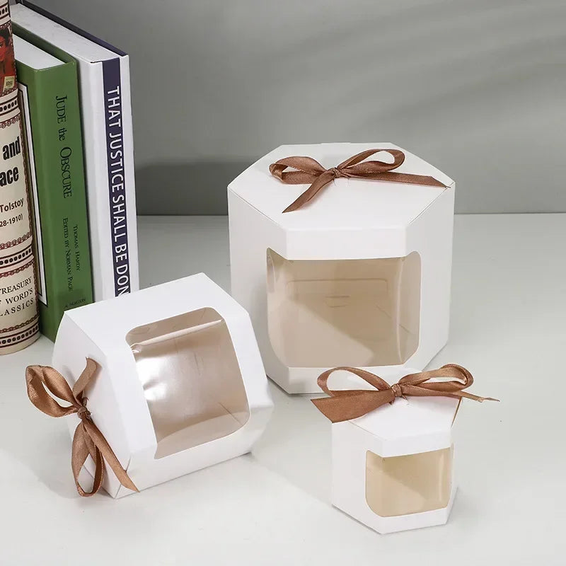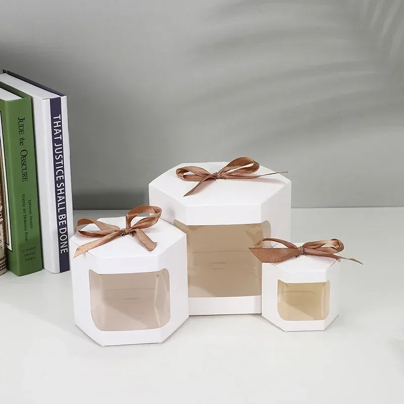 10pcs Hexagon Cake Box Packaging Paper Bags Candy Boxes Birthday Gift Box wit...