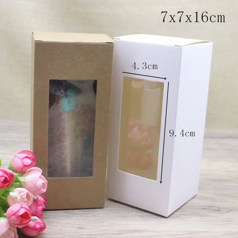 10pcs Rectangle Window Box 7X7x8cm 7x7x16cm Paper Package Box White Kraft Gif...