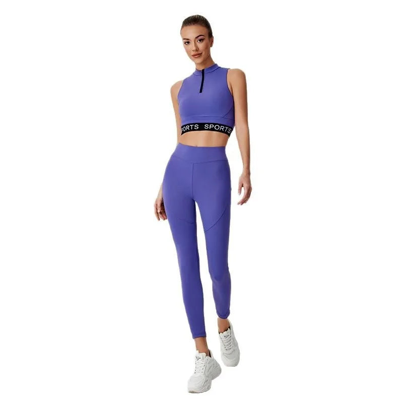 2 Pieces Seamless Zip Front Sports Yoga Set Women Gym Fitness Suits Female Turndown Collar Workout Clothe...