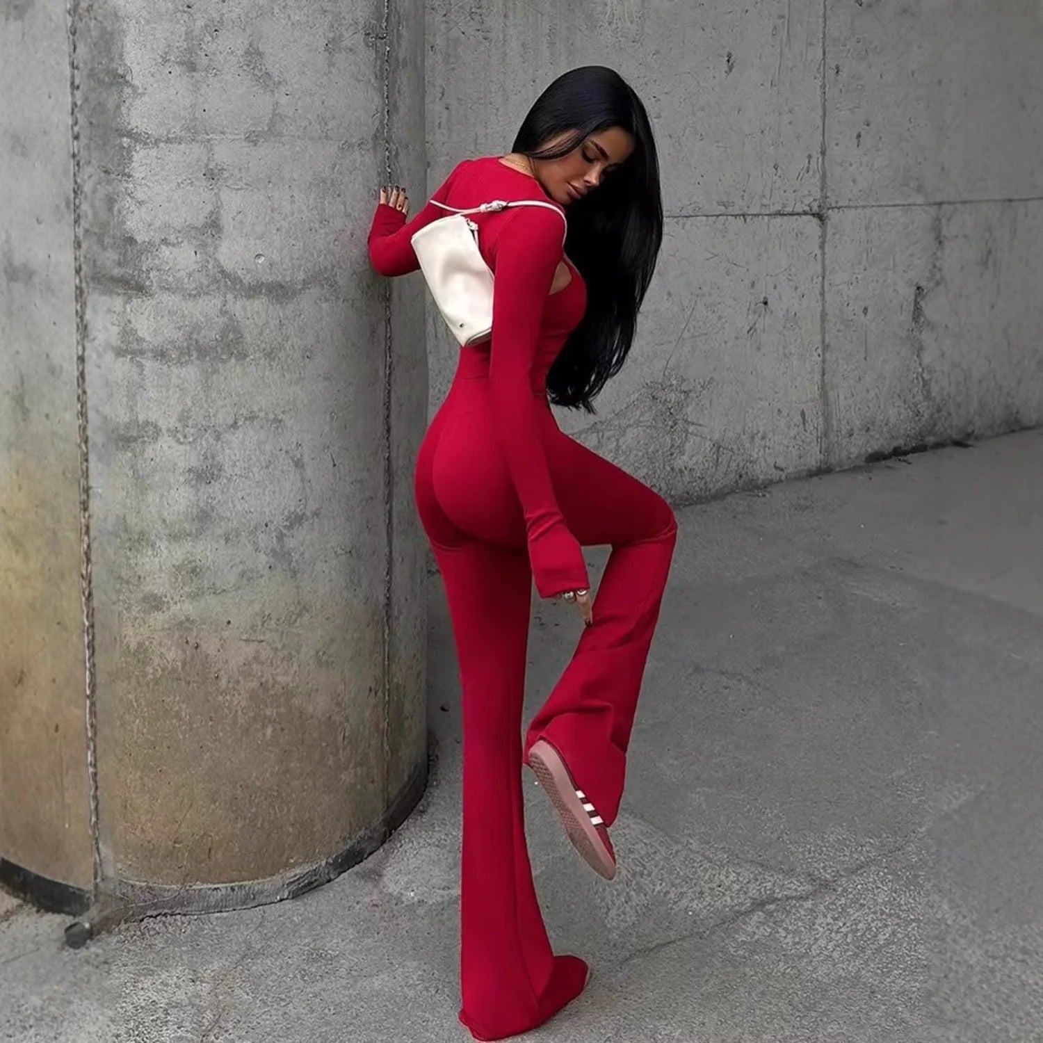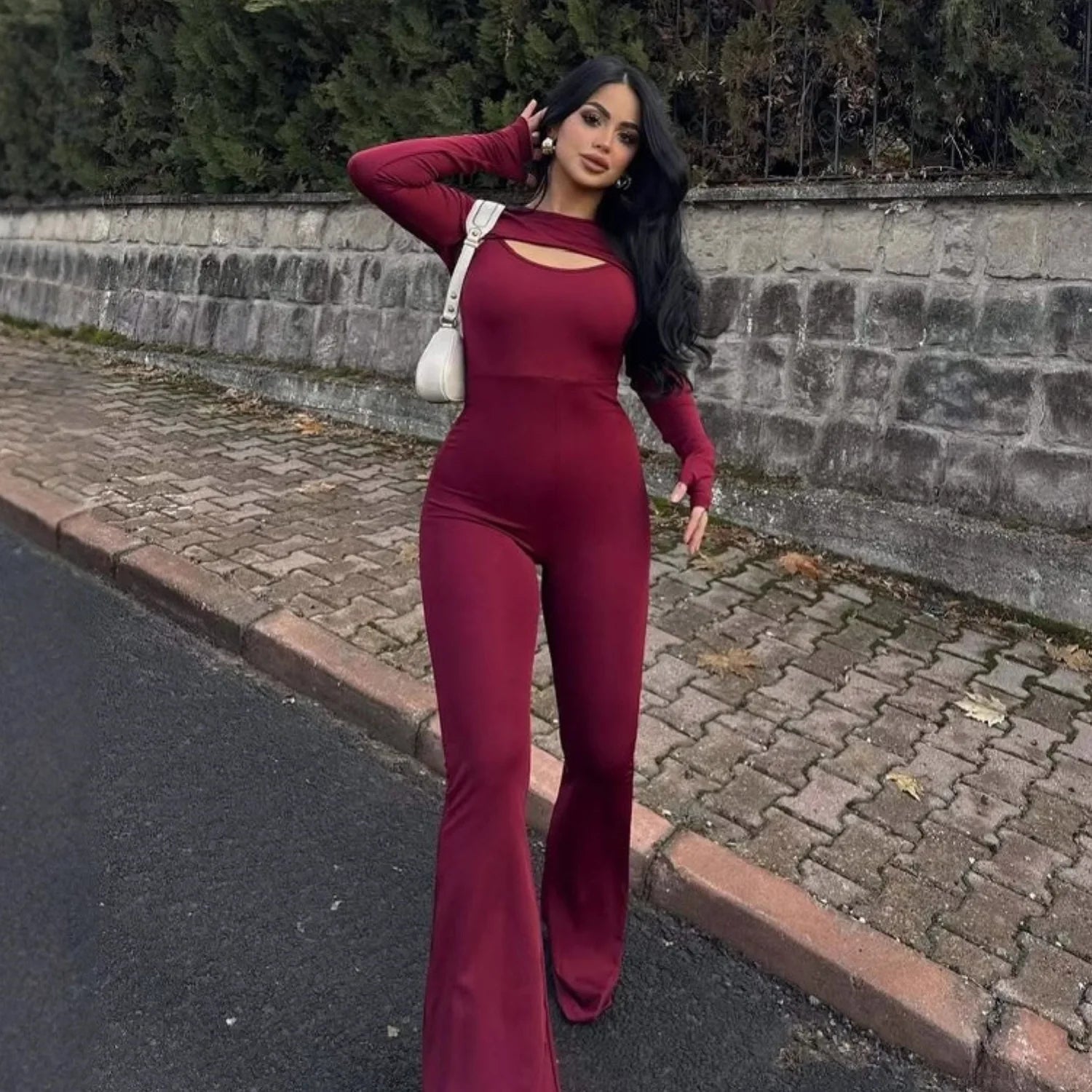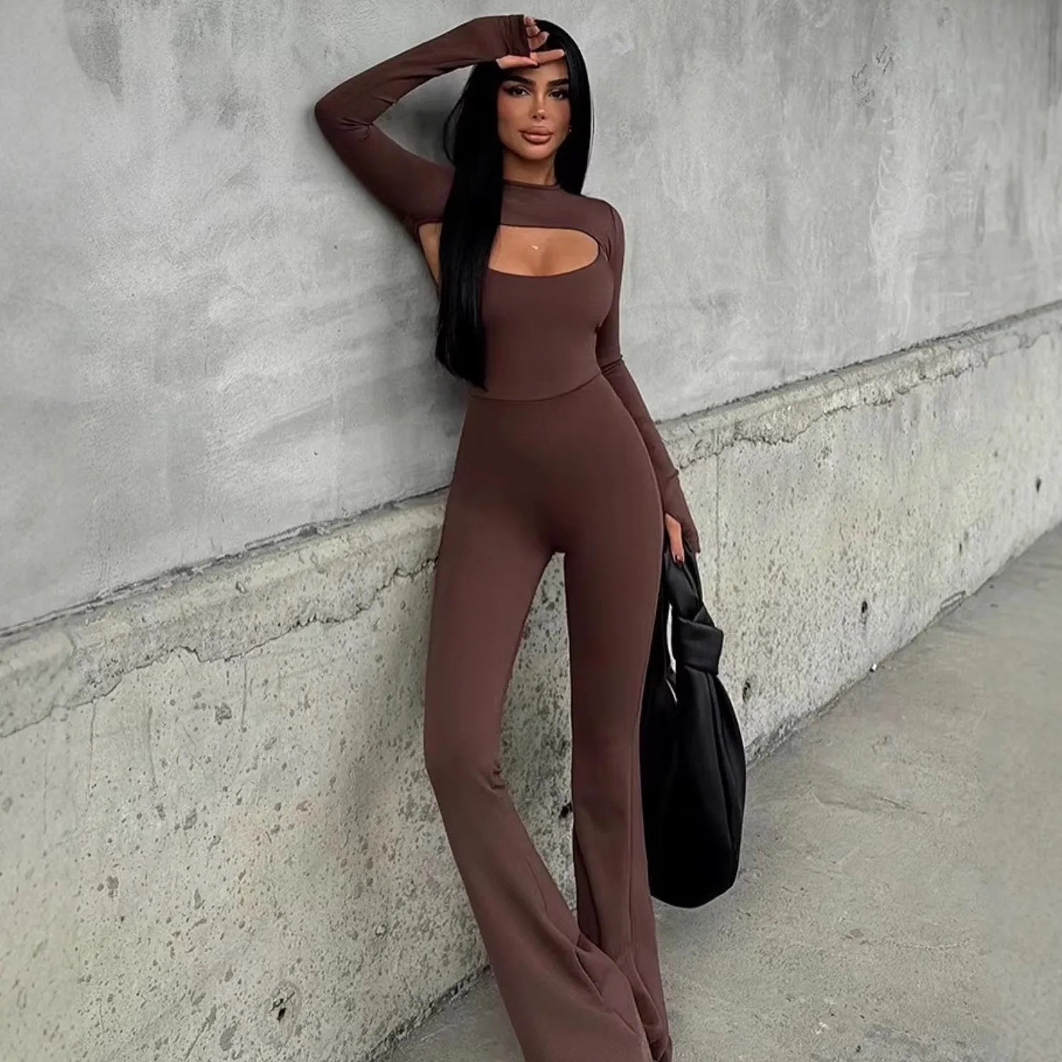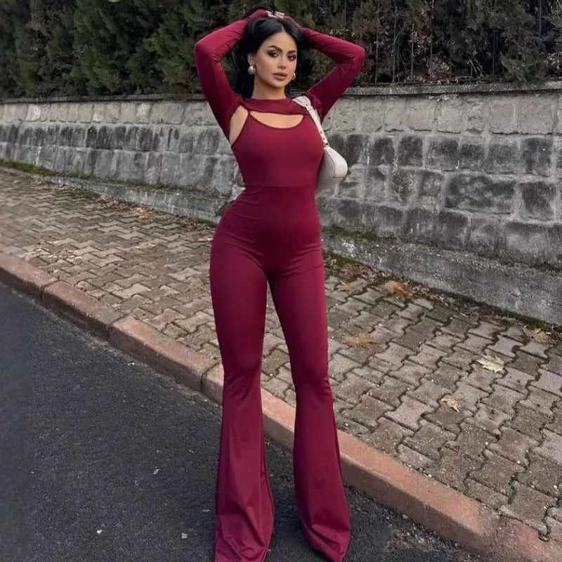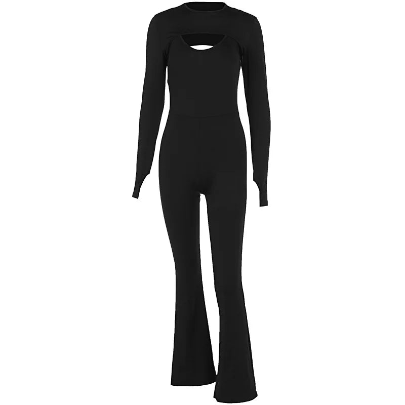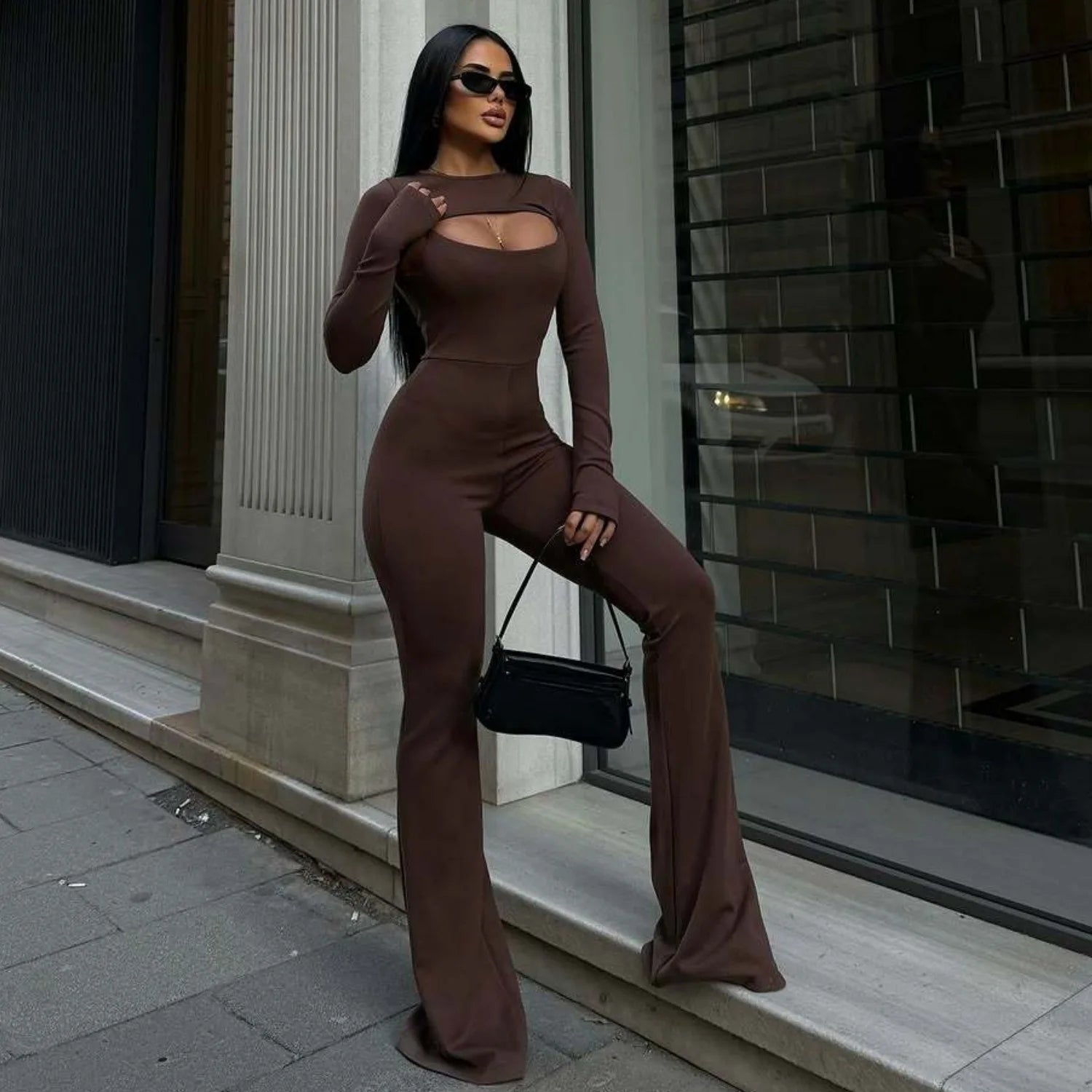 2025 NEW Hollow Out Two Piece Sets Women Jumpsuit Long Sleeve Top Spaghetti Strap Playsuit Winter New Ele...