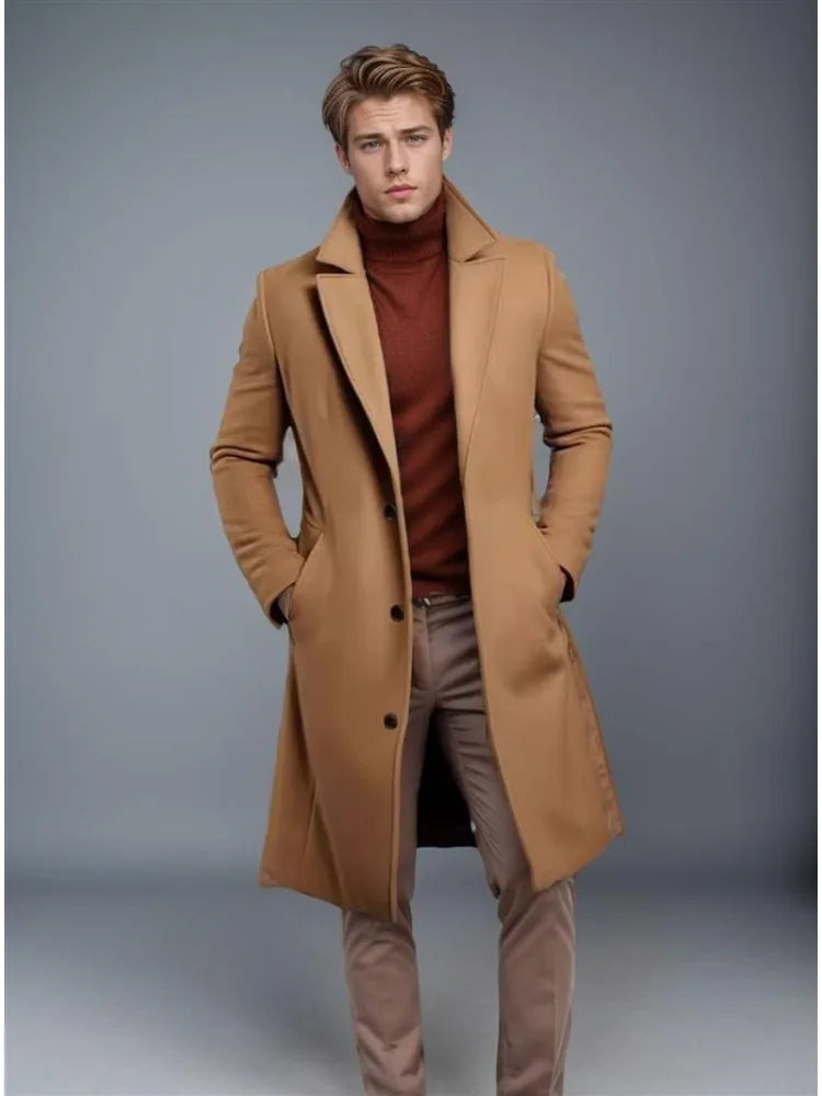 2025 NEW Men's Wool Blended Coat Multi color Slim fit Medium length Casual Lightweight Coat