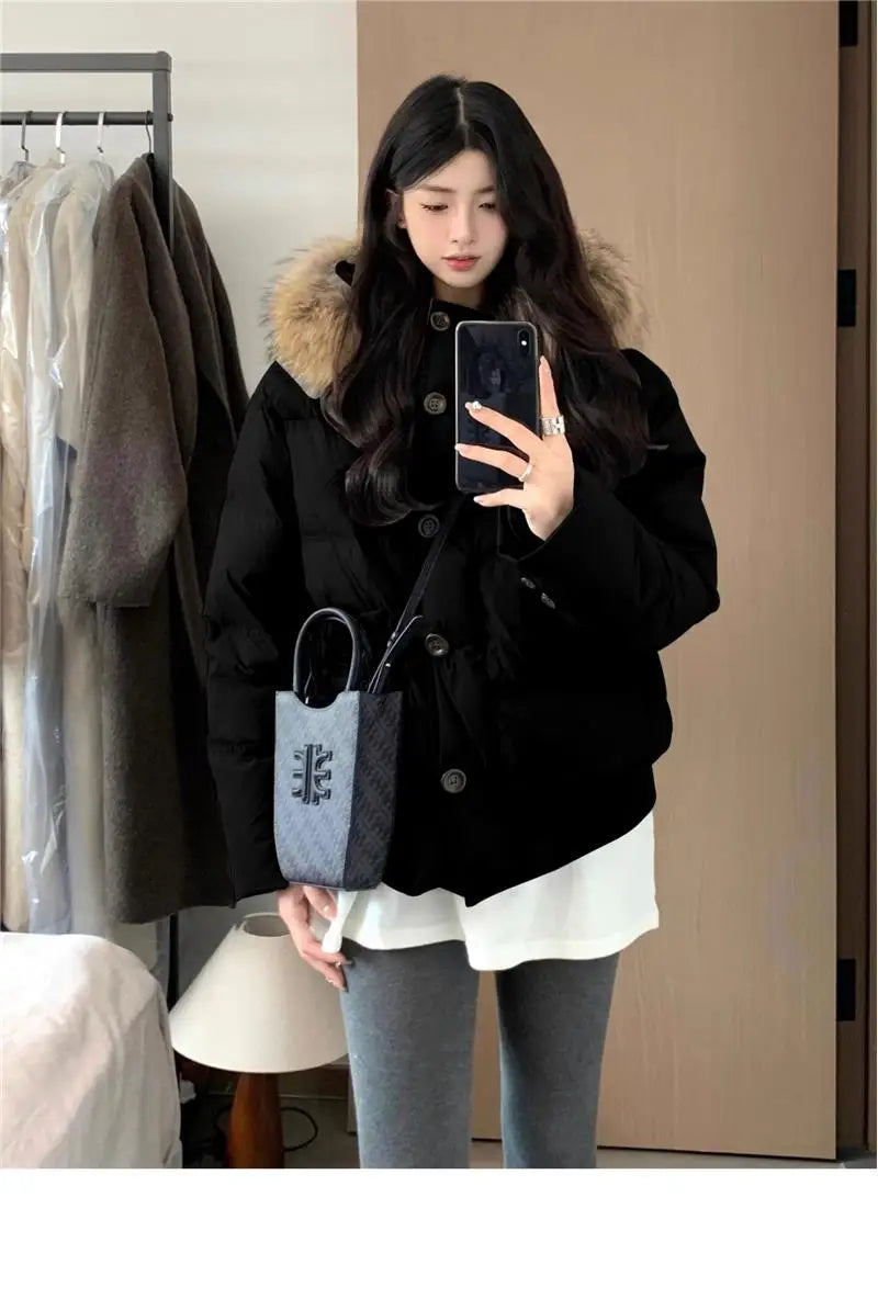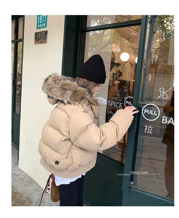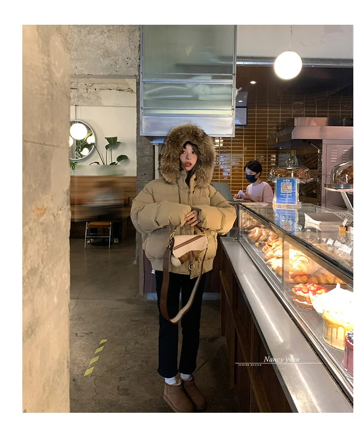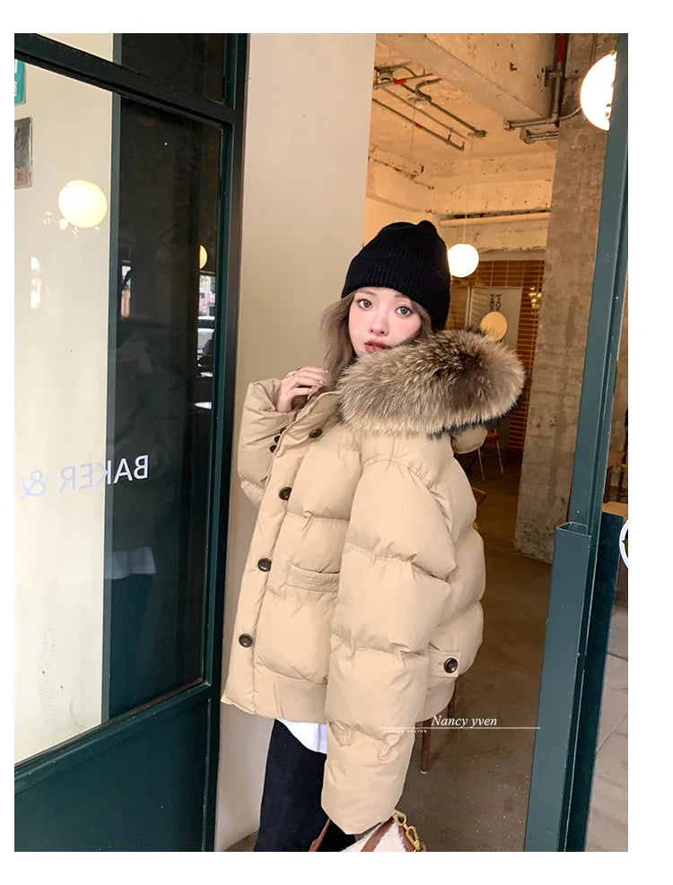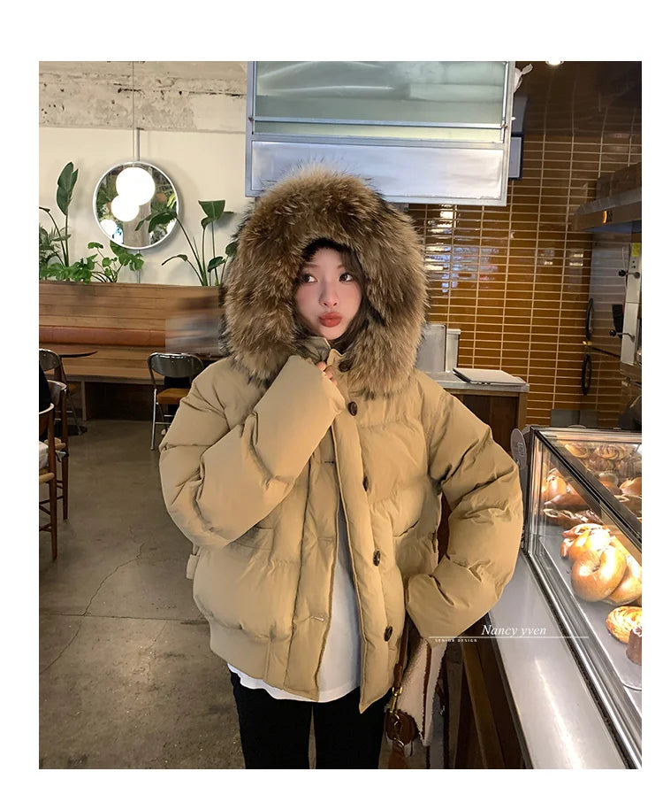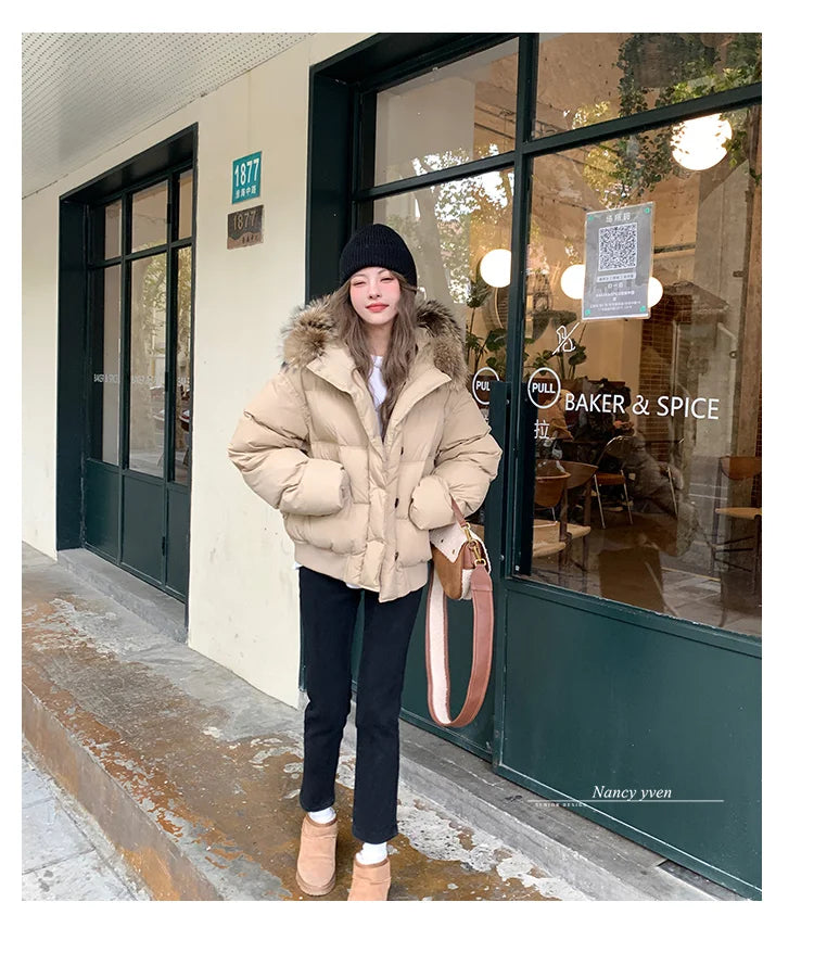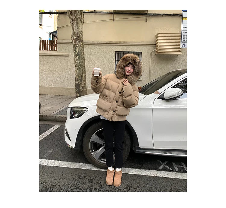 2025 NEW Women's Short Thickened down Cotton Jacket Winter New Design Large Fur Collar Coat Warm Stylish Female Outerwear Coat