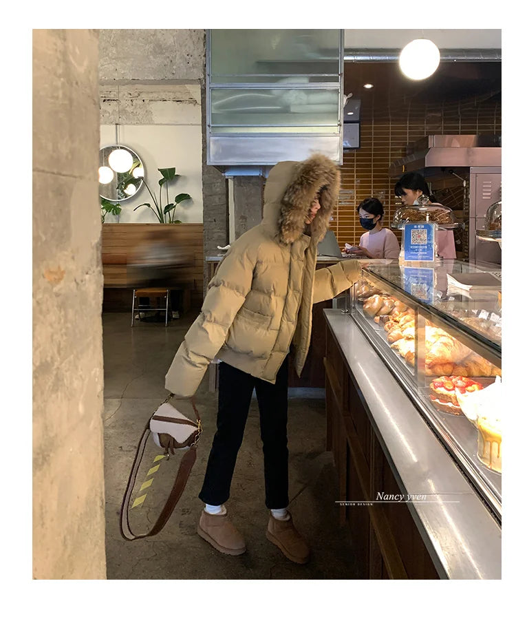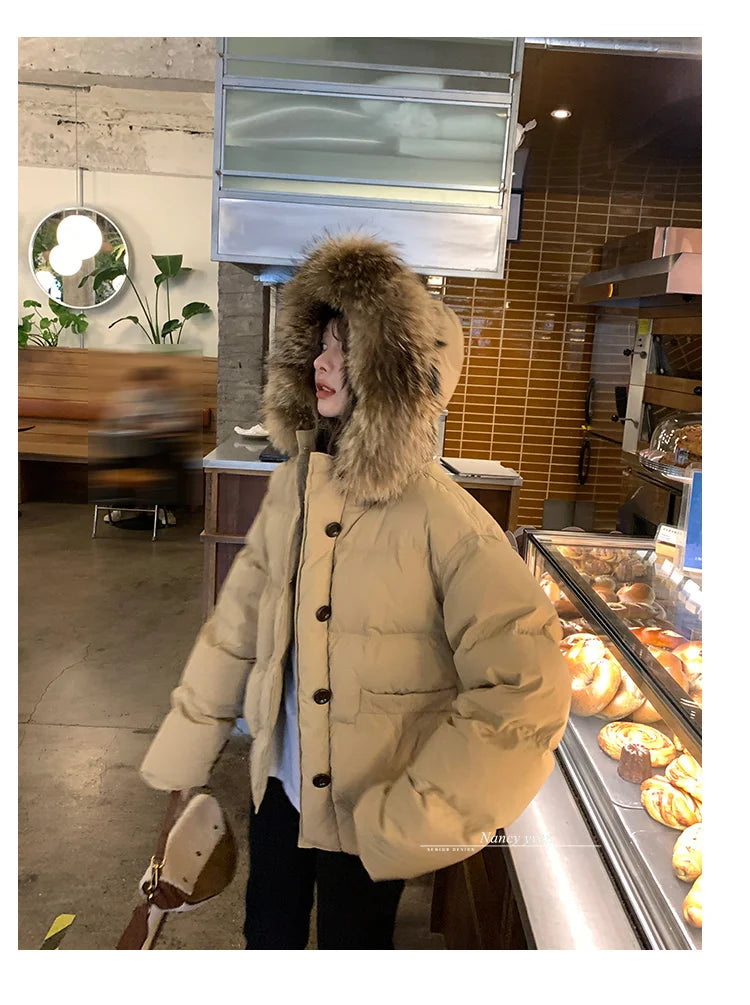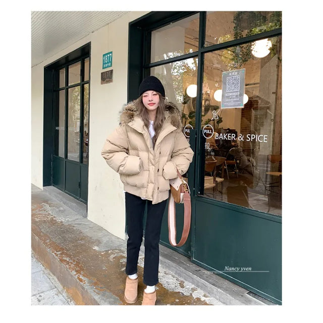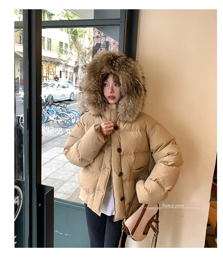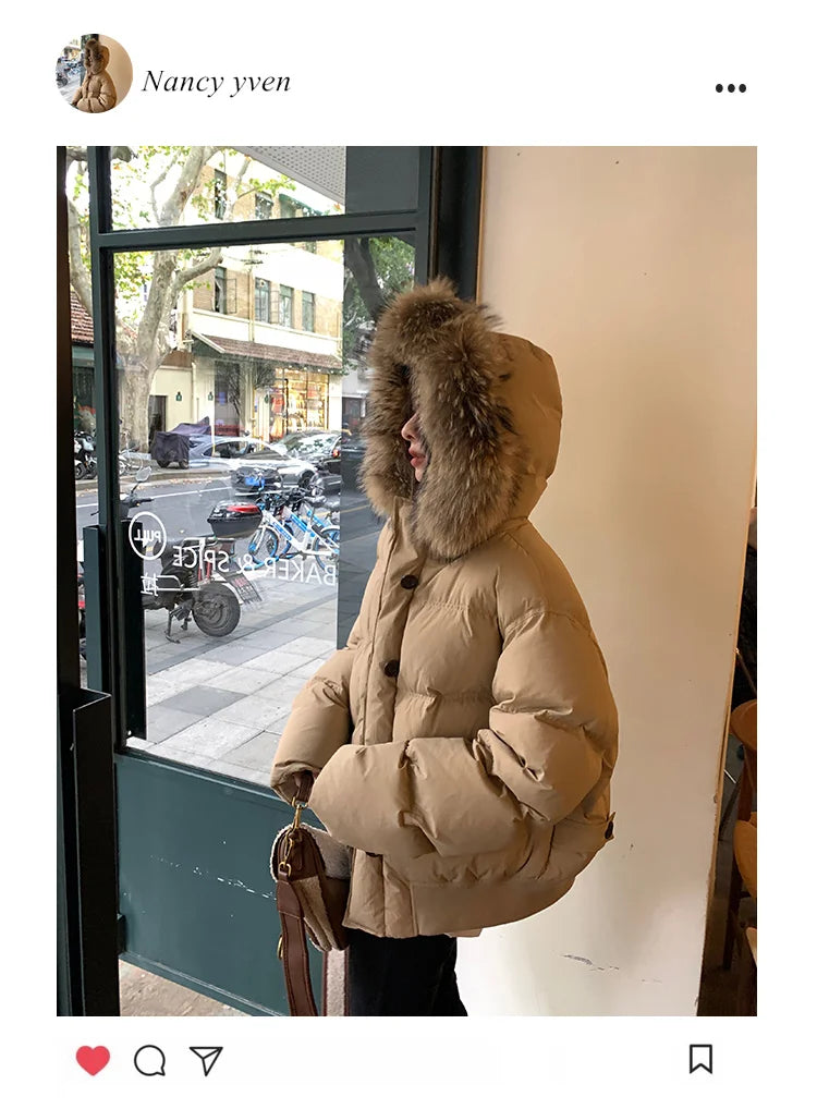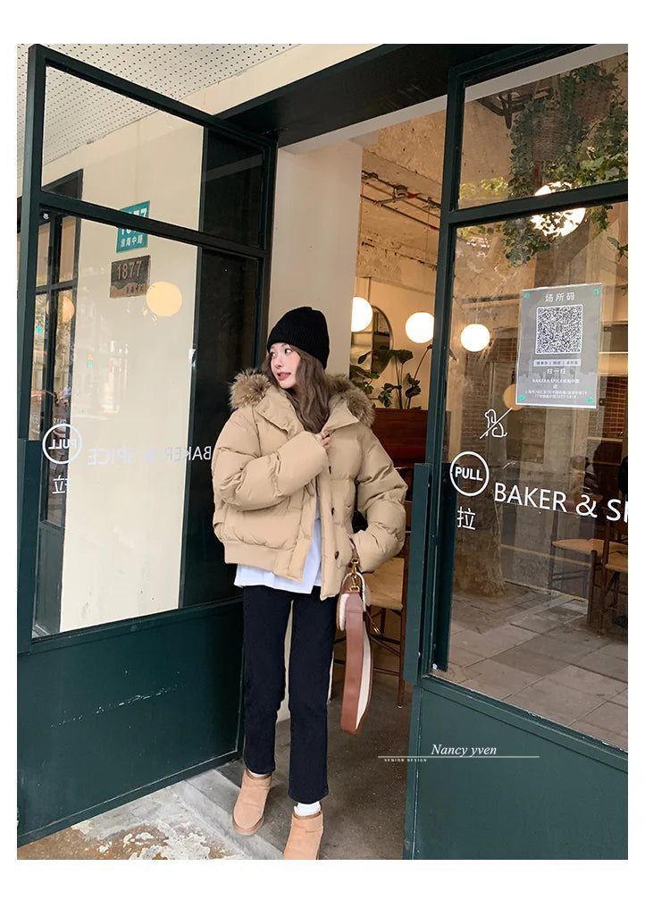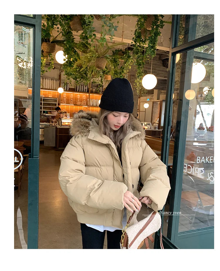 2025 NEW Women's Short Thickened down Cotton Jacket Winter New Design Large Fur Collar Coat Warm Stylish Female Outerwear Coat