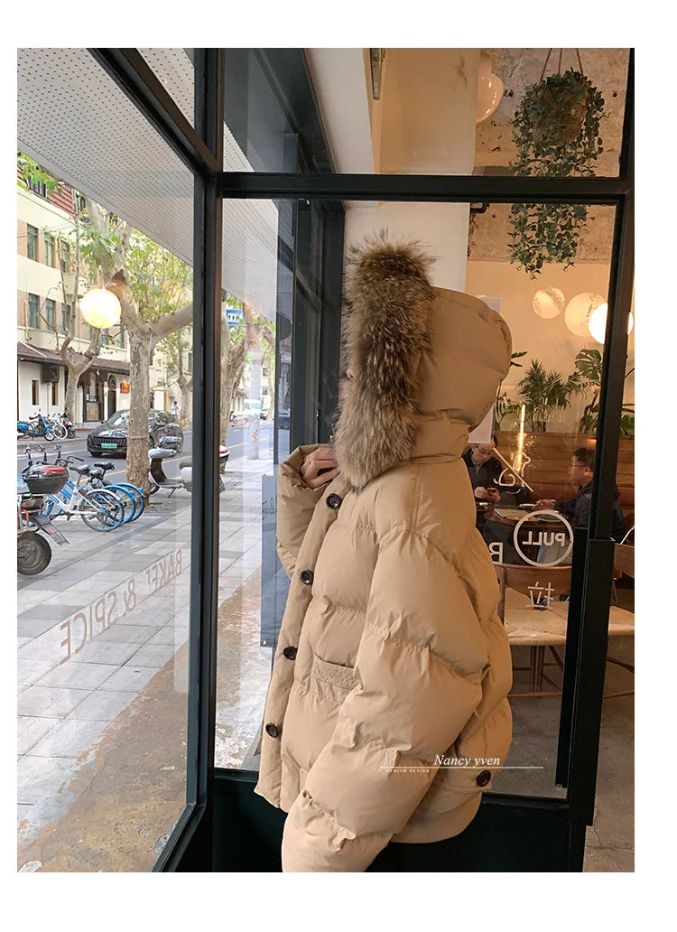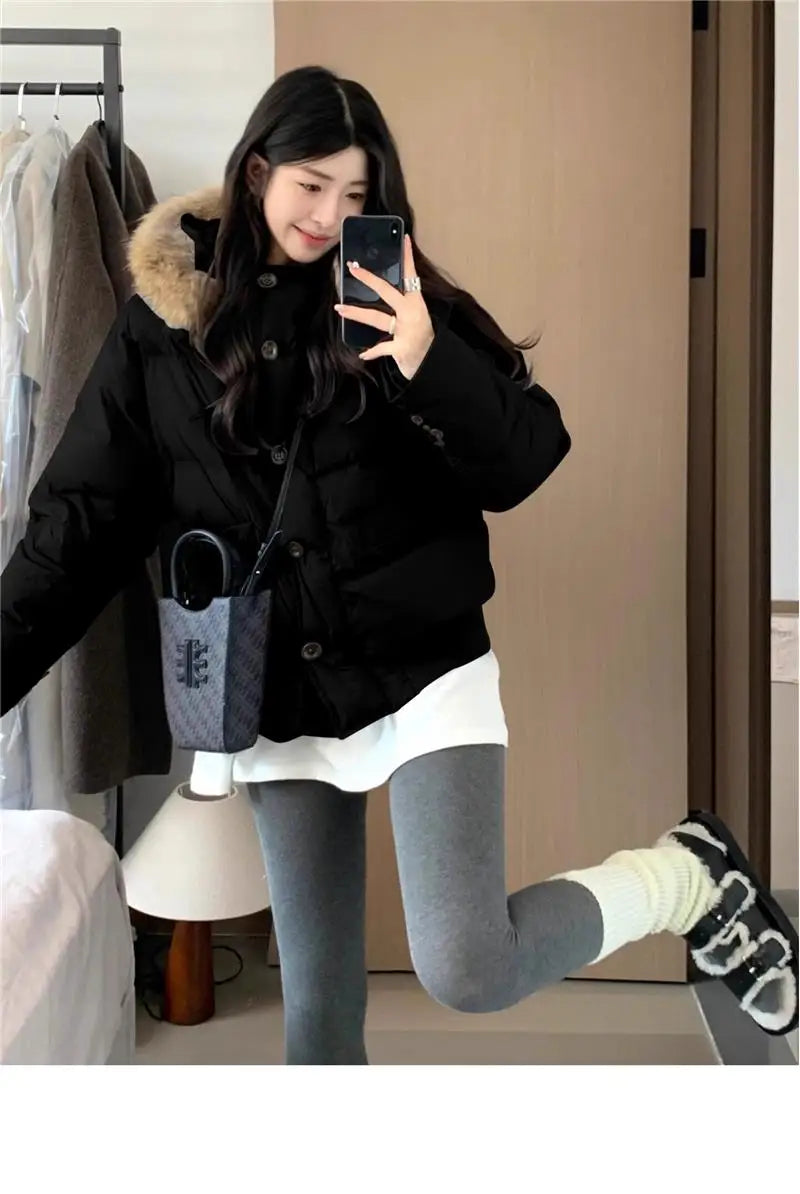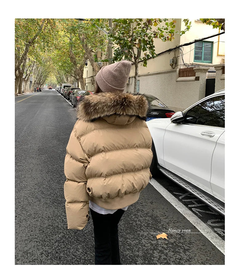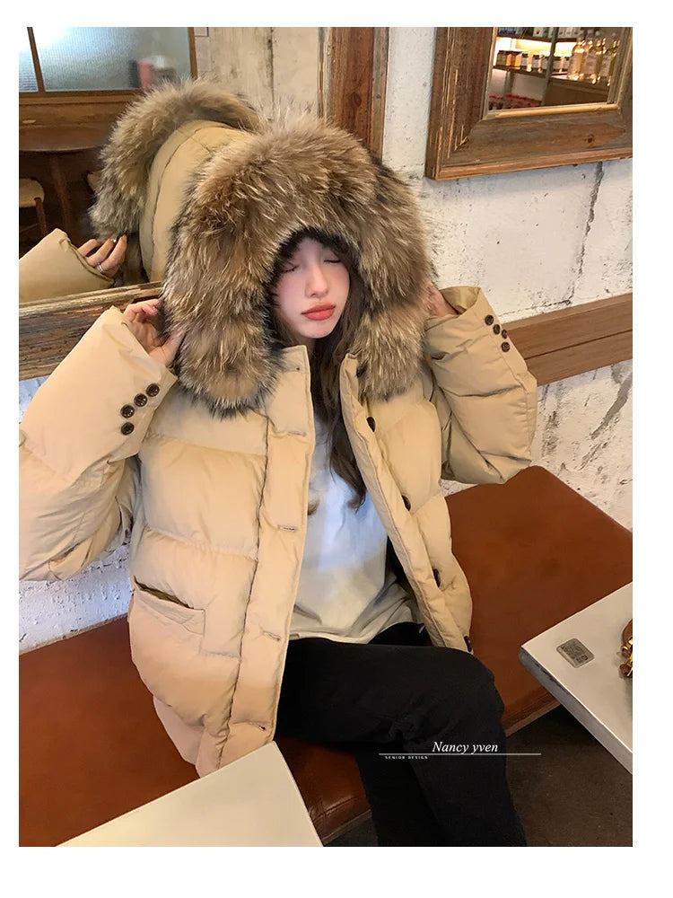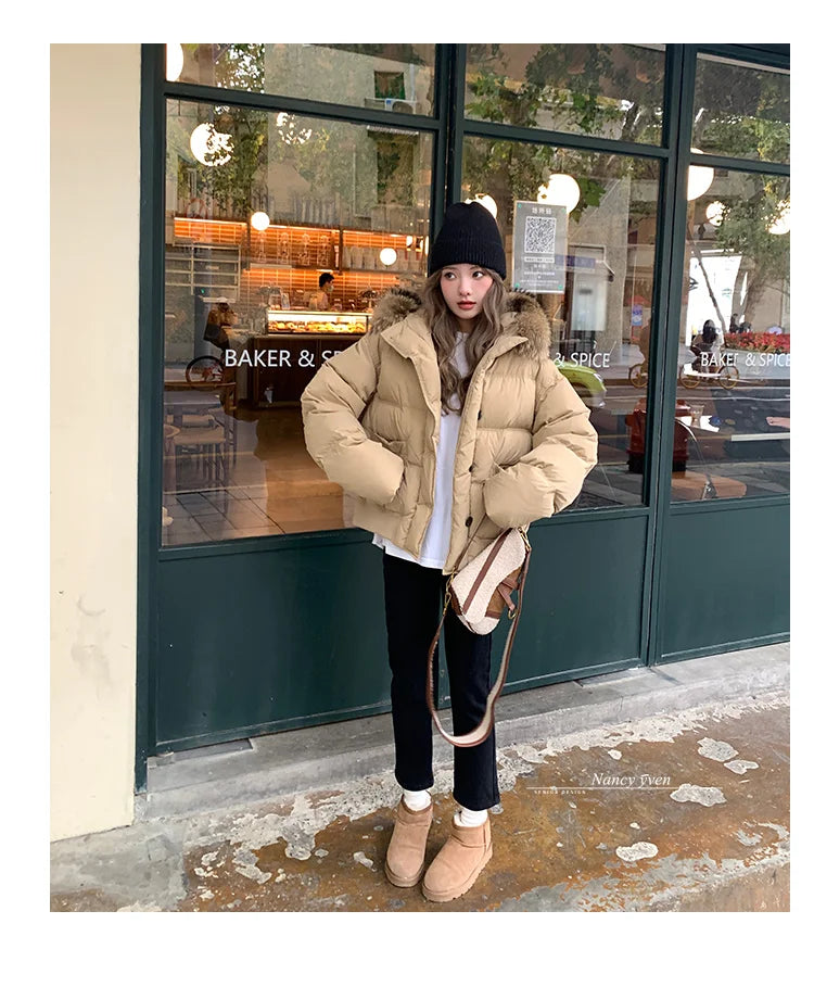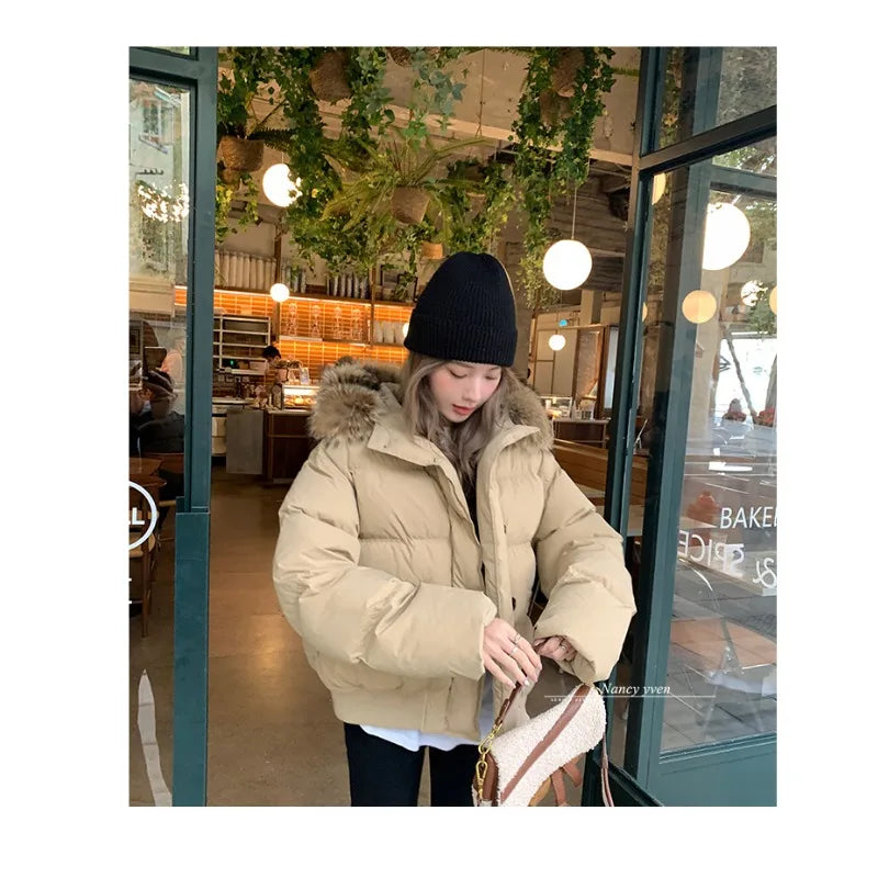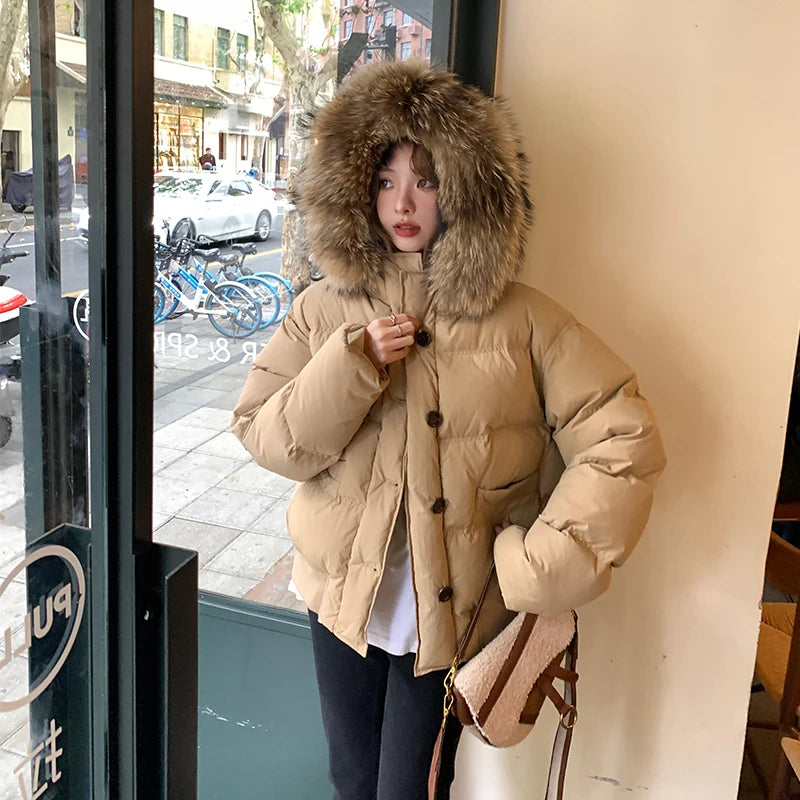2025 NEW Women's Short Thickened down Cotton Jacket Winter New Design Large Fur Collar Coat Warm Stylish Female Outerwear Coat