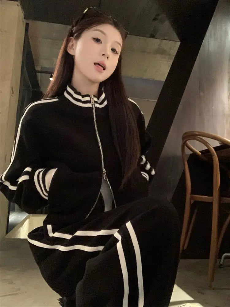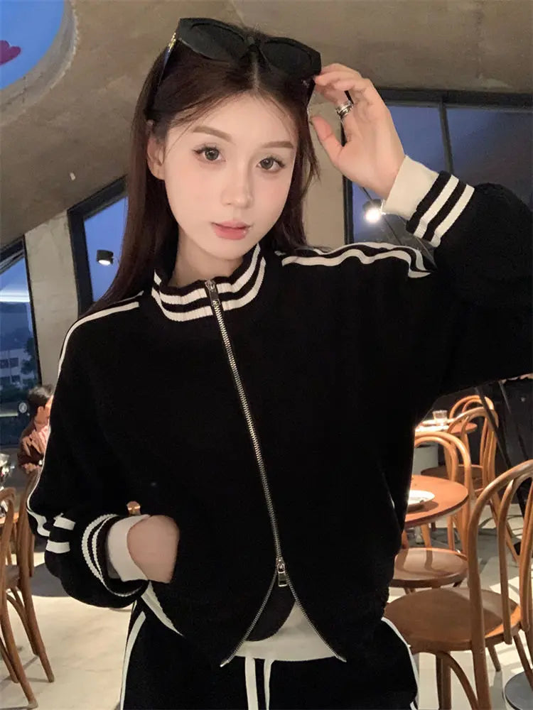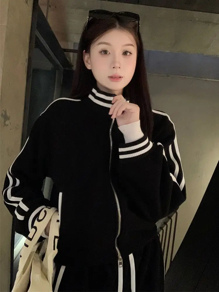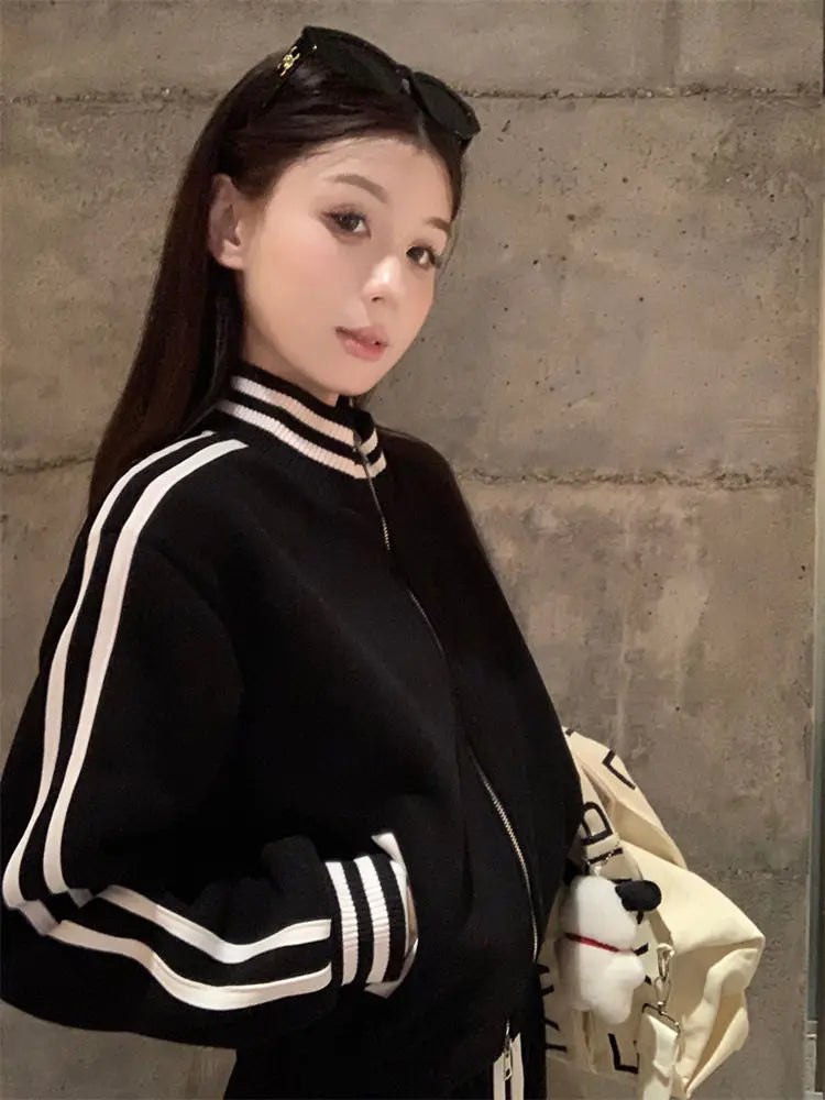 2025 Women Sports Suit Fashion Simple Long Sleeve Stand-Up Collar Outwear Versatile Loose Casual Tempera...