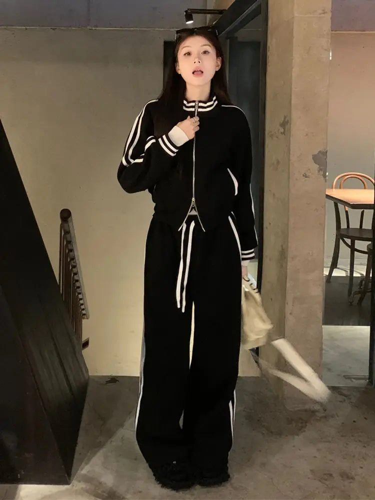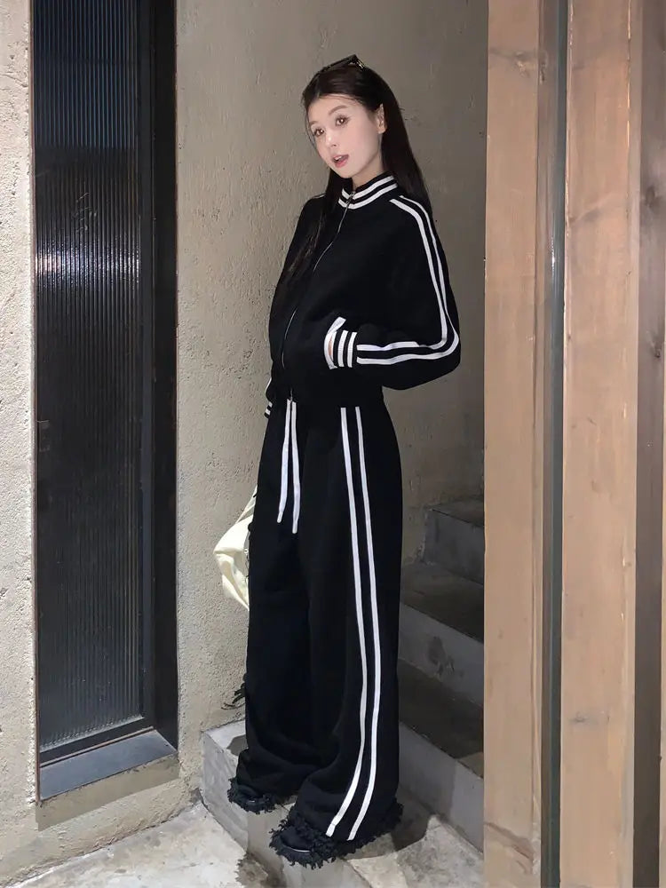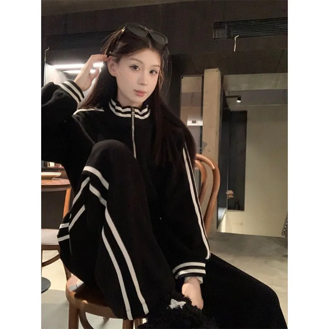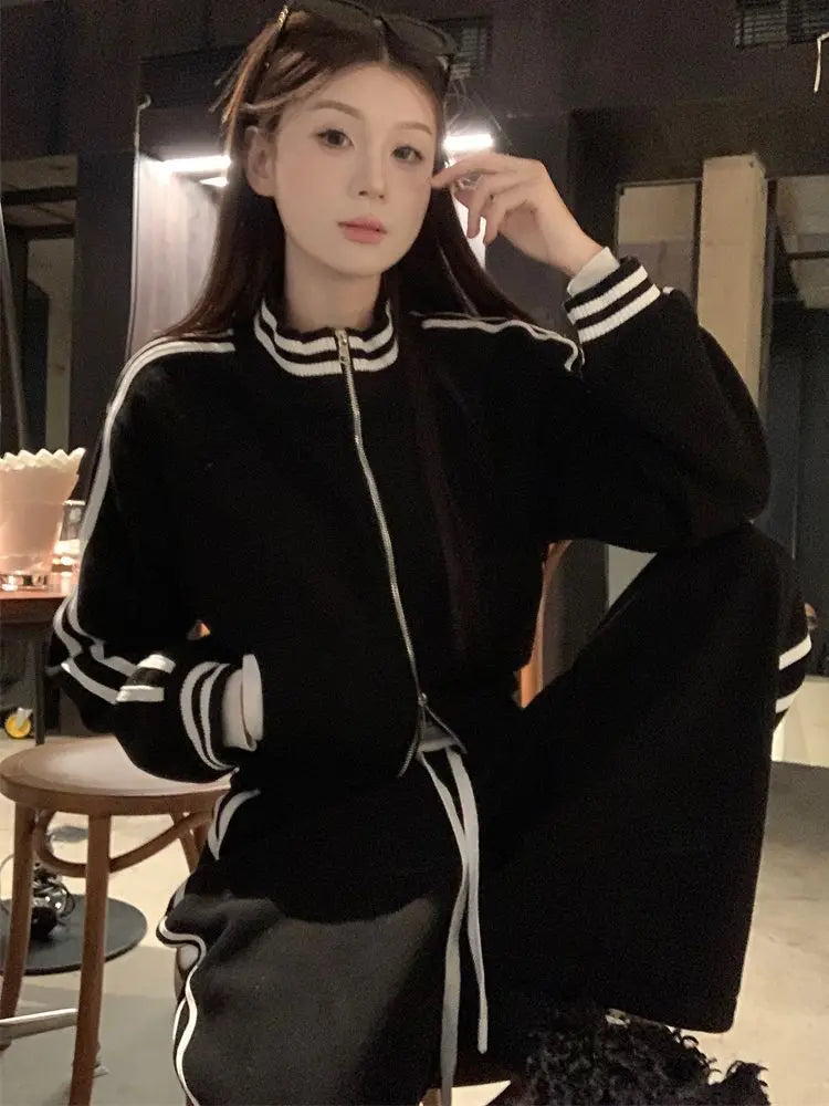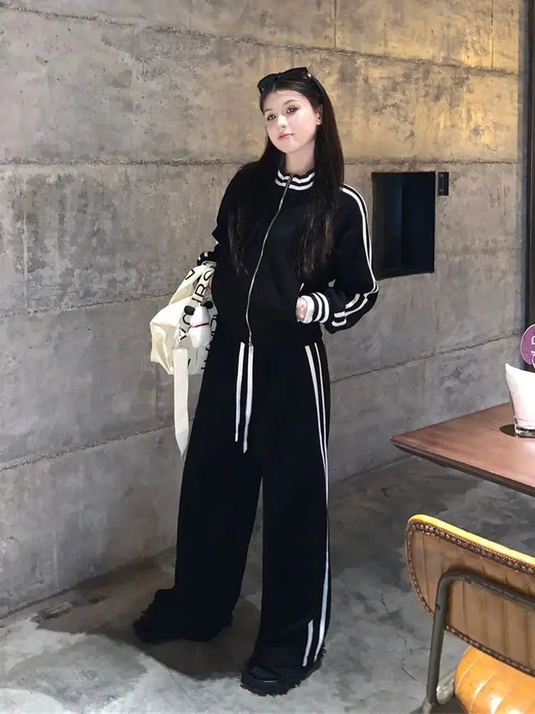 2025 Women Sports Suit Fashion Simple Long Sleeve Stand-Up Collar Outwear Versatile Loose Casual Tempera...
