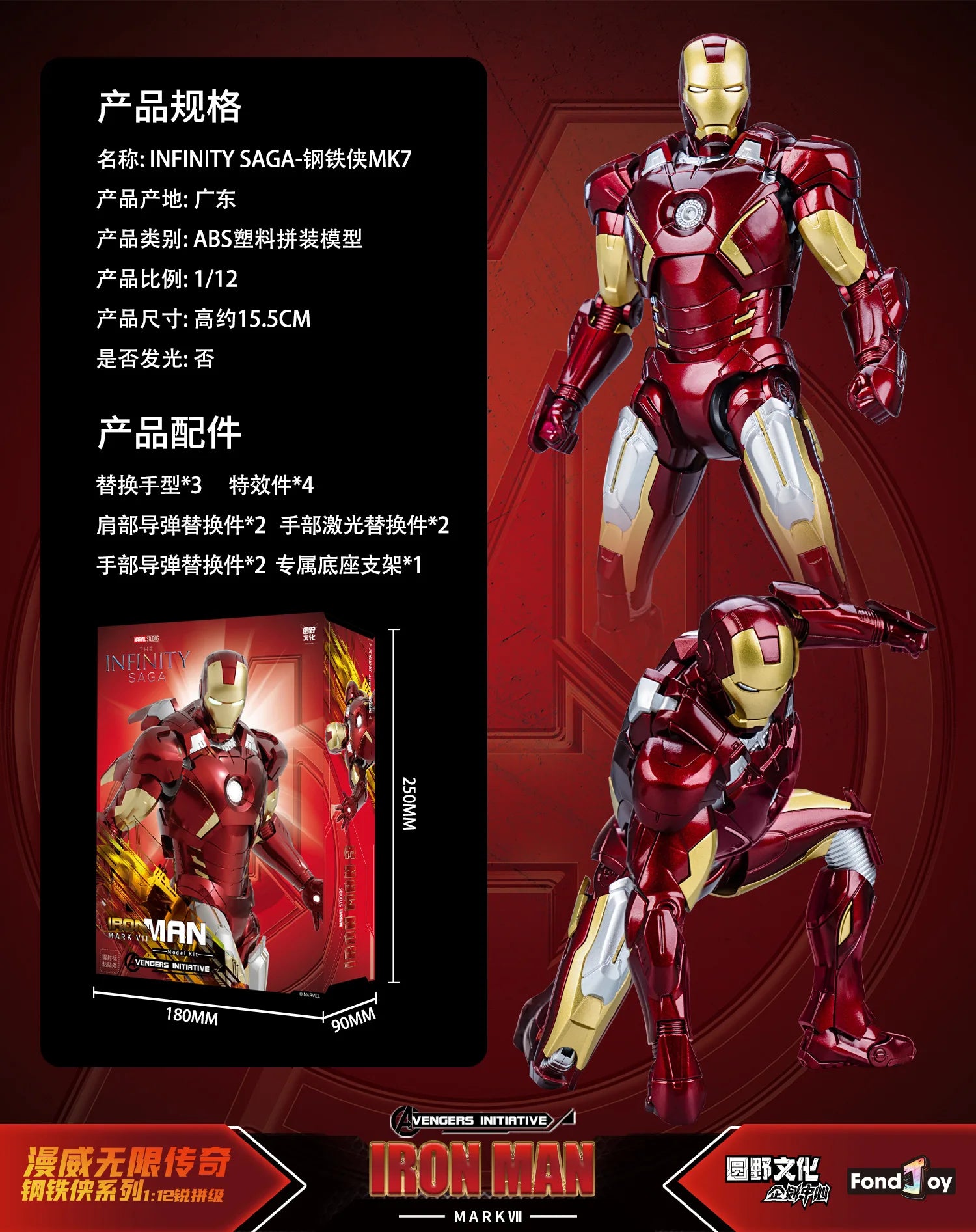 26cm Fondjoy Original Iron Man 1/7 Mk42 Mk43 1/12 Mk1 Mk2 Mk3 Mk4 Mk5 Mk6 Assembled Tony Stark Action Fig...