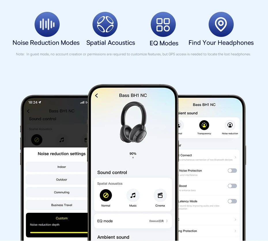 Baseus Eh10 NC ANC Wireless Headphones 45dB Adaptive Hybrid Noise Cancelling ...