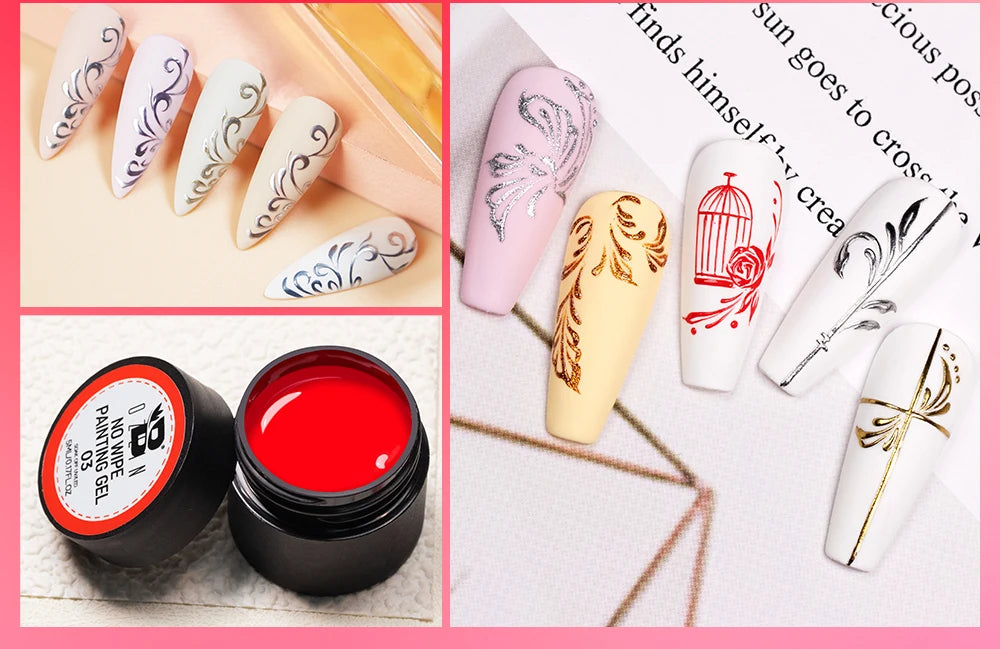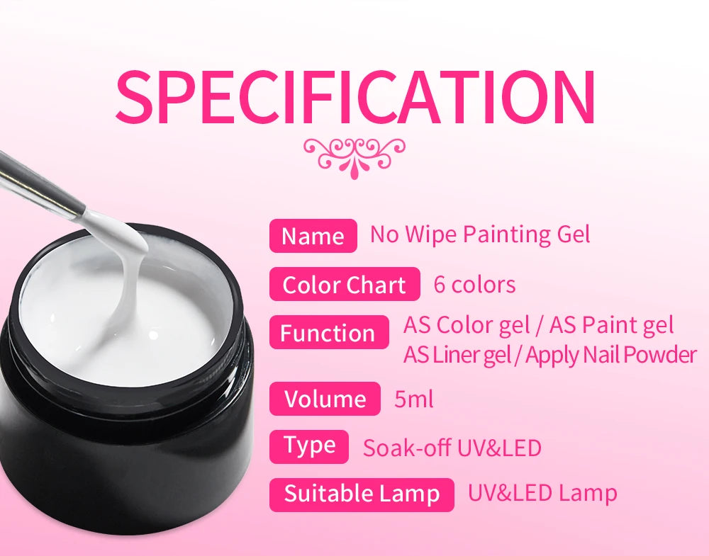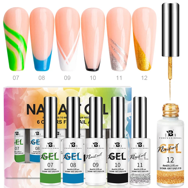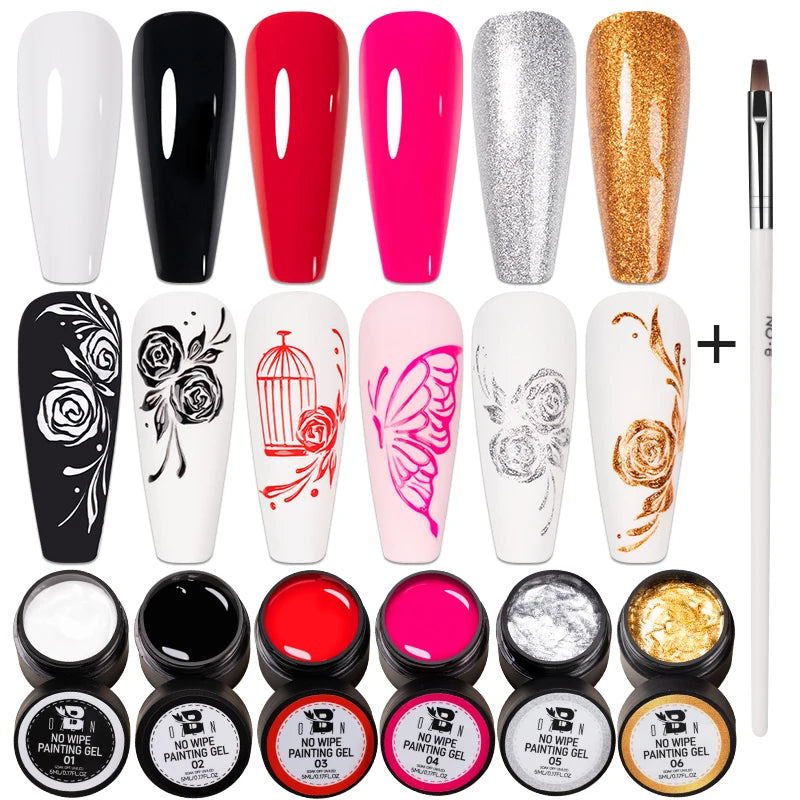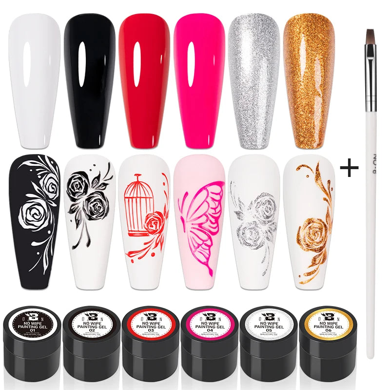 Bozlin 6 Colors 4 In 1 No Wipe Painting Gel Kit For Nail Art Soak Off UV Gel ...