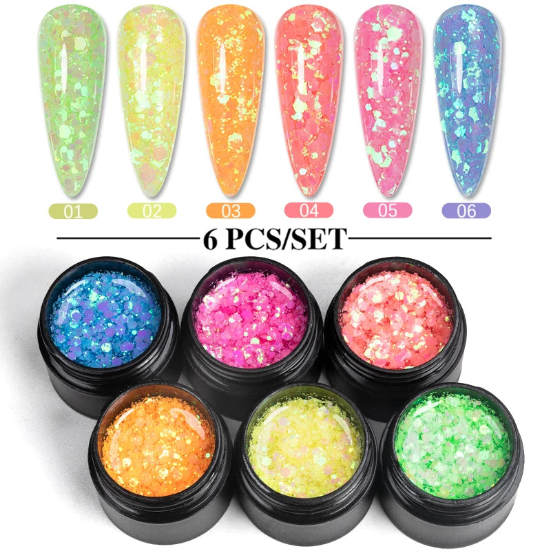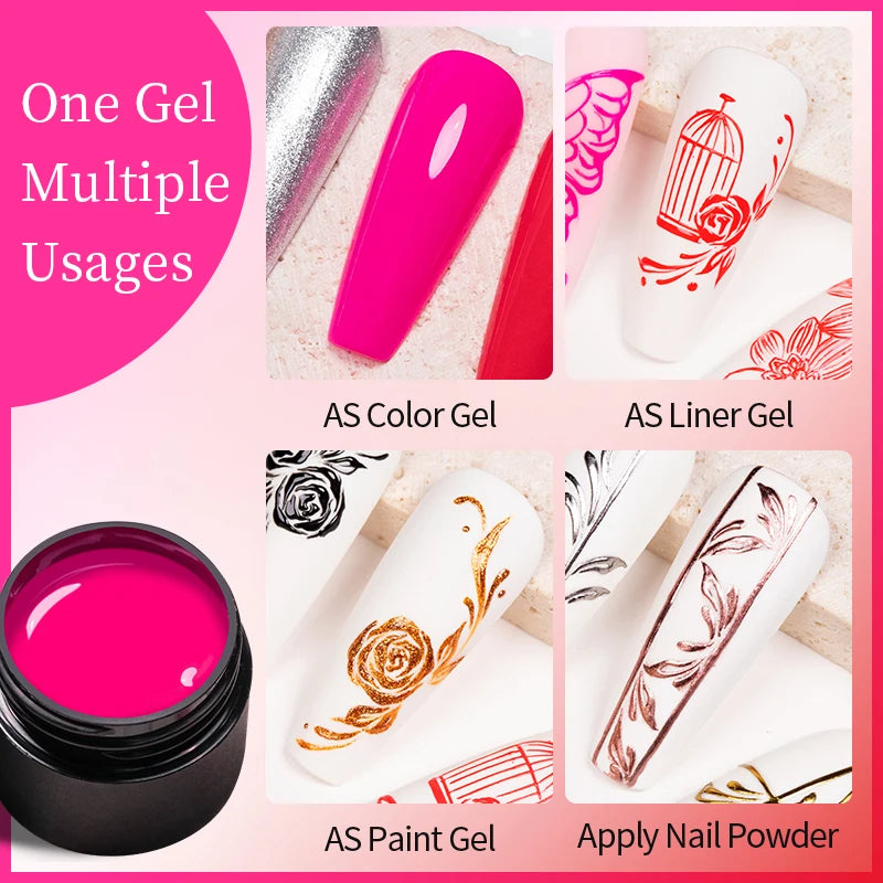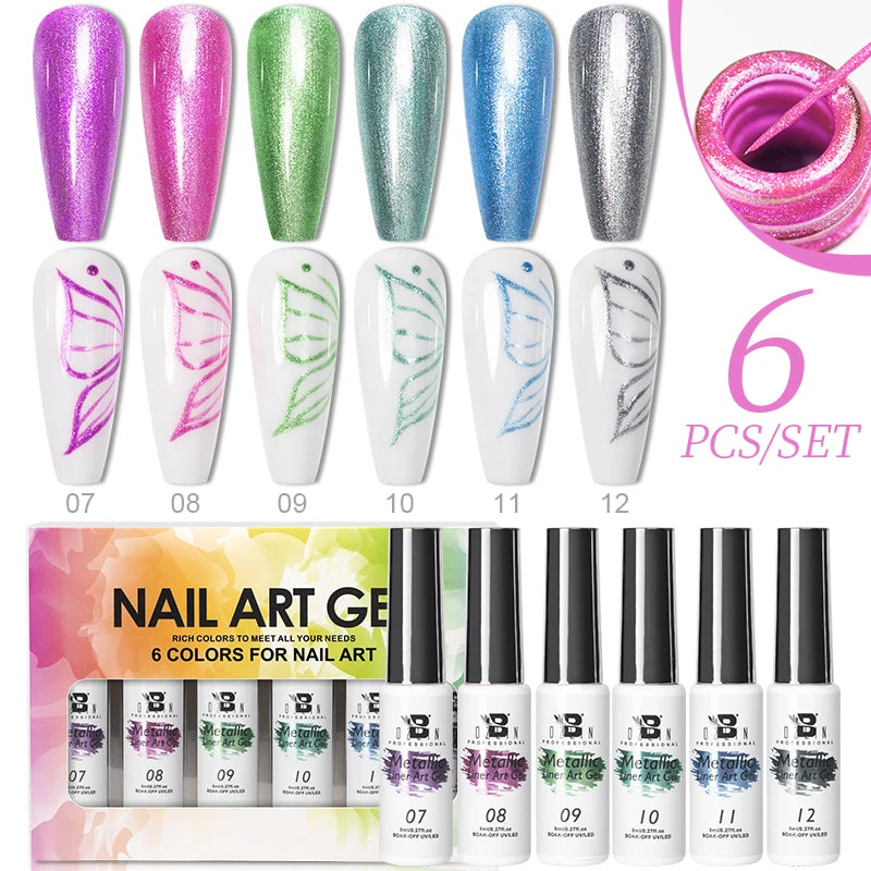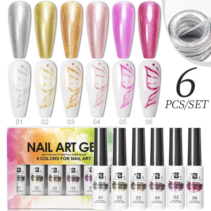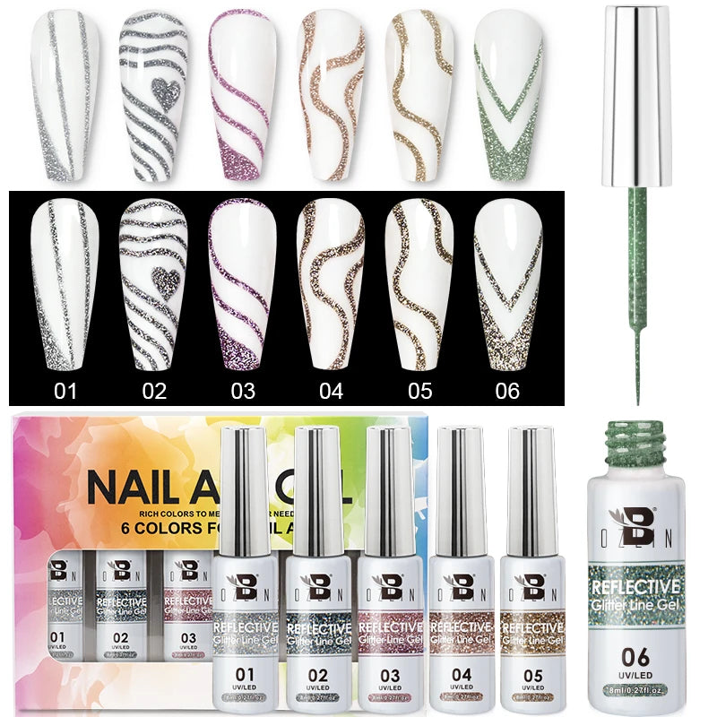 Bozlin 6 Colors 4 In 1 No Wipe Painting Gel Kit For Nail Art Soak Off UV Gel ...