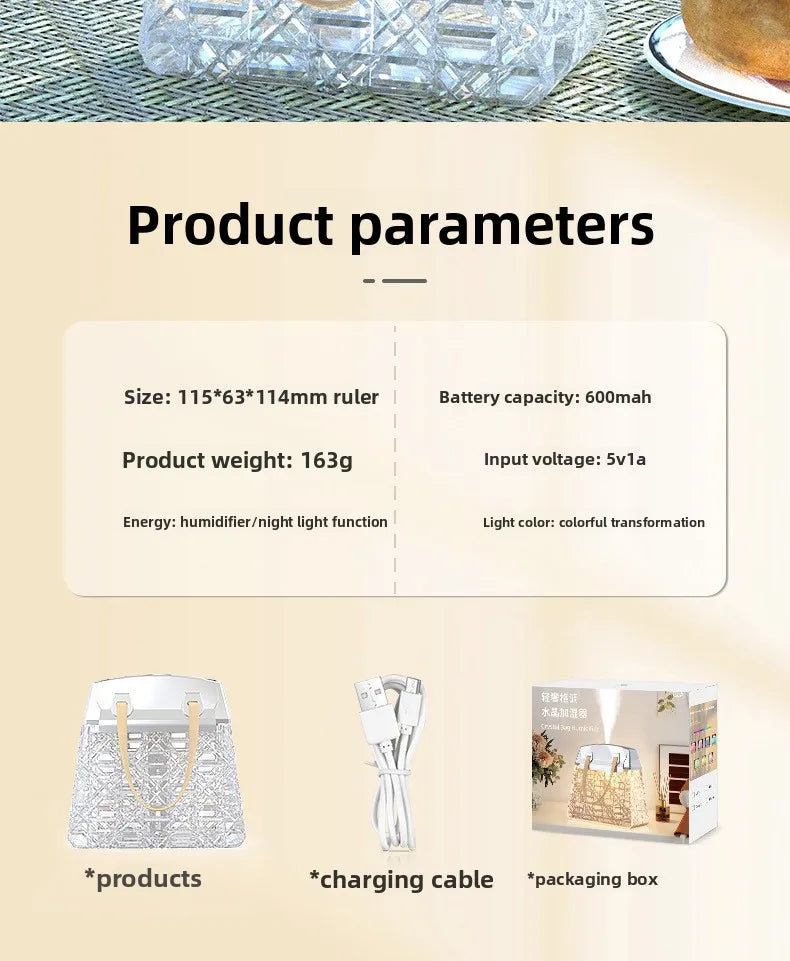 Crystal Bag Air Humidifier 300ml USB Rechargeable Aroma Diffuser Essential Oi...