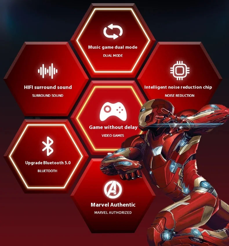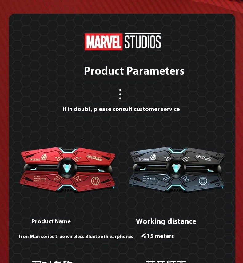 Genuine Marvel Captain America And Black Panther Iron Man Co-Branded True Wireless Bluetooth Headphones D...