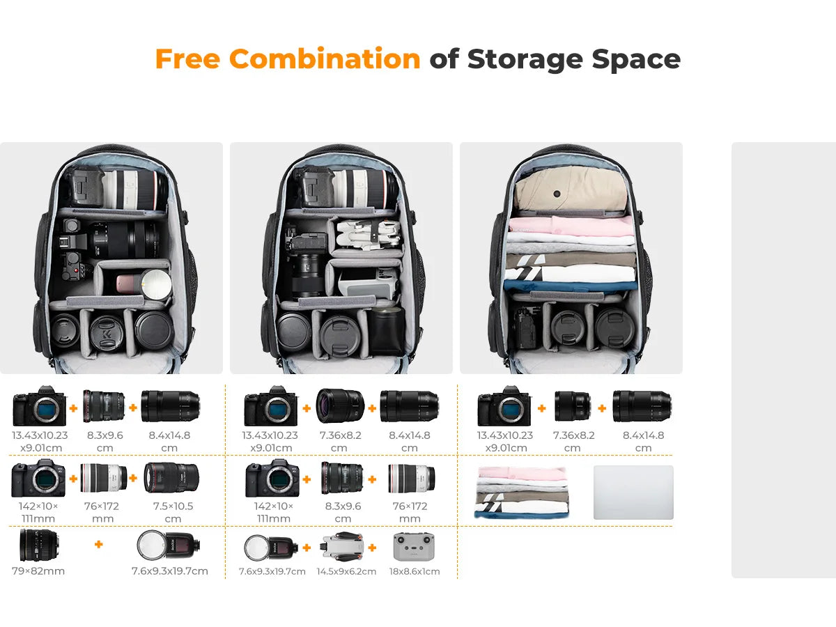 K&F Concept 25L Camera Backpack Shockproof Camera Bag for Dslr SLR Camera Cas...