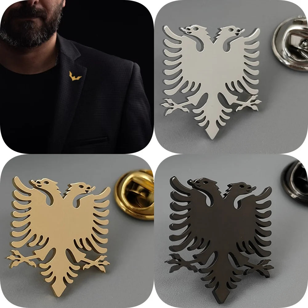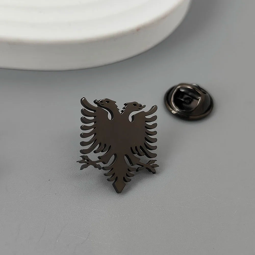 hip hop style Albanian eagle hollow stainless steel gold plated badge, suit l...