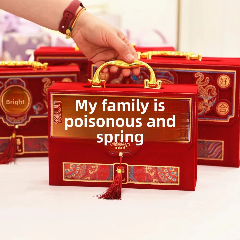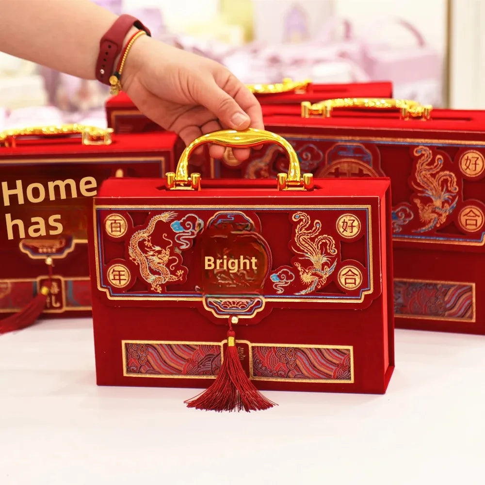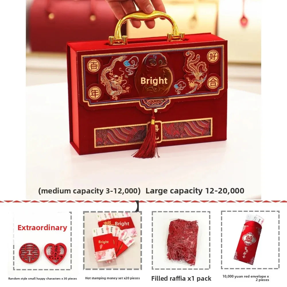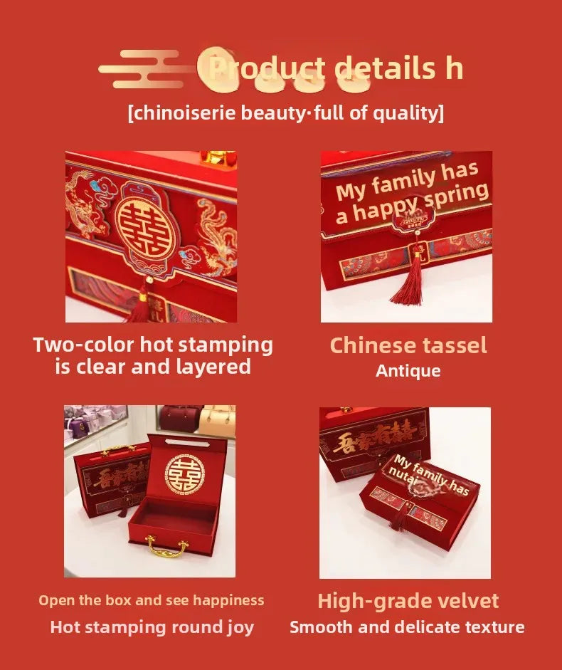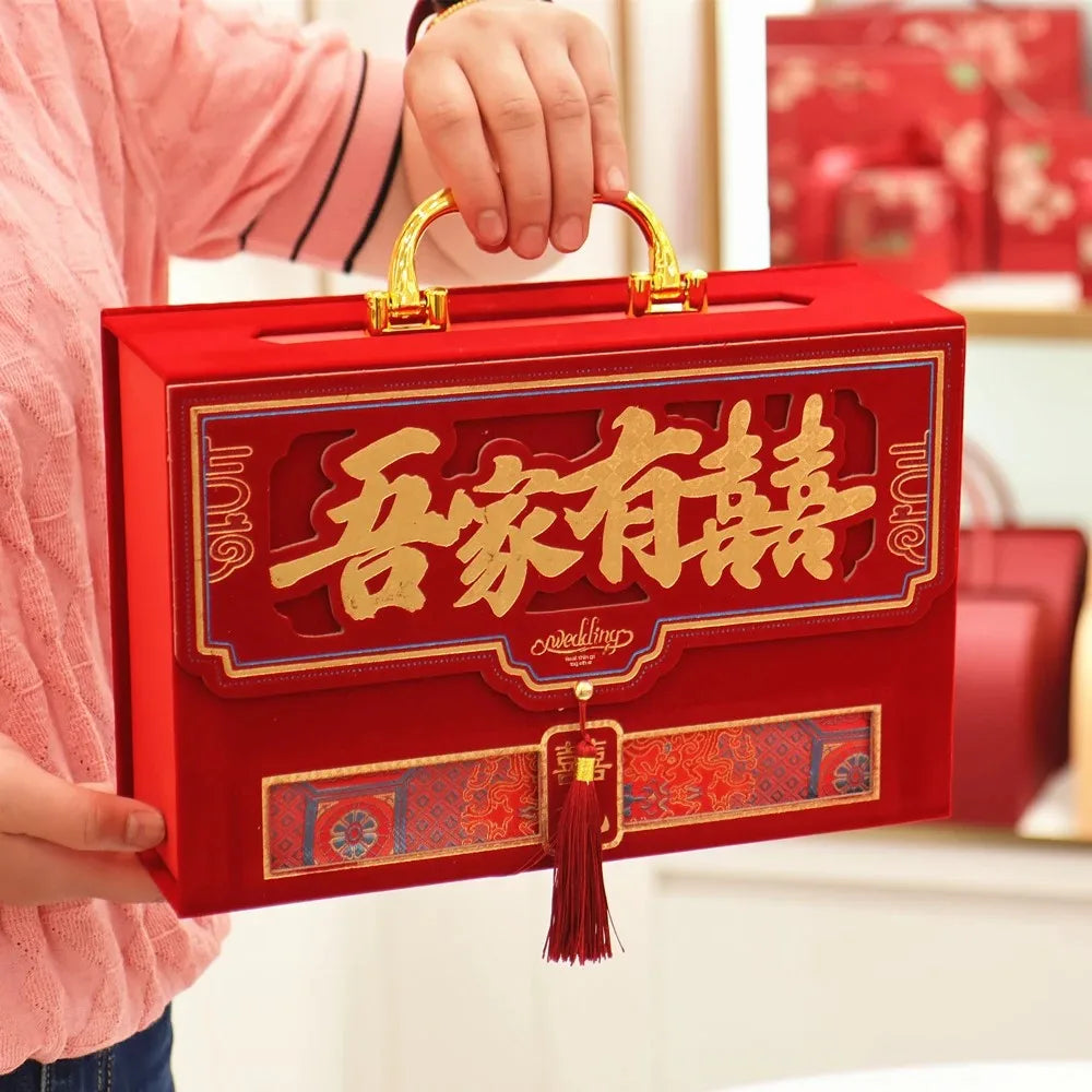 Velvet Wedding Engagement Red Box High End Chinese Style Cash Gift Box Colorf...
