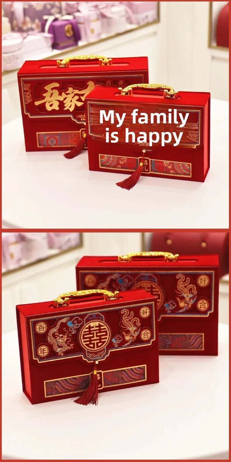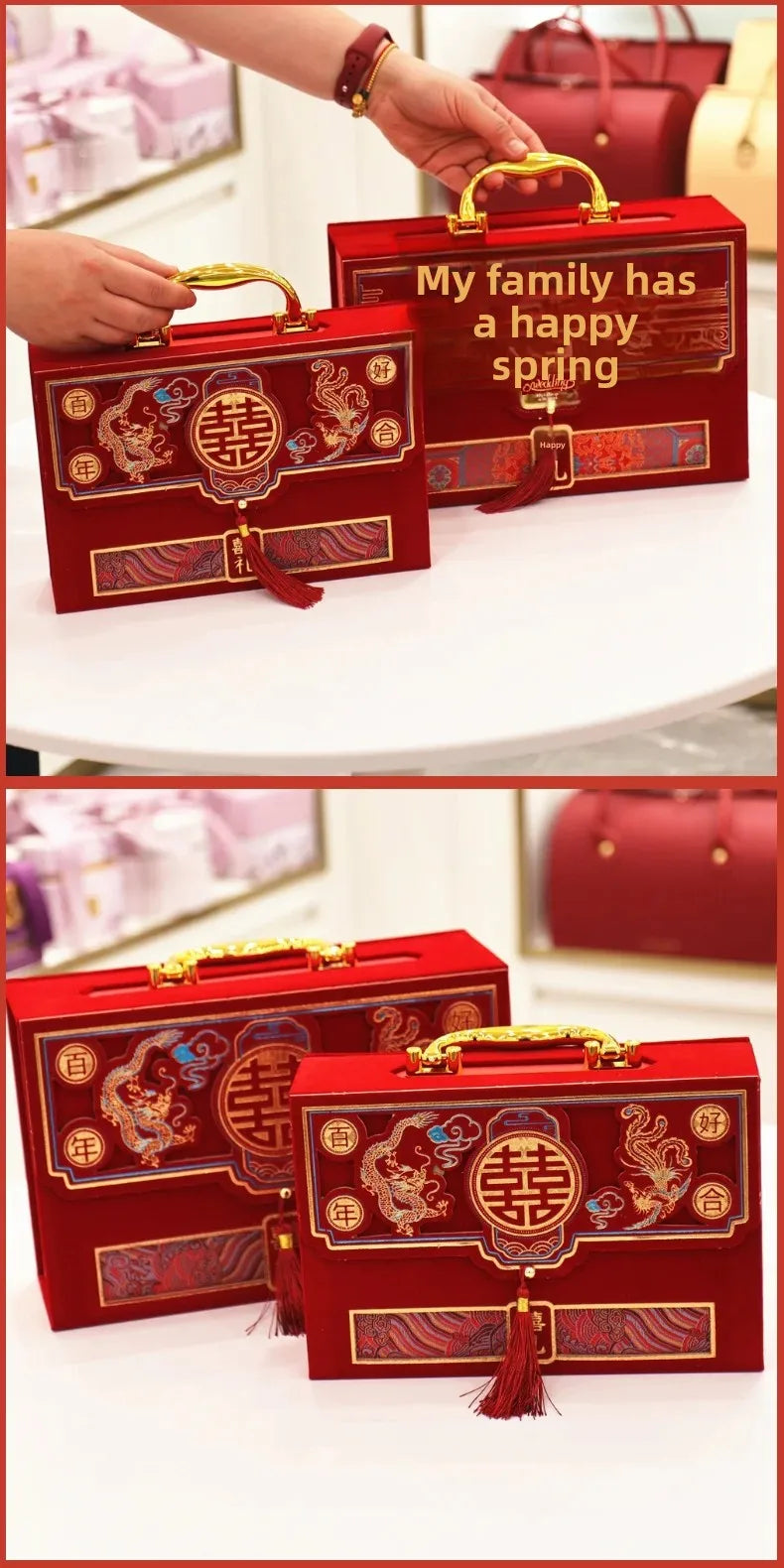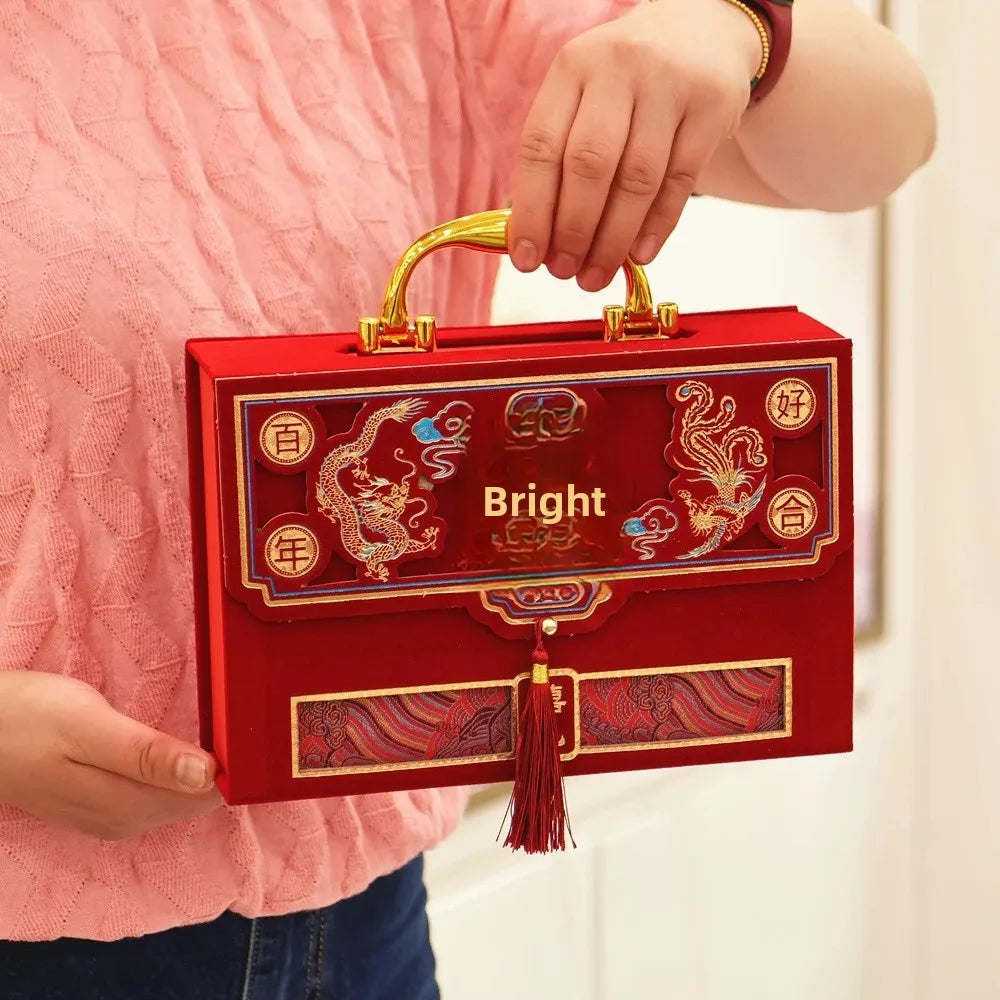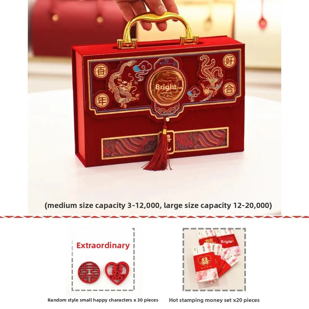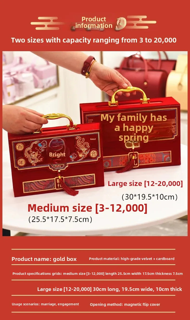Velvet Wedding Engagement Red Box High End Chinese Style Cash Gift Box Colorf...