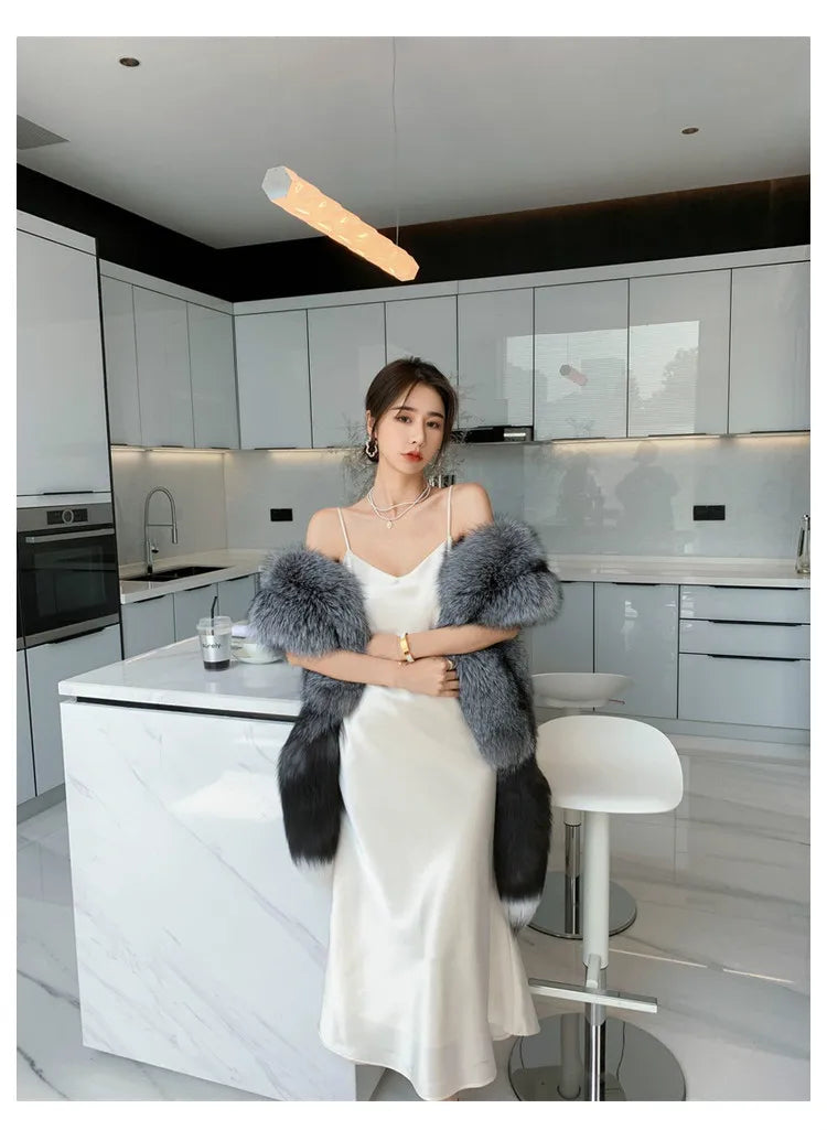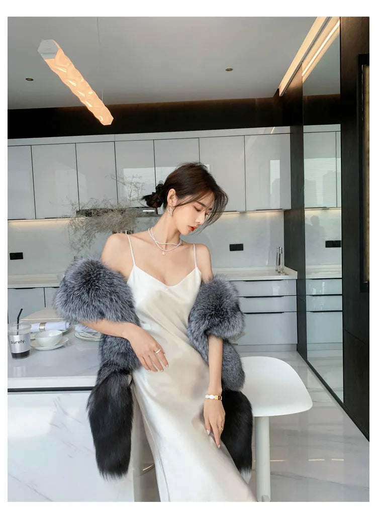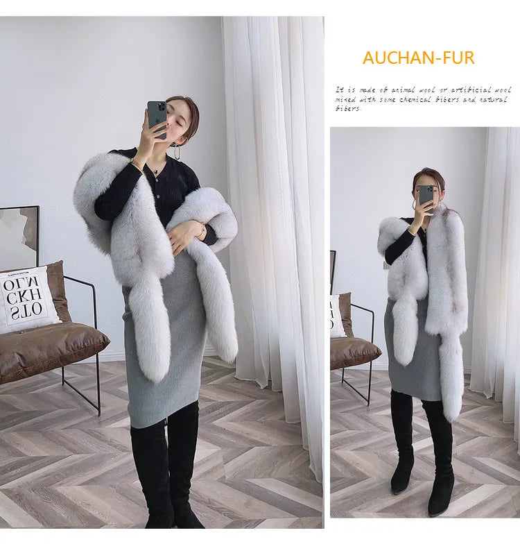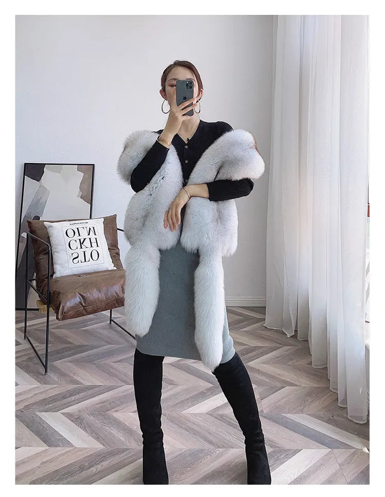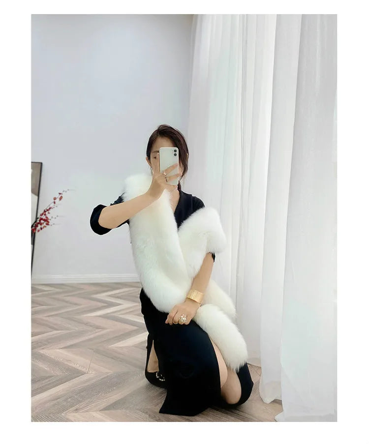 Wgluvf European and American whole fox fur shawl whole fur fur double sided