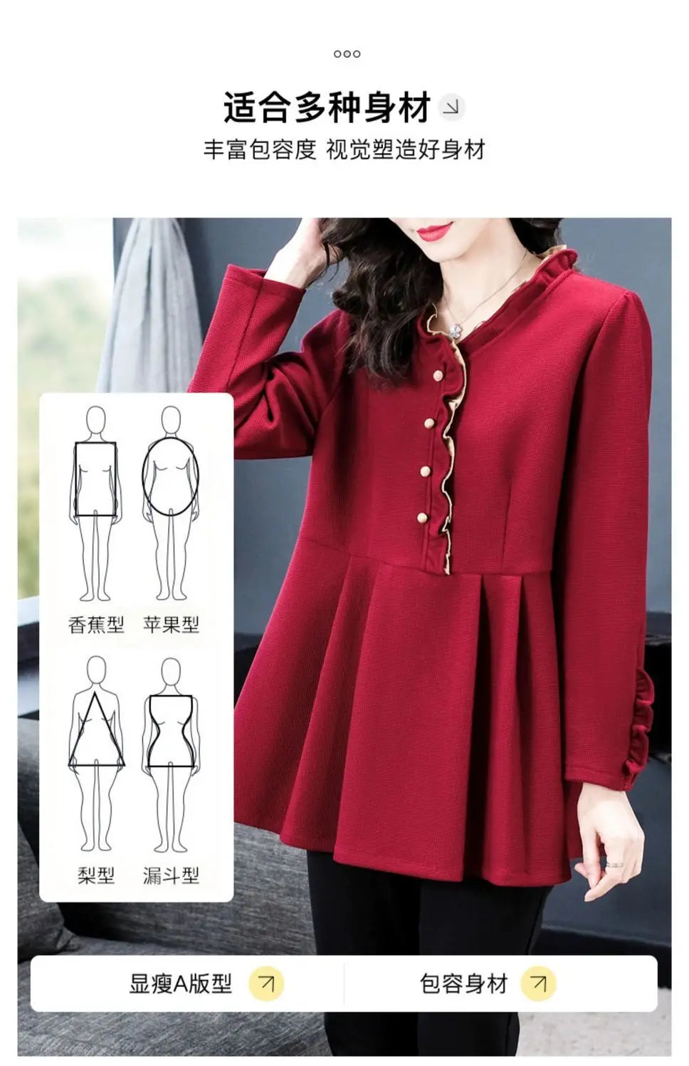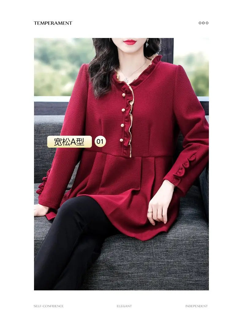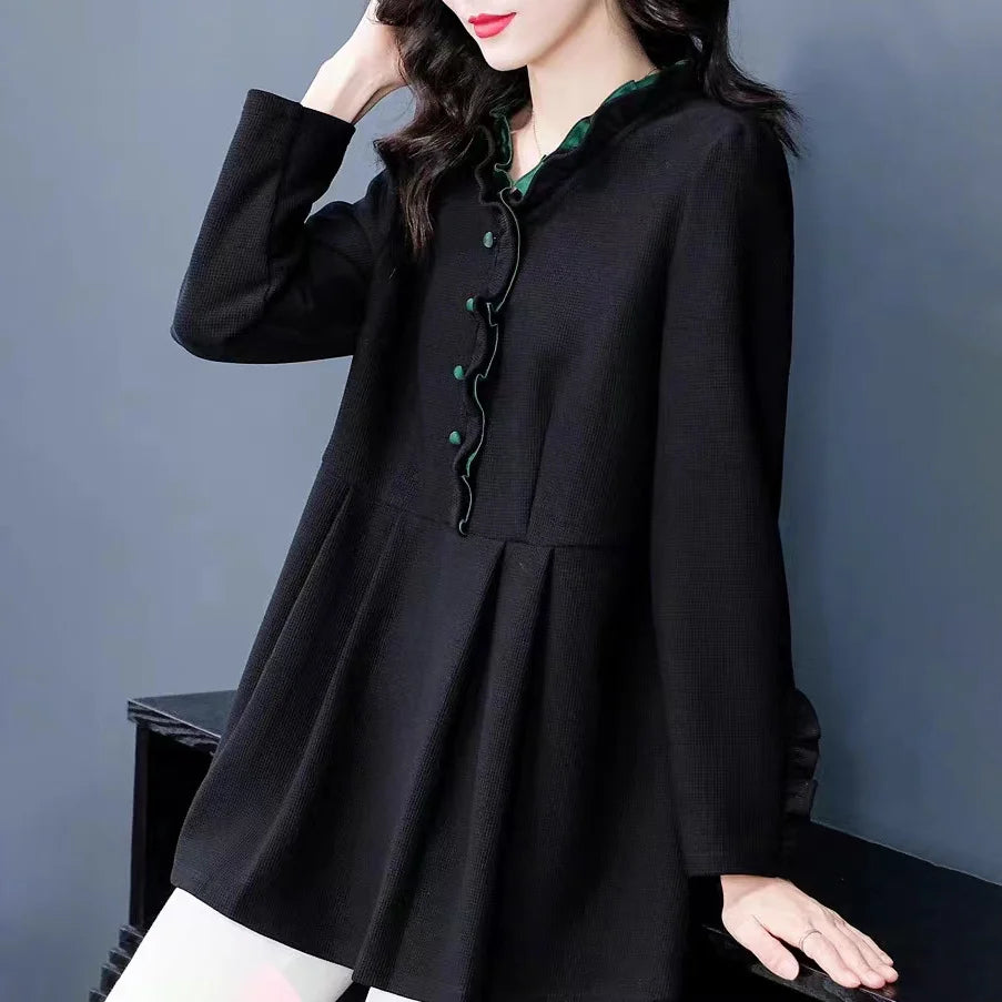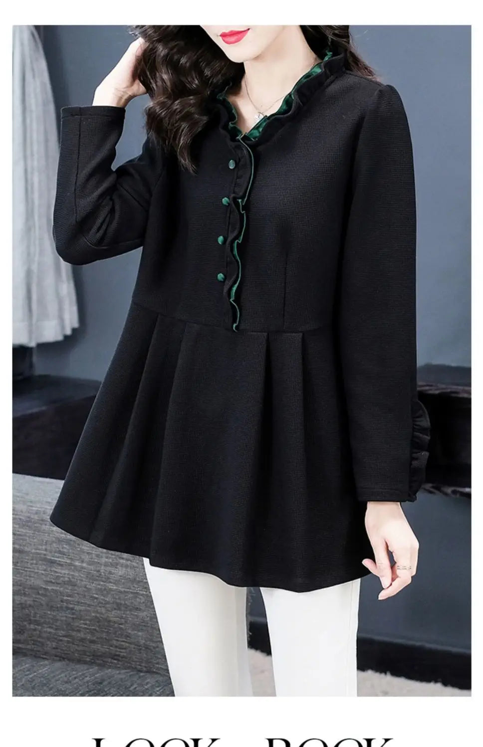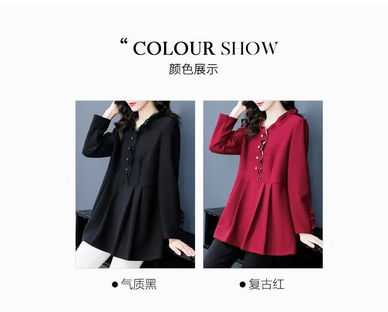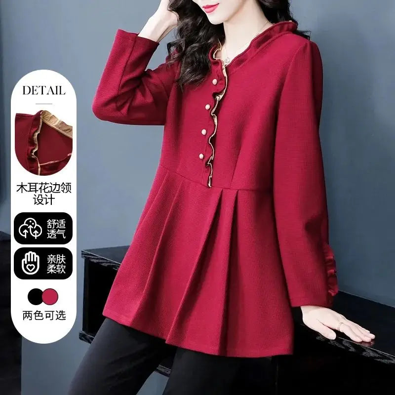 Women's V-Neck Spring New Arrival Shirt with Ruffle and Color-Blocking Slimming