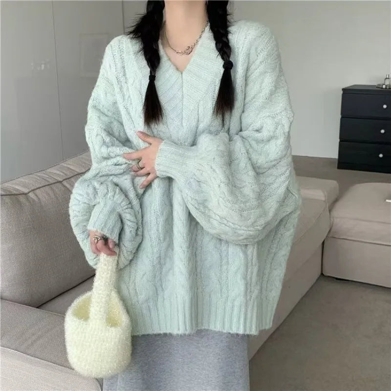 Y2K Harajuku Aesthetic Women Knitted Sweater Korean Loose Fashion Solid Long Sleeve Pullover 2025 New Aut...