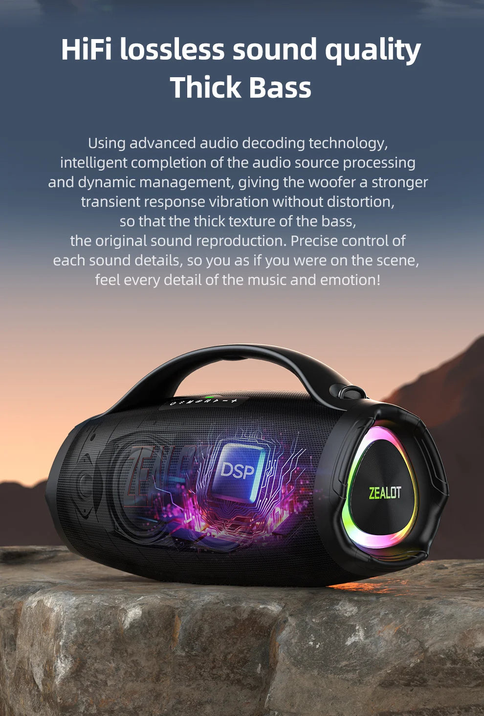 Zealot S98 160w Big Power Portable Bluetooth Speaker Wireless TWS Subwoofer B...