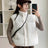 Concise Turn Down Collar Parkas Women Chic Patchwork Slee...
