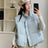 Blue White Plaid Cotton Jackets Women Casual Single Breas...
